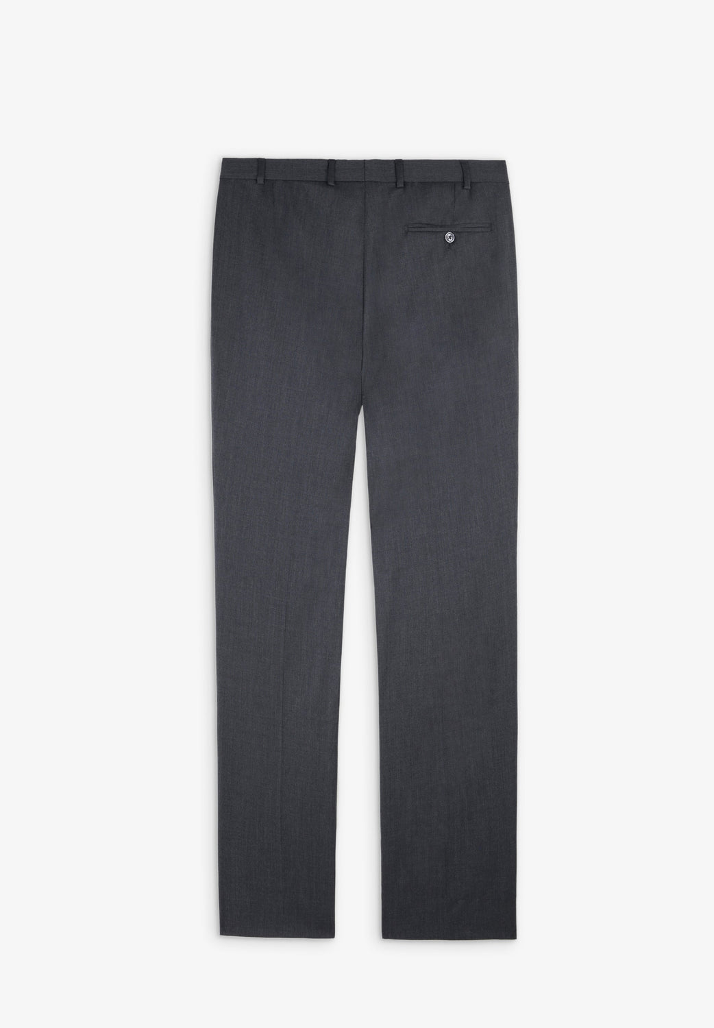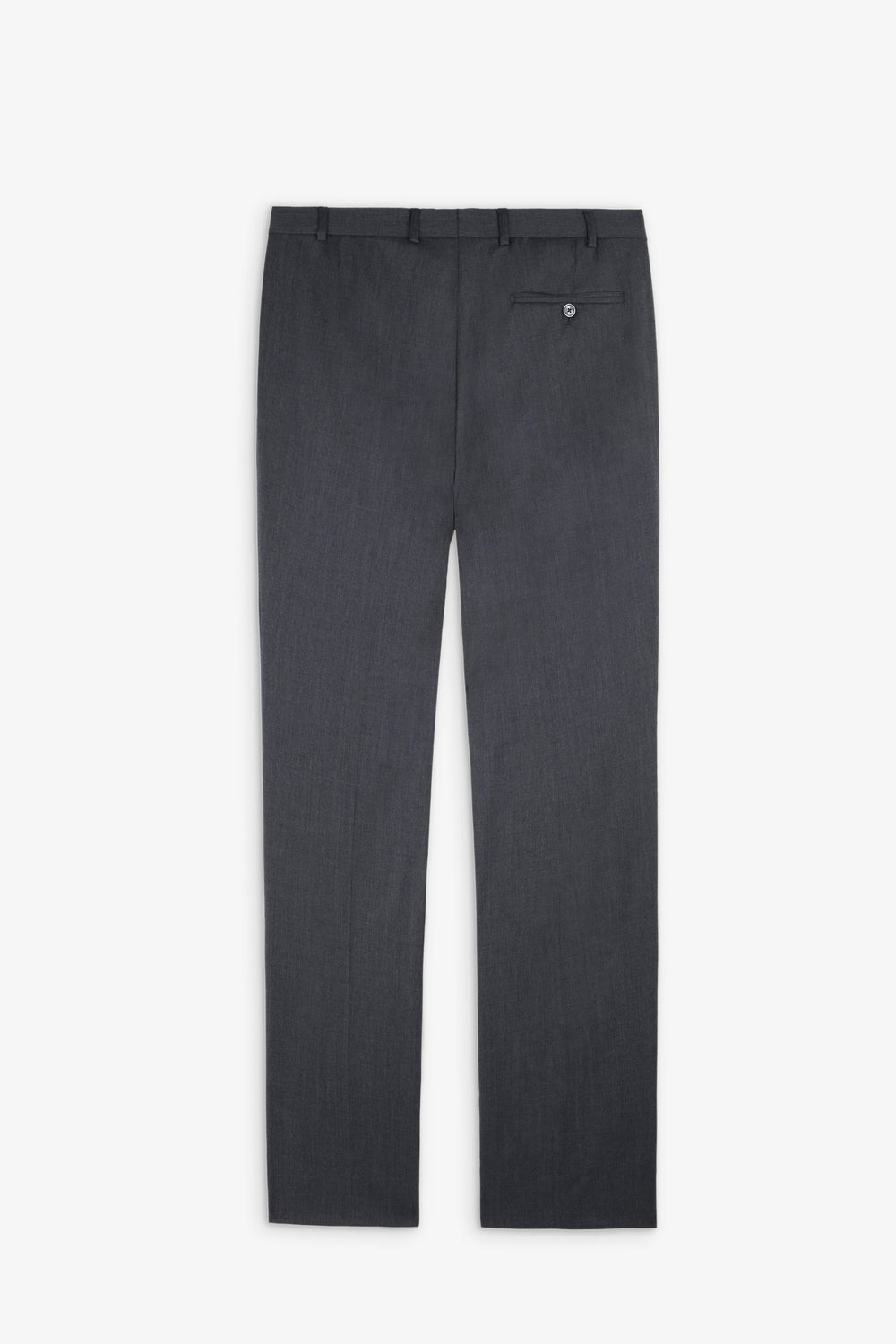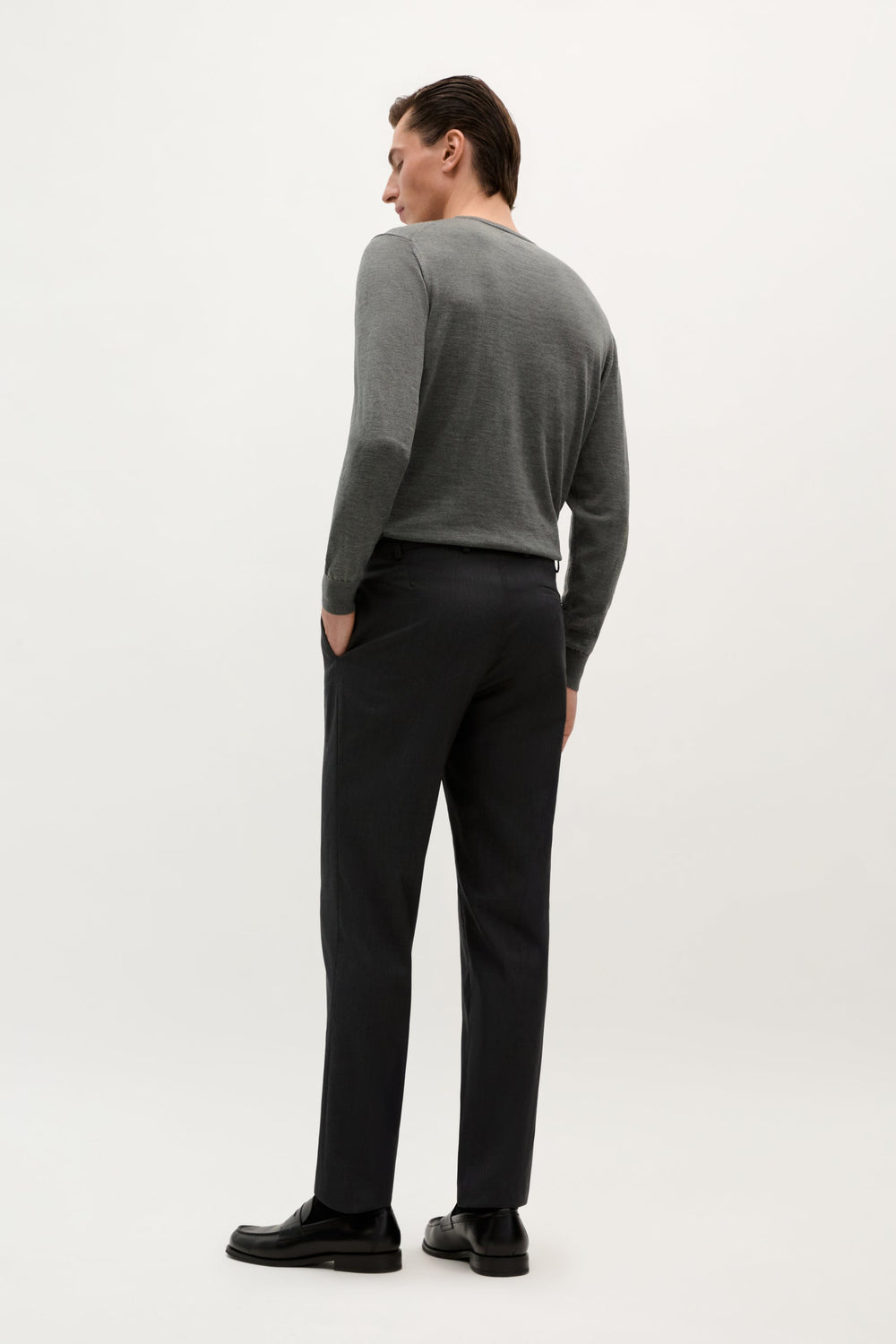 - Pantalón de corte recto, cierre con botón prolongado en cintura y cremallera y bajo sencillo sin vuelta