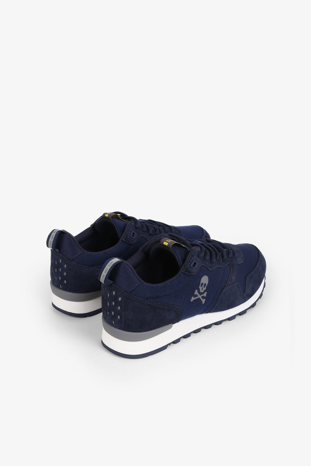 Zapatillas confeccionadas en nylon y serraje a contraste. Cierre con cordones a tono. Suela de goma y eva con estabilizador a contraste. Calavera printeada en goma de alta densidad en el lateral.