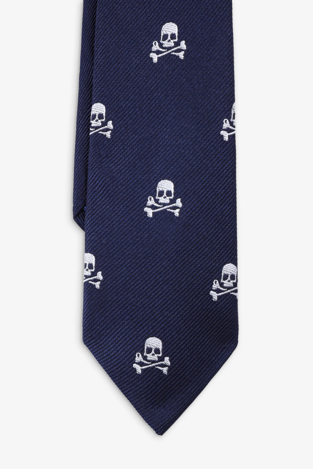 Corbata con calaveras a contraste all over confeccionada en tejido 100% seda.