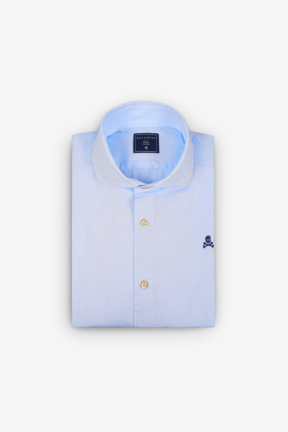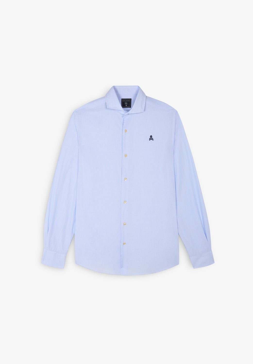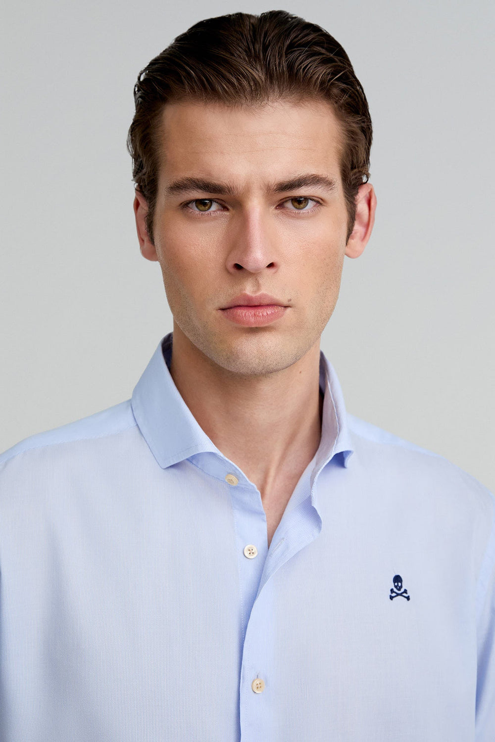 Plain formal shirt. Made of 100% cotton. Regular fit. Cutaway collar. Button fastening. Long sleeves with barrel cuffs. Embroidered skull detail on the chest.