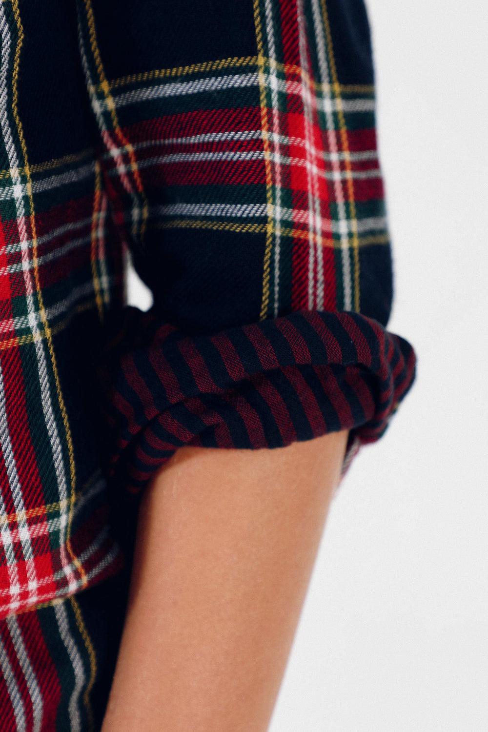 Camisa con estampado tartán confeccionada en tejido 100% algodón. Corte Regular Fit, cuello con botones y cierre con botones. Manga larga terminada en puño y detalle de tejido interior diferente.