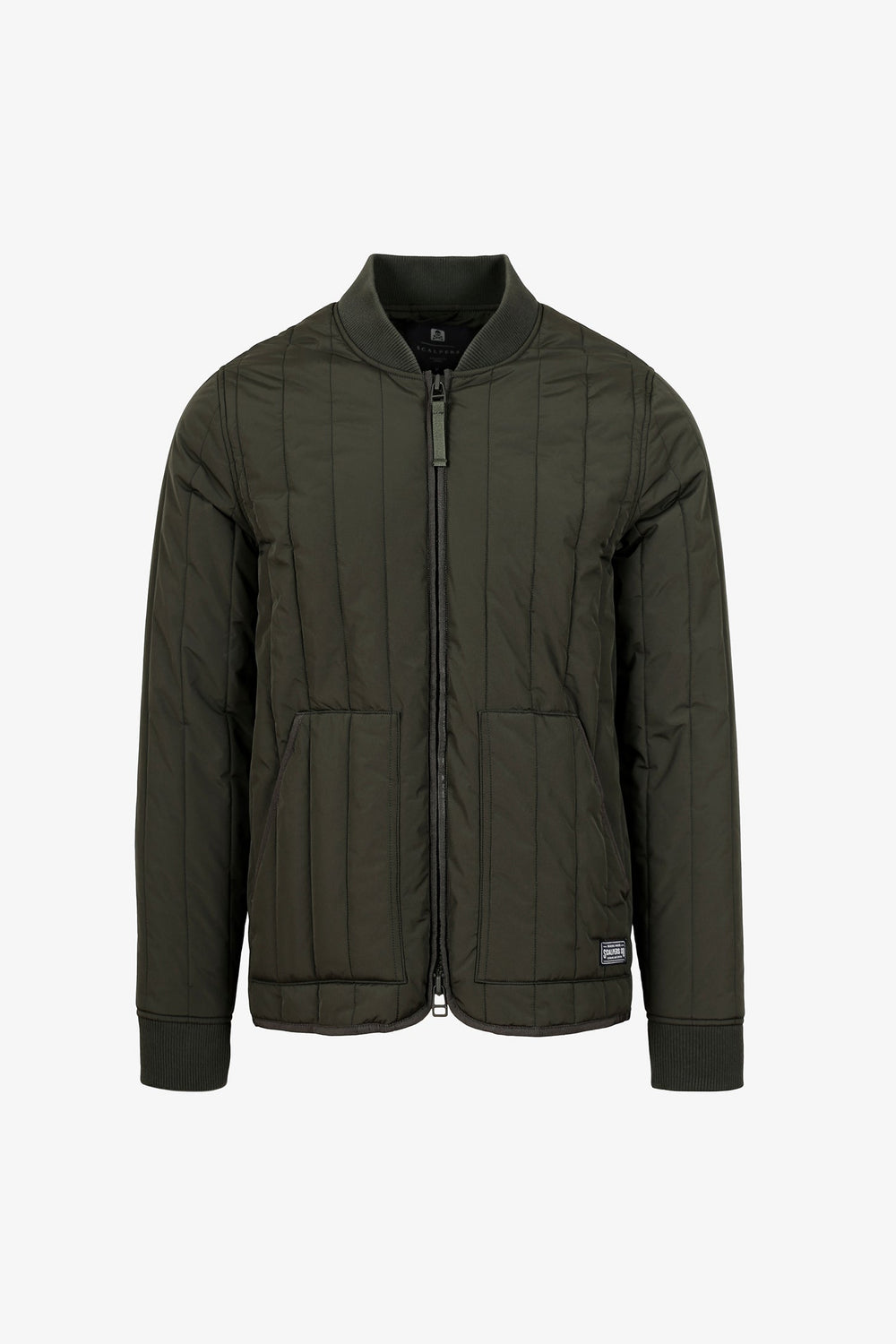Chaqueta acolchada confeccionado en tejido de nailon y poliéster reciclado. Corte Regular Fit, cuello en rib y cierre con cremallera de doble carro. Manga larga y bolsillos laterales.