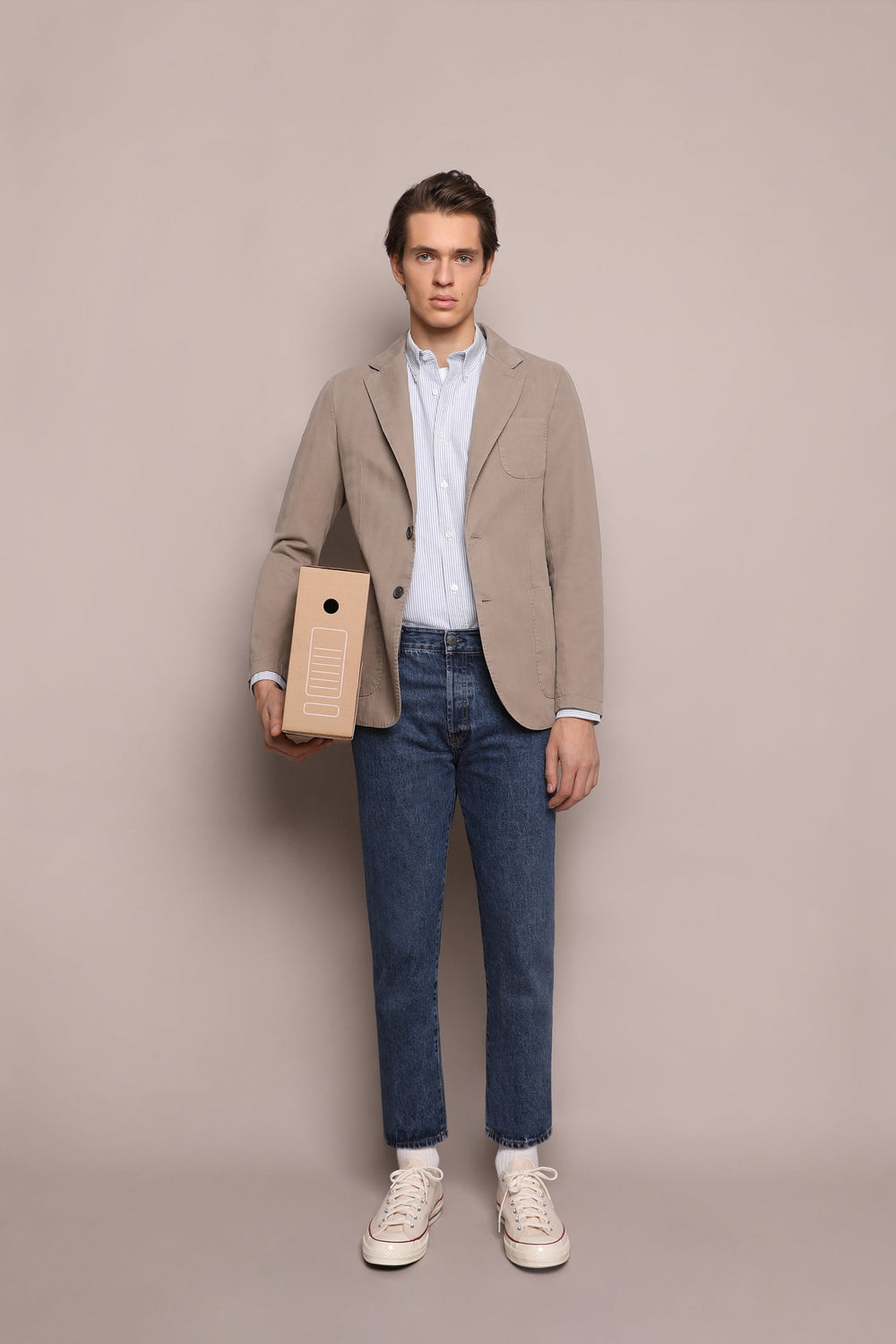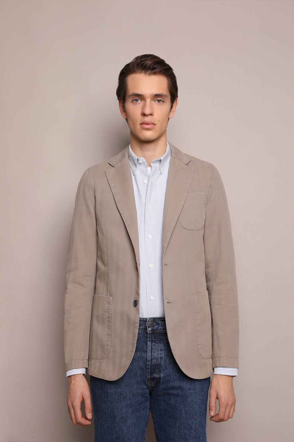 Blazer with herringbone details made of 100% cotton. Regular fit, lapel collar and two-button fastening. Long sleeves with buttoned cuffs and pockets.