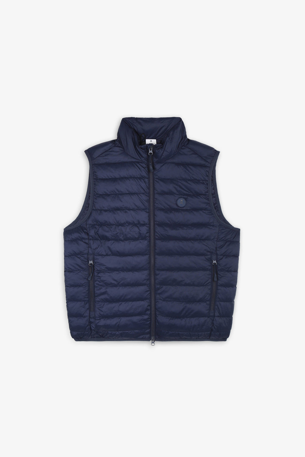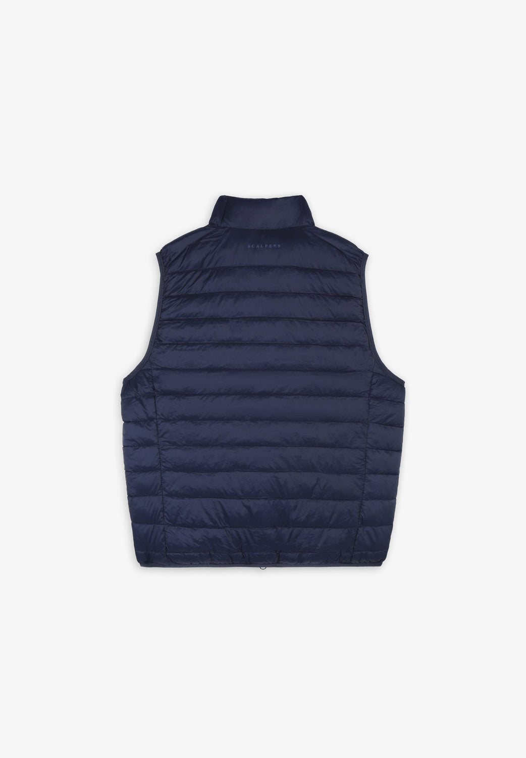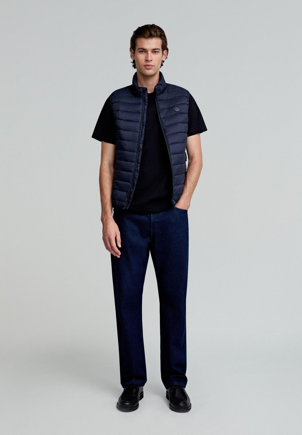 - Chaleco acolchado confeccionado en tejido de nailon y poliéster reciclado water repellent. Corte Slim Fit, cuello subido y cierre con cremallera de doble carro.