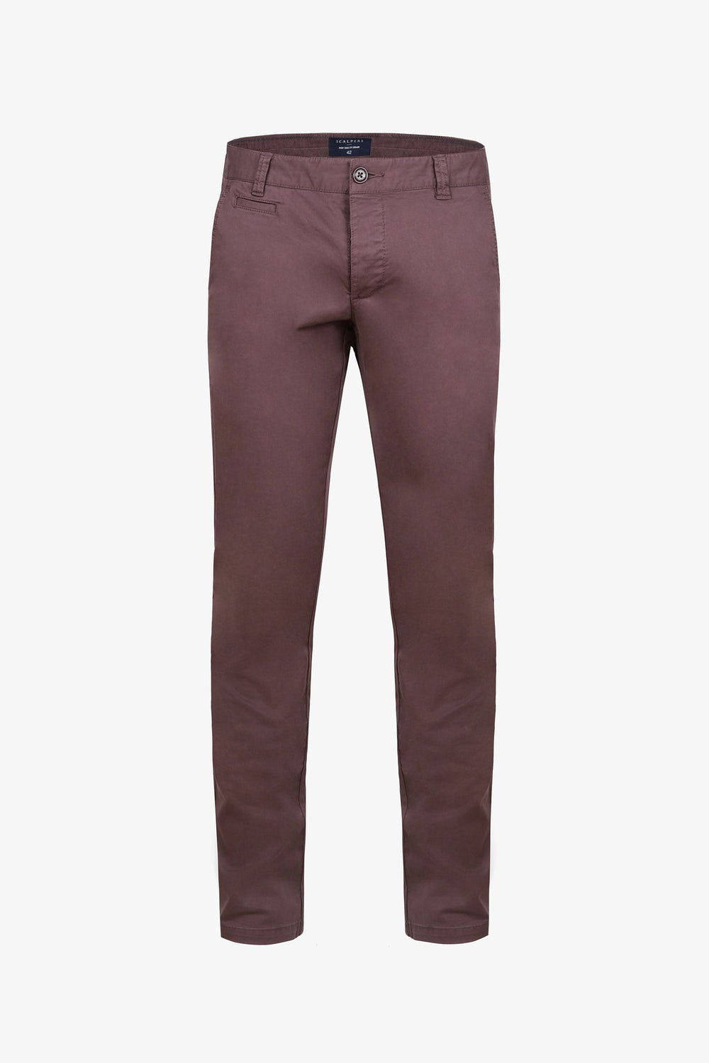 Chino trousers made of garment dyed cotton. Regular fit and concealed zip with snap-button placket. Front and back pockets with button and belt loops.