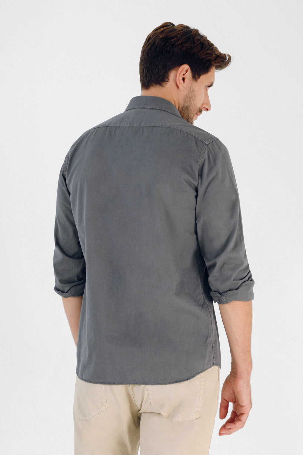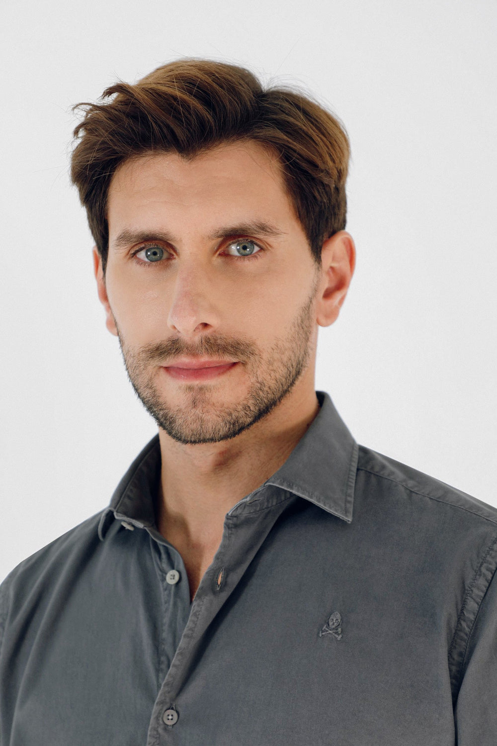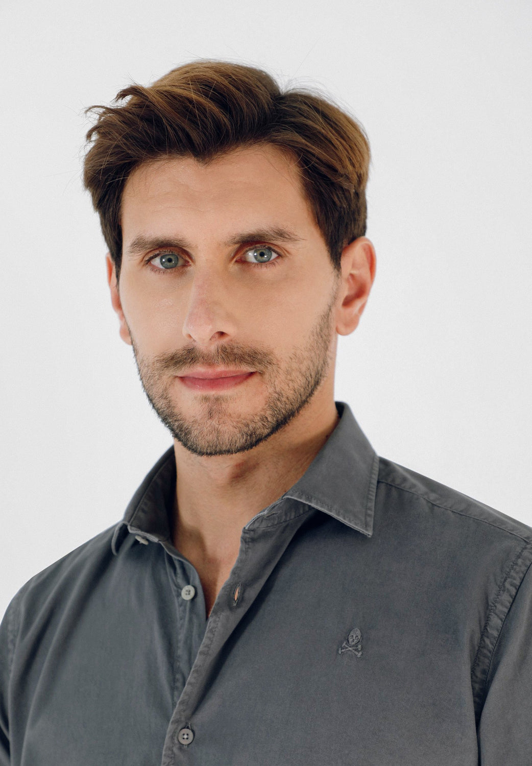 Shirt made of 100% cotton. Regular fit, Italian collar and button fastening without placket. Long sleeves with barrel cuffs. Embroidered skull detail on the chest.