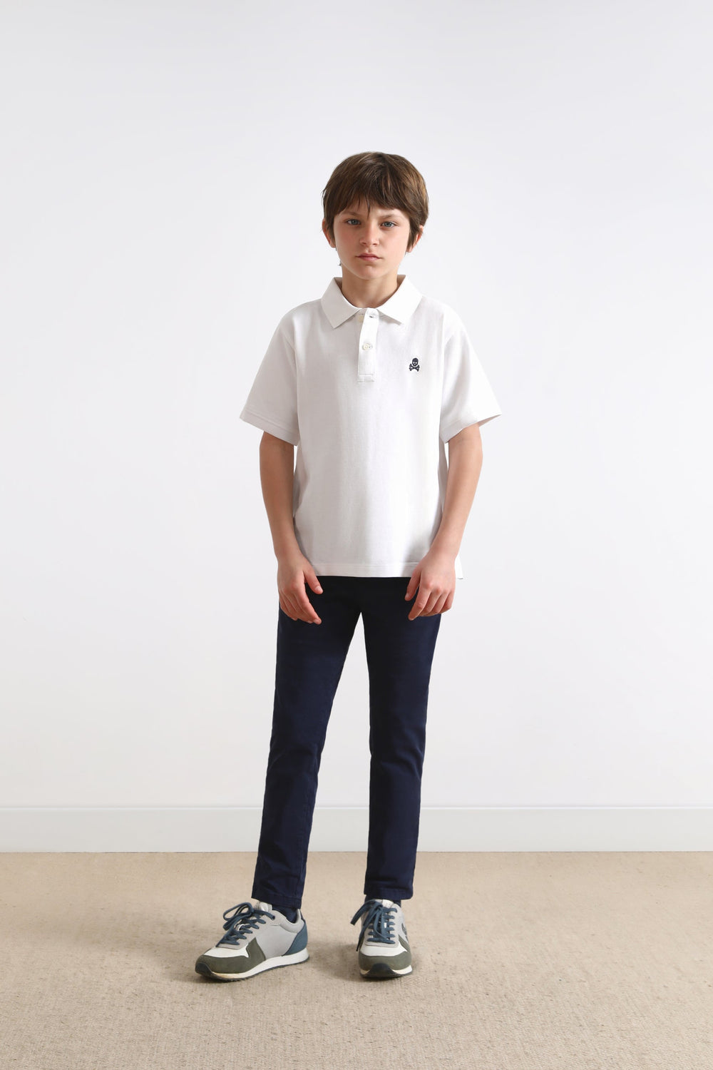 Polo confeccionado en tejido 100% algodón. Corte Regular Fit, cuello clásico y cierre con botones. Detalle de bordado de calavera en el pecho.