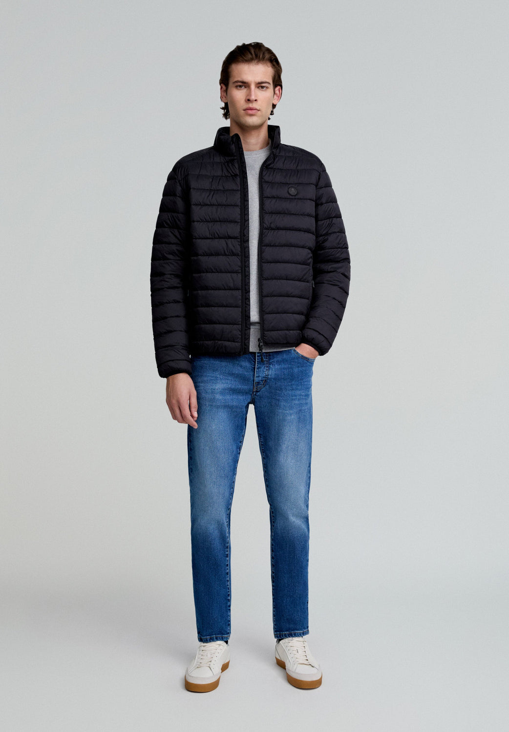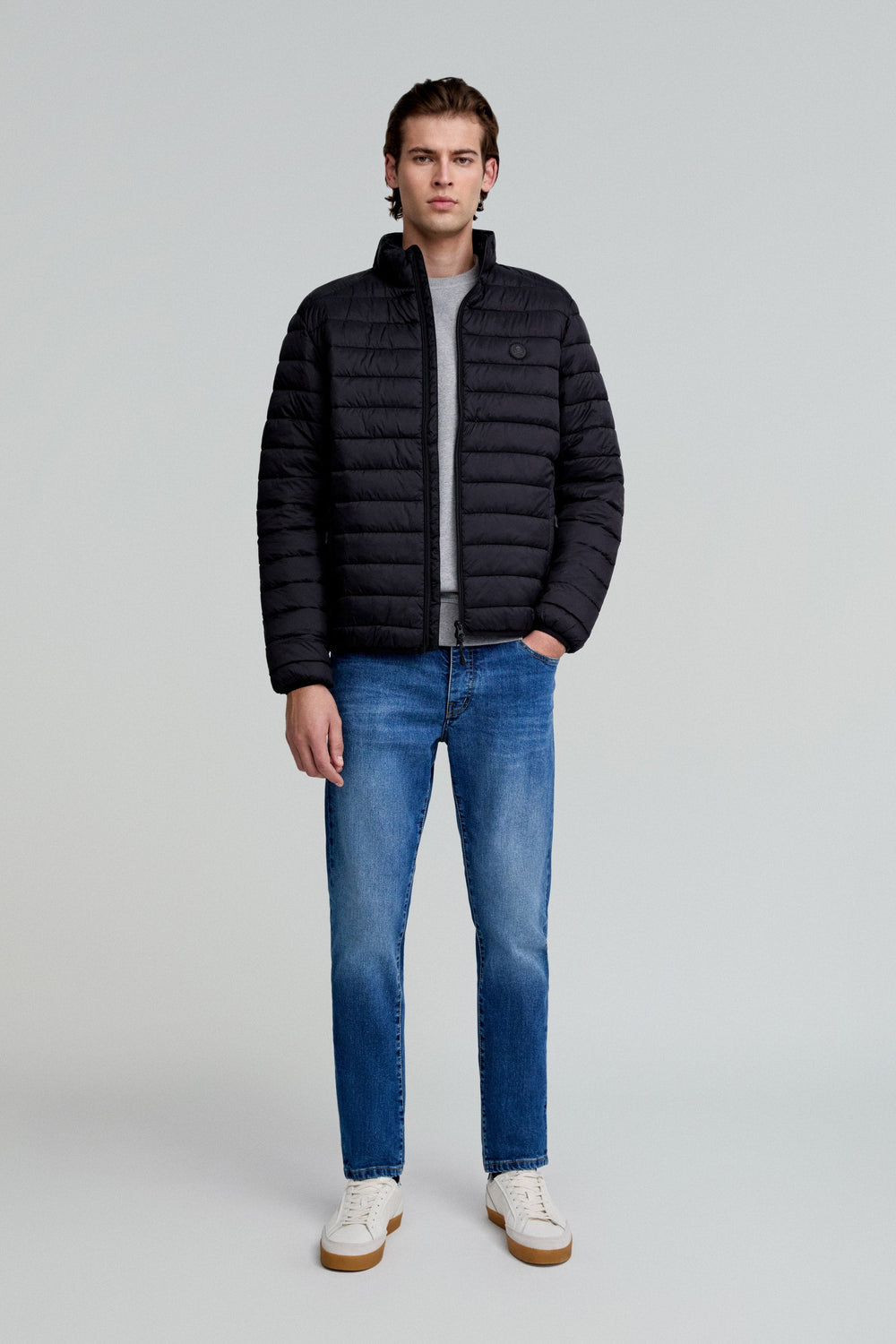 - Corte Slim Fit, cuello subido y cierre con cremallera de doble carro.