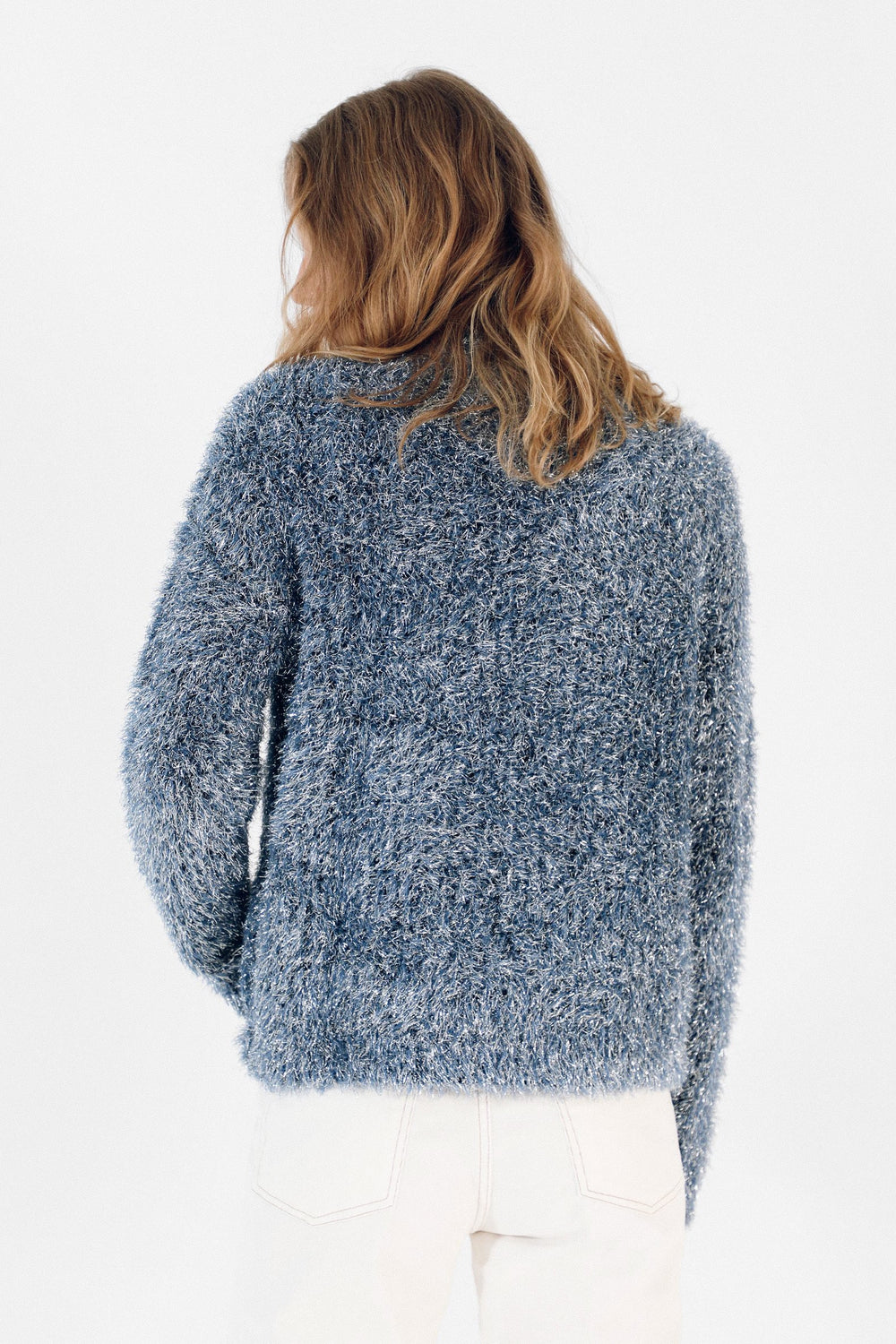 Jersey confeccionado en lurex metalizado. Corte Regular Fit, cuello redondo y manga larga.