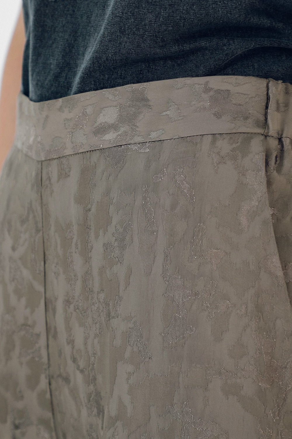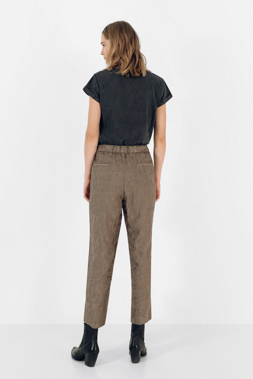 Pantalón con estampado de manchas camuflaje. Corte Regular Fit fluído, cierre con cremallera y bolsillos trasero.