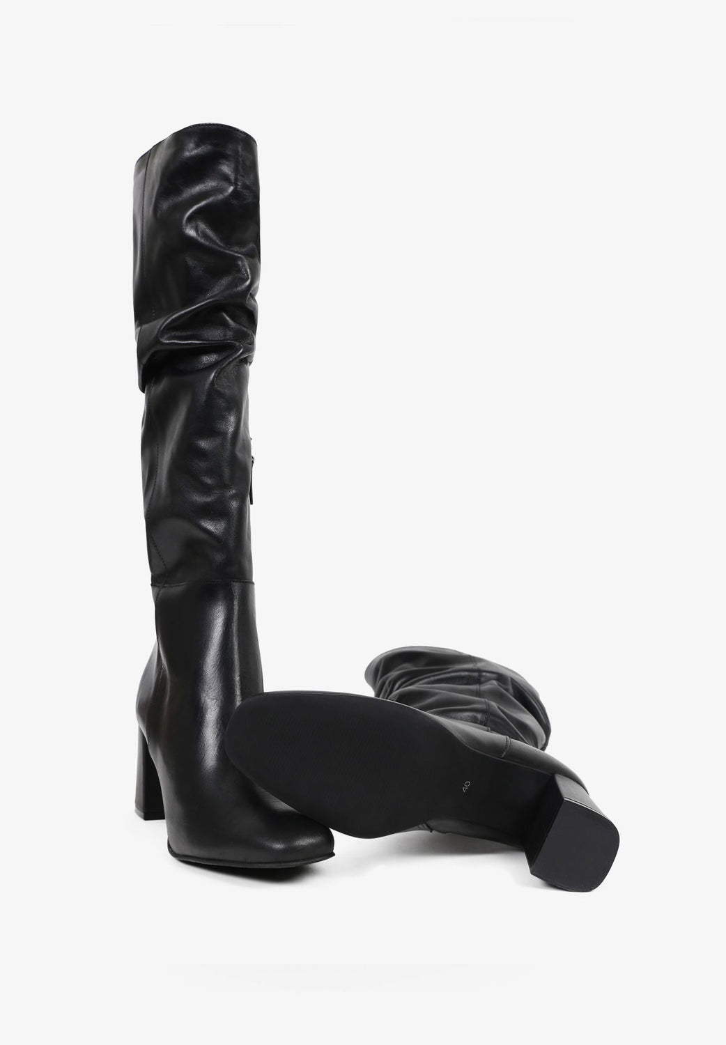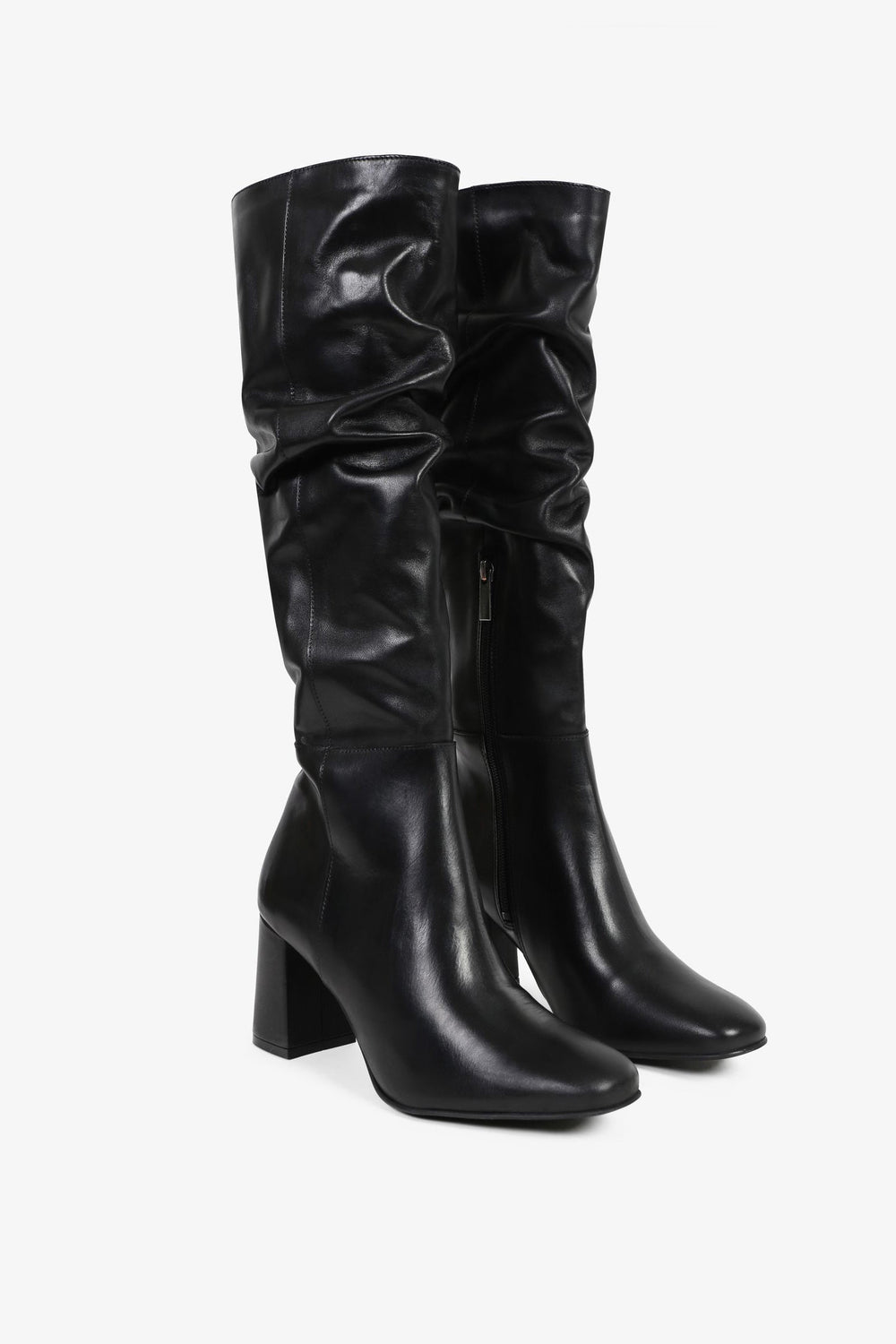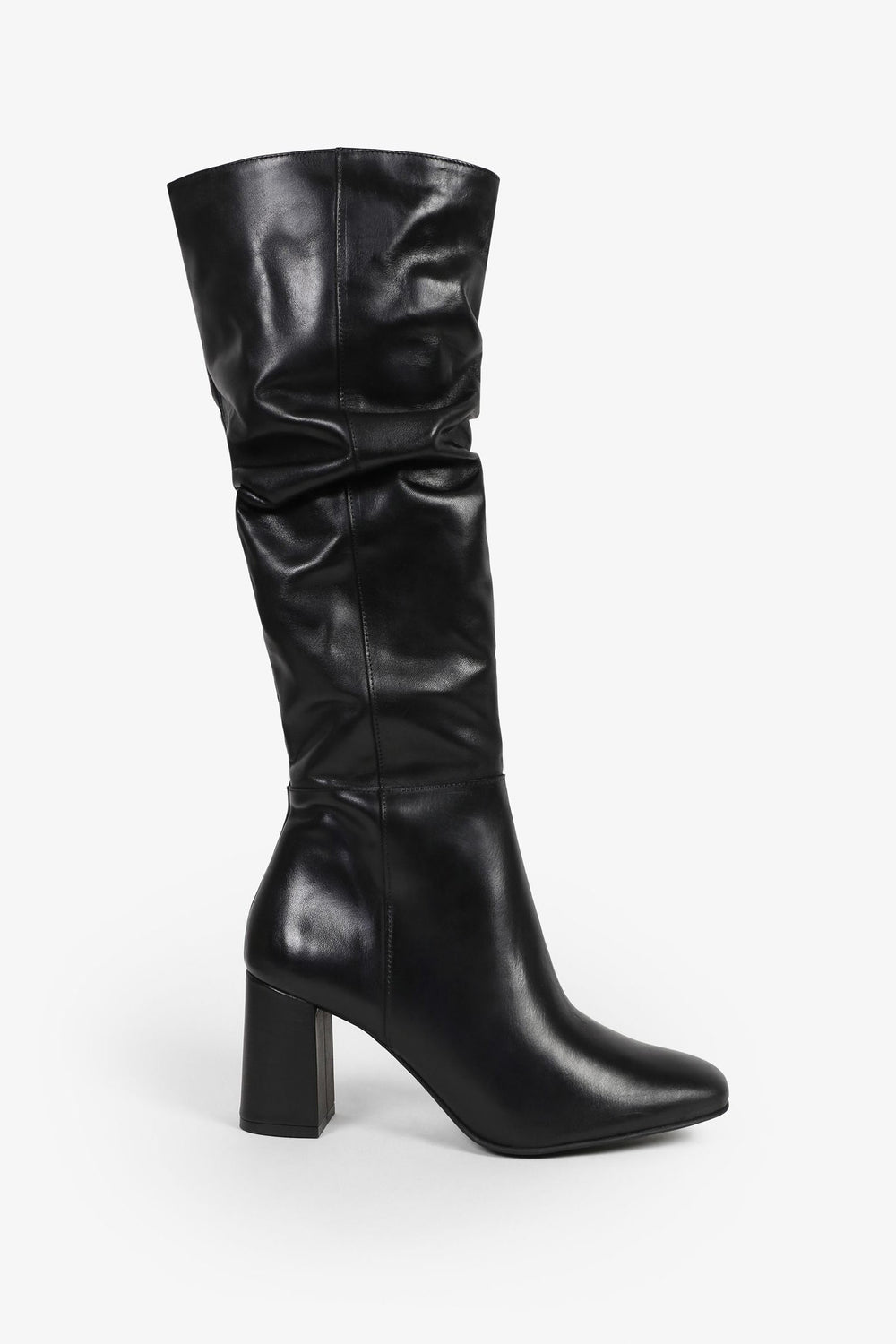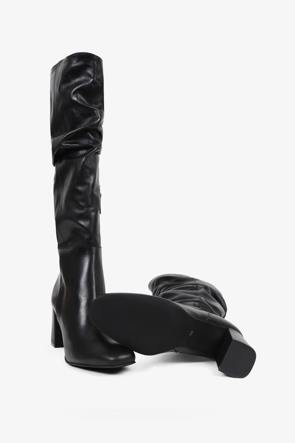 Botas confeccionadas en 100% piel de cabra. Caña alta, tacón medio y cierre lateral.