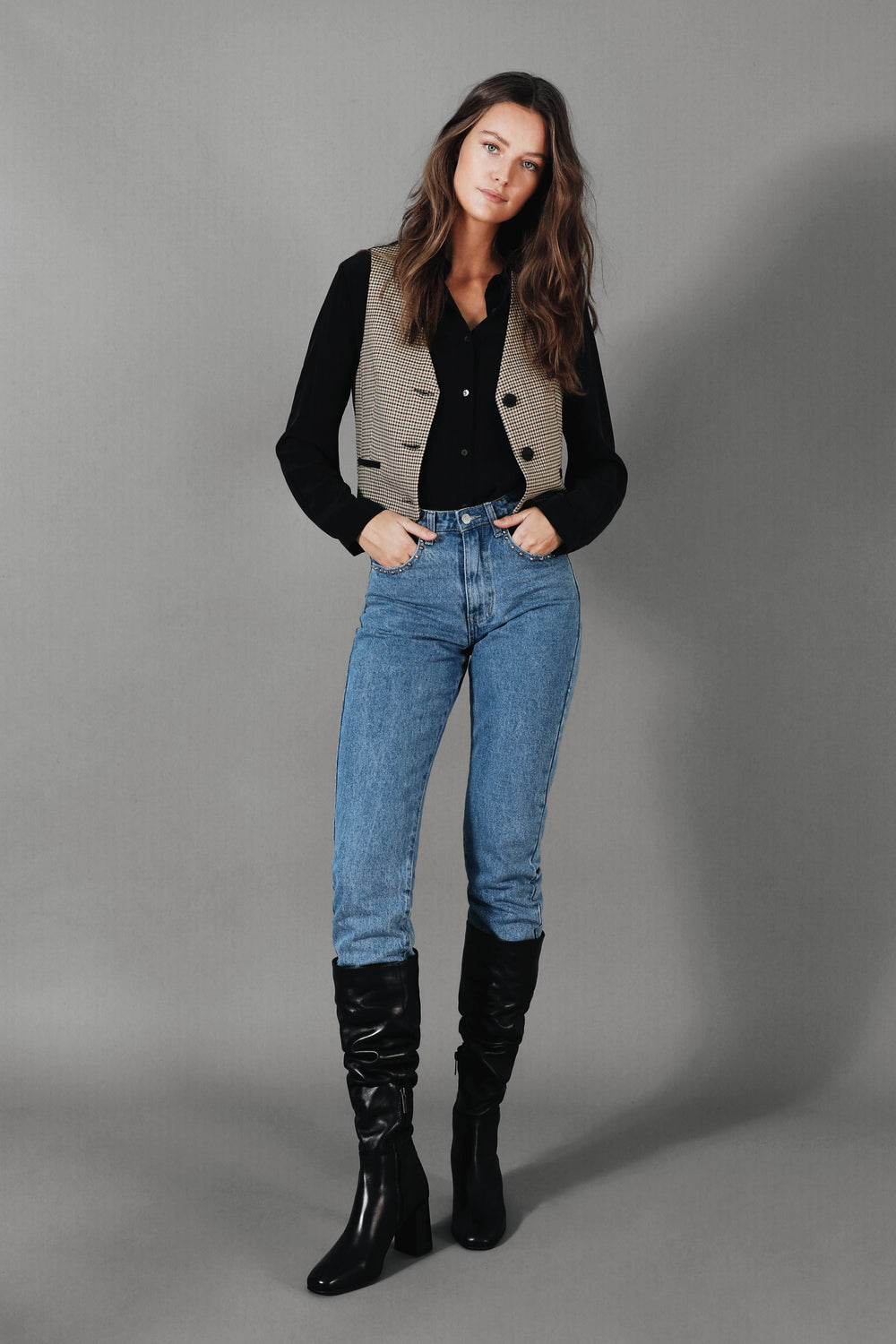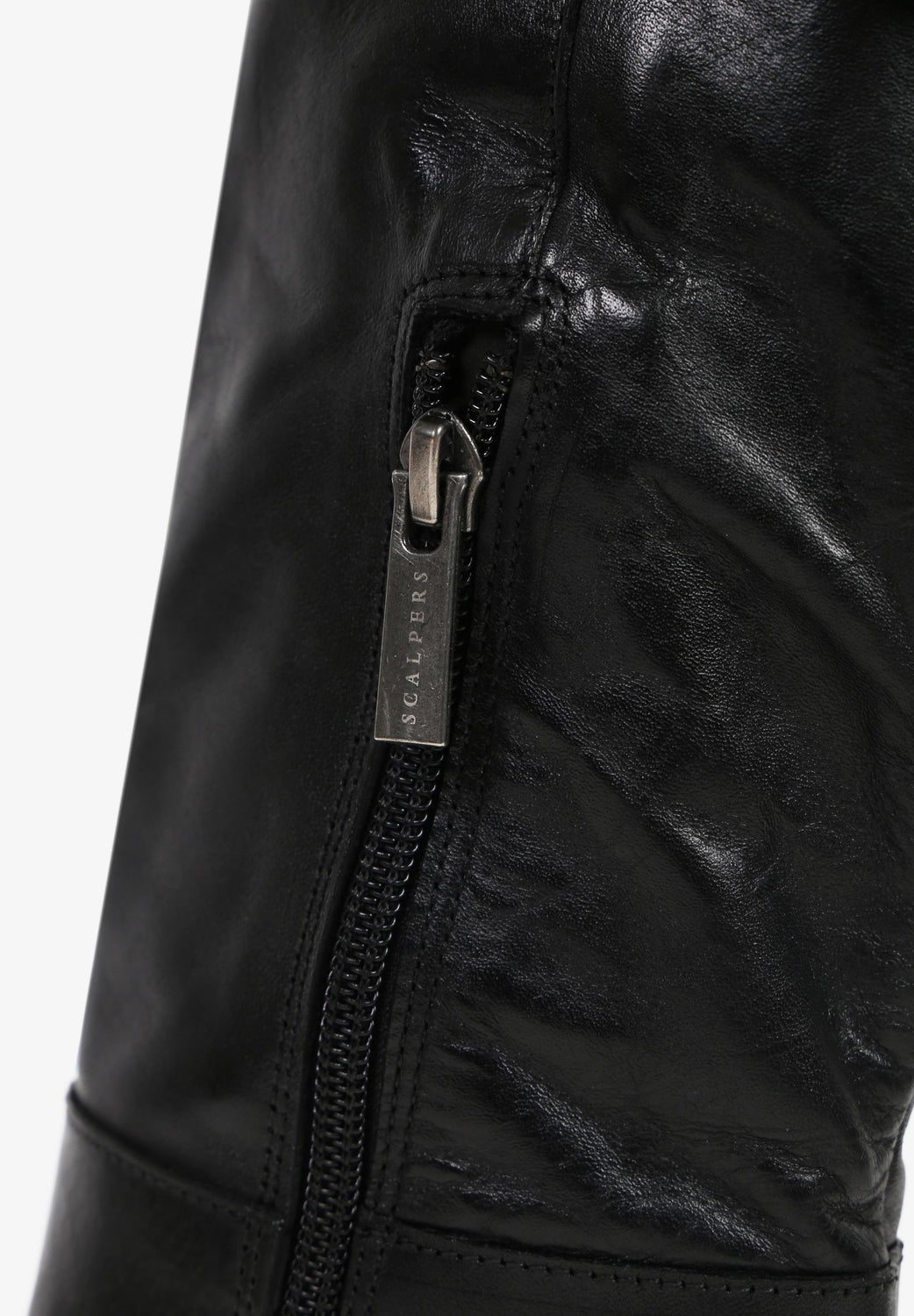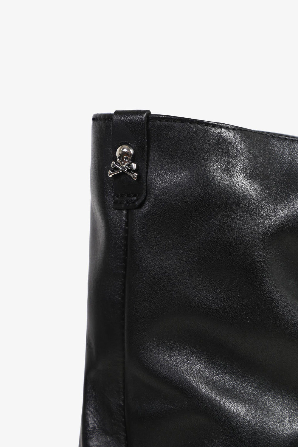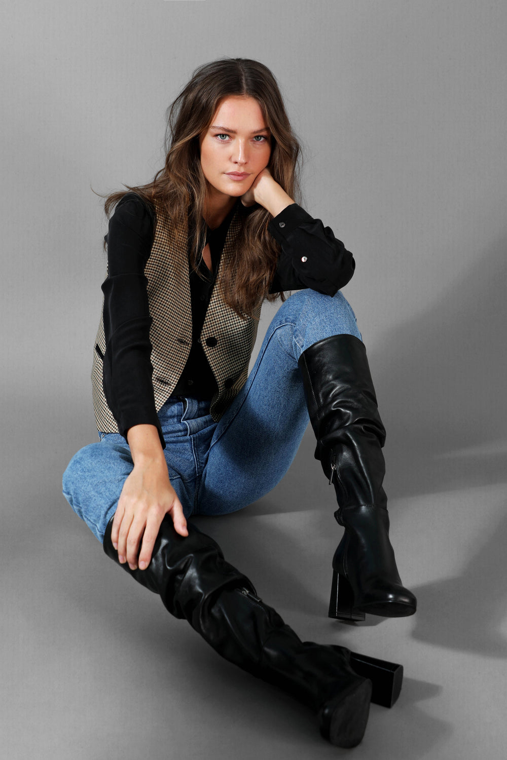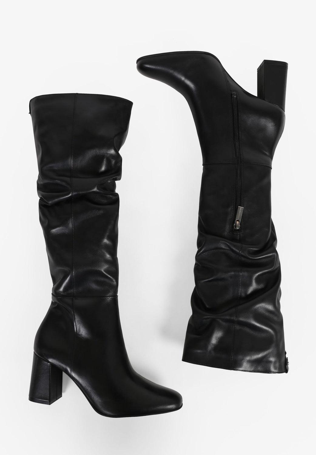 Botas confeccionadas en 100% piel de cabra. Caña alta, tacón medio y cierre lateral.
