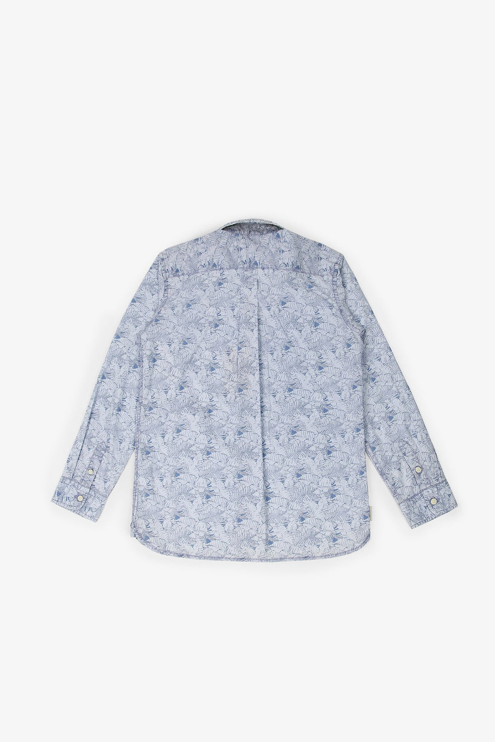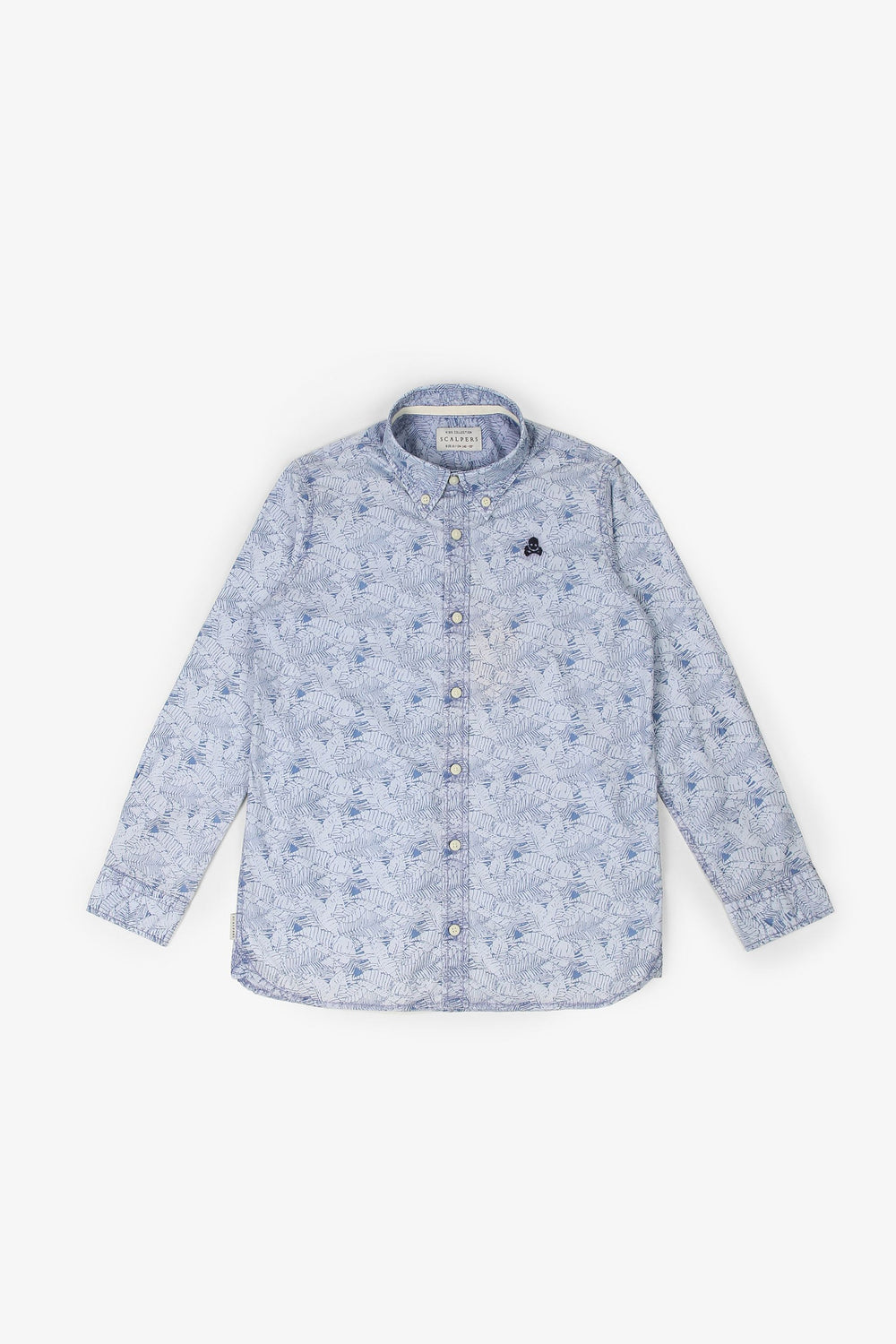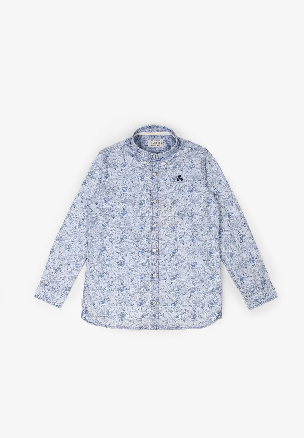 Camisa con estampado de hojas confeccionada en tejido 100% algodón. Corte Regular Fit, cuello con botones y manga larga terminada en puño con botones. Detalle de calavera a contraste.