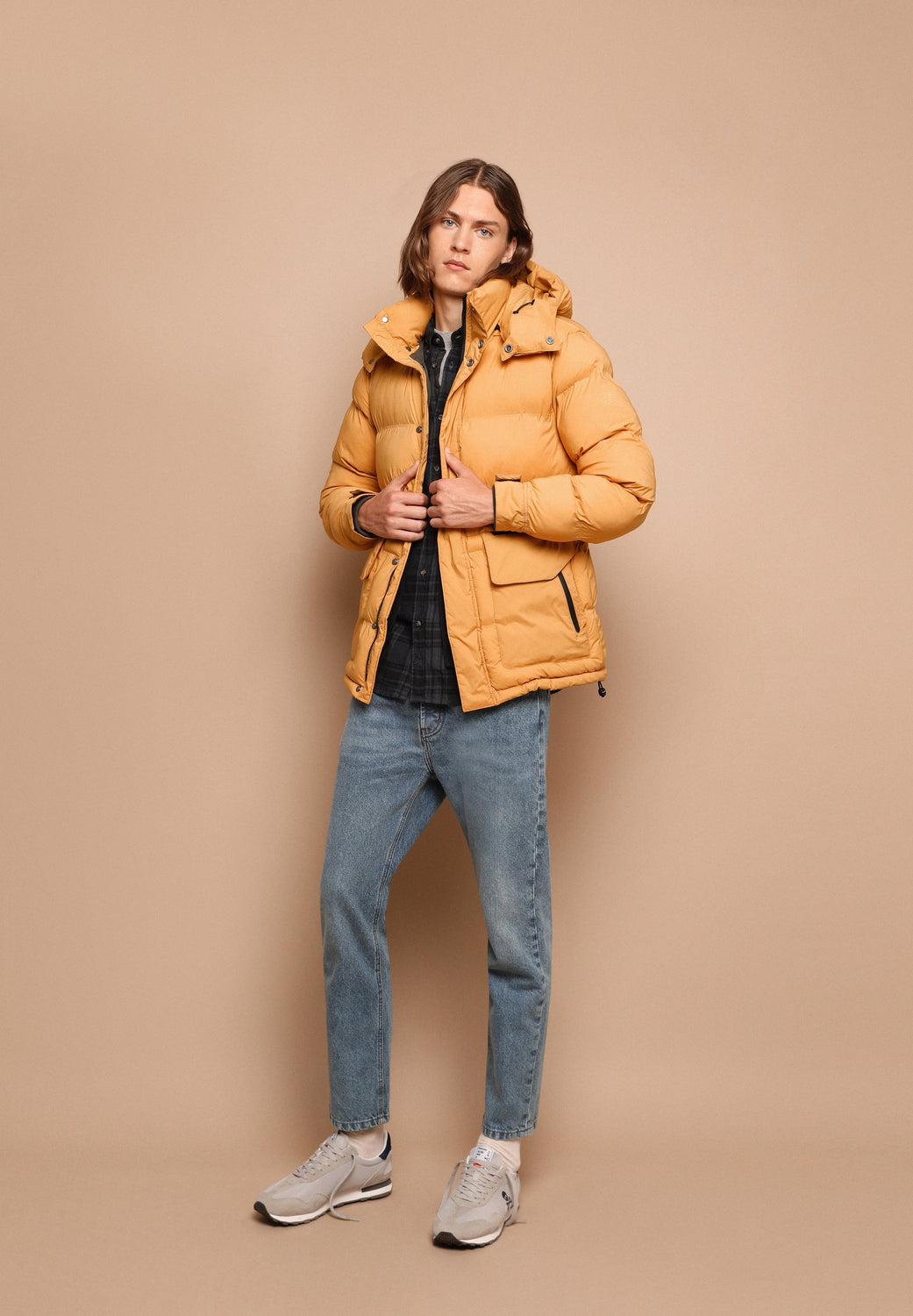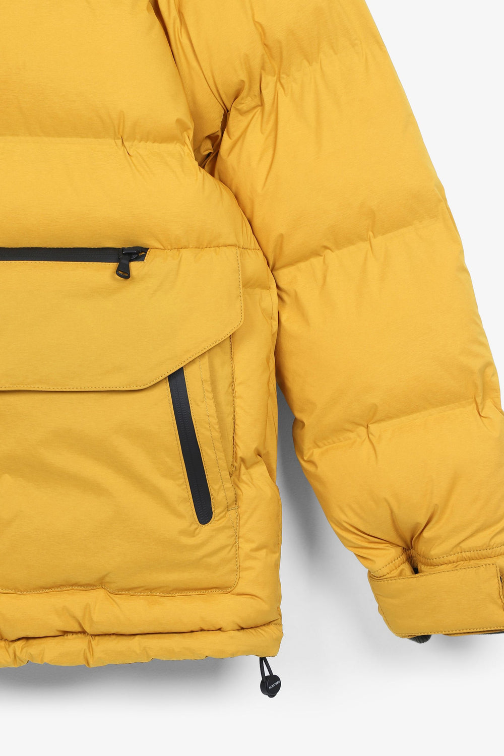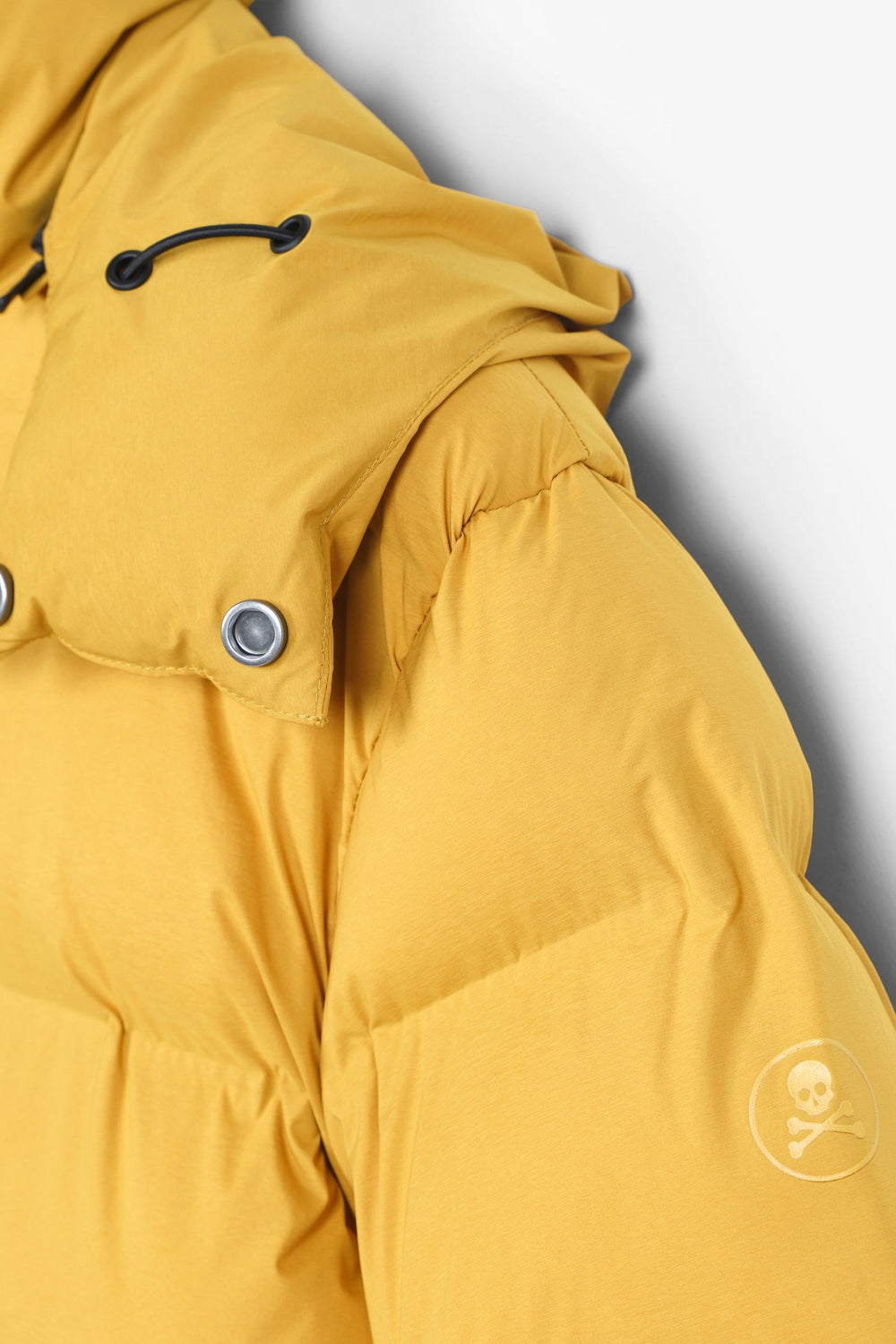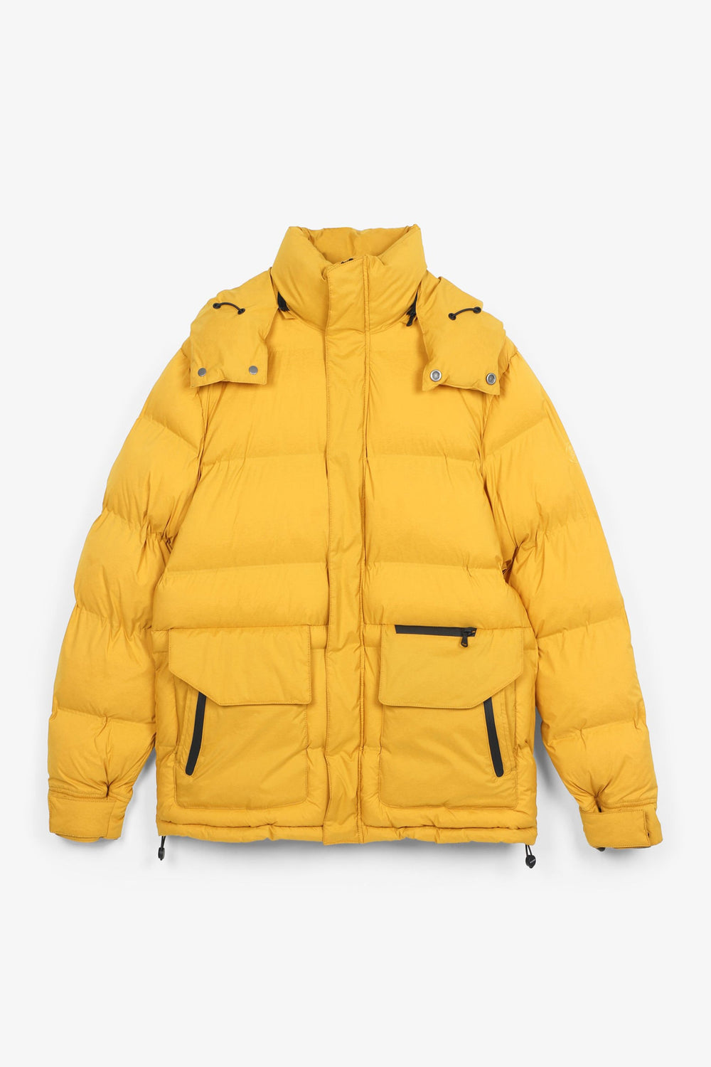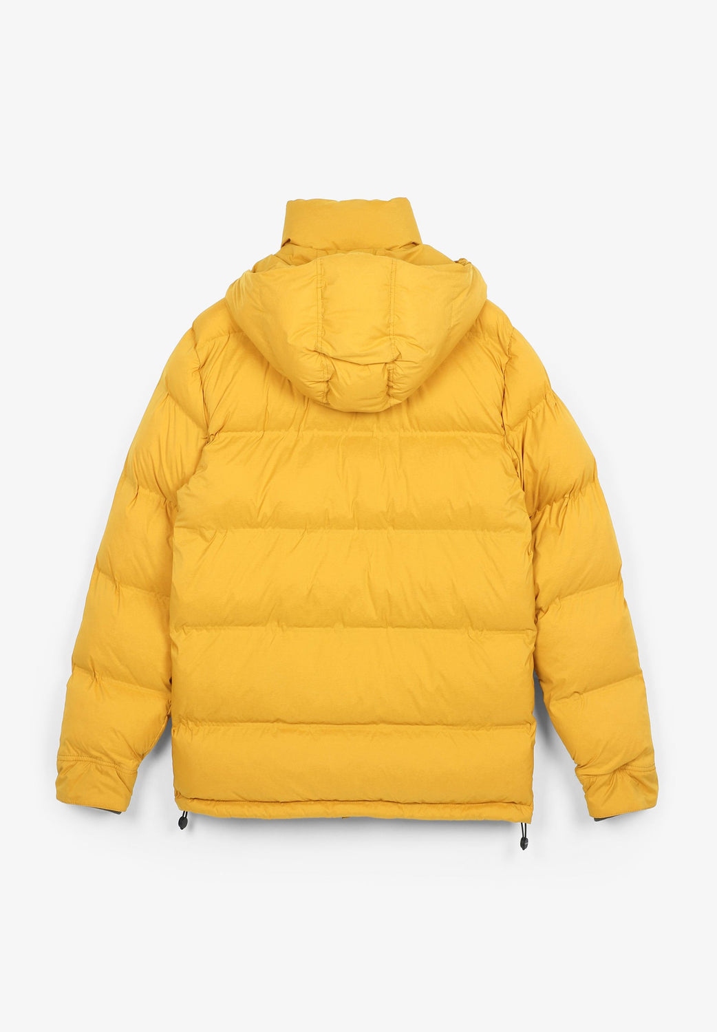 Polyester filling puffer coat. Regular fit, collar with detachable adjustable hood with snap-button fastening and double slider zip fastening. Long sleeves with velcro and heat-sealed pockets.