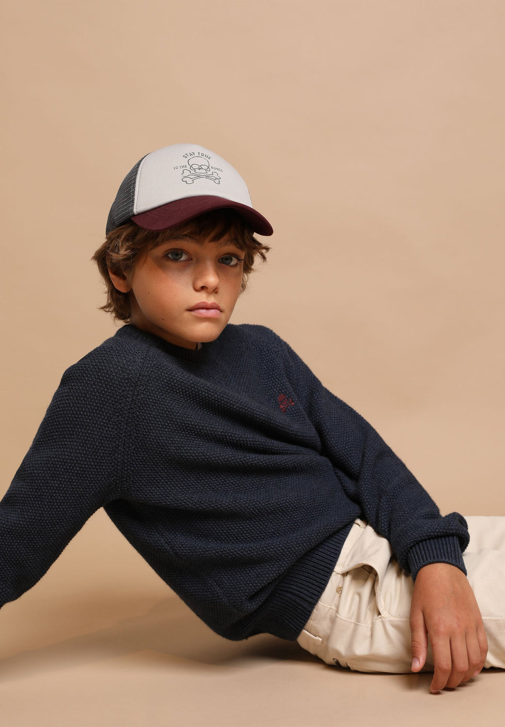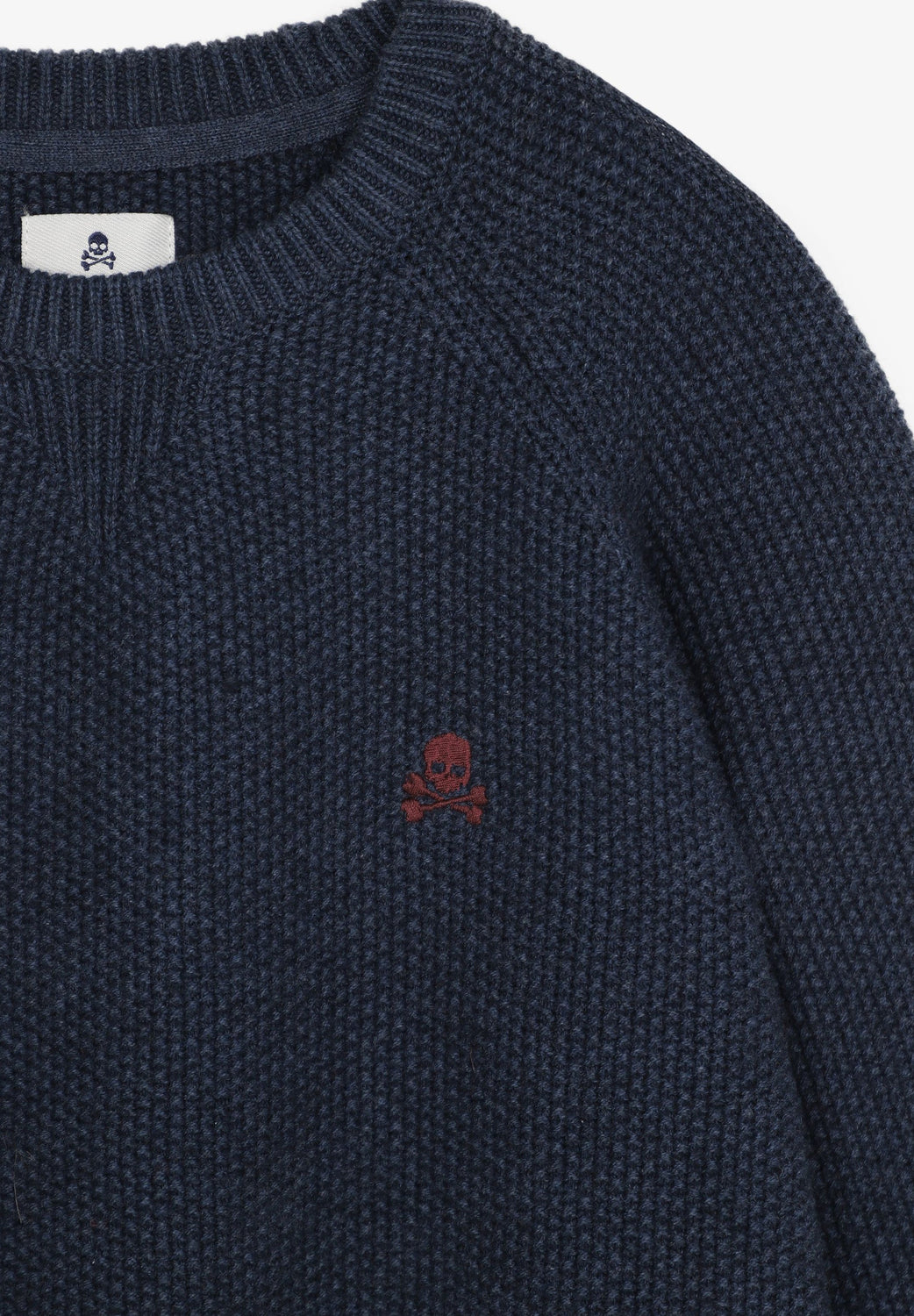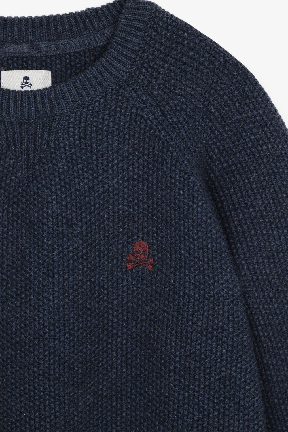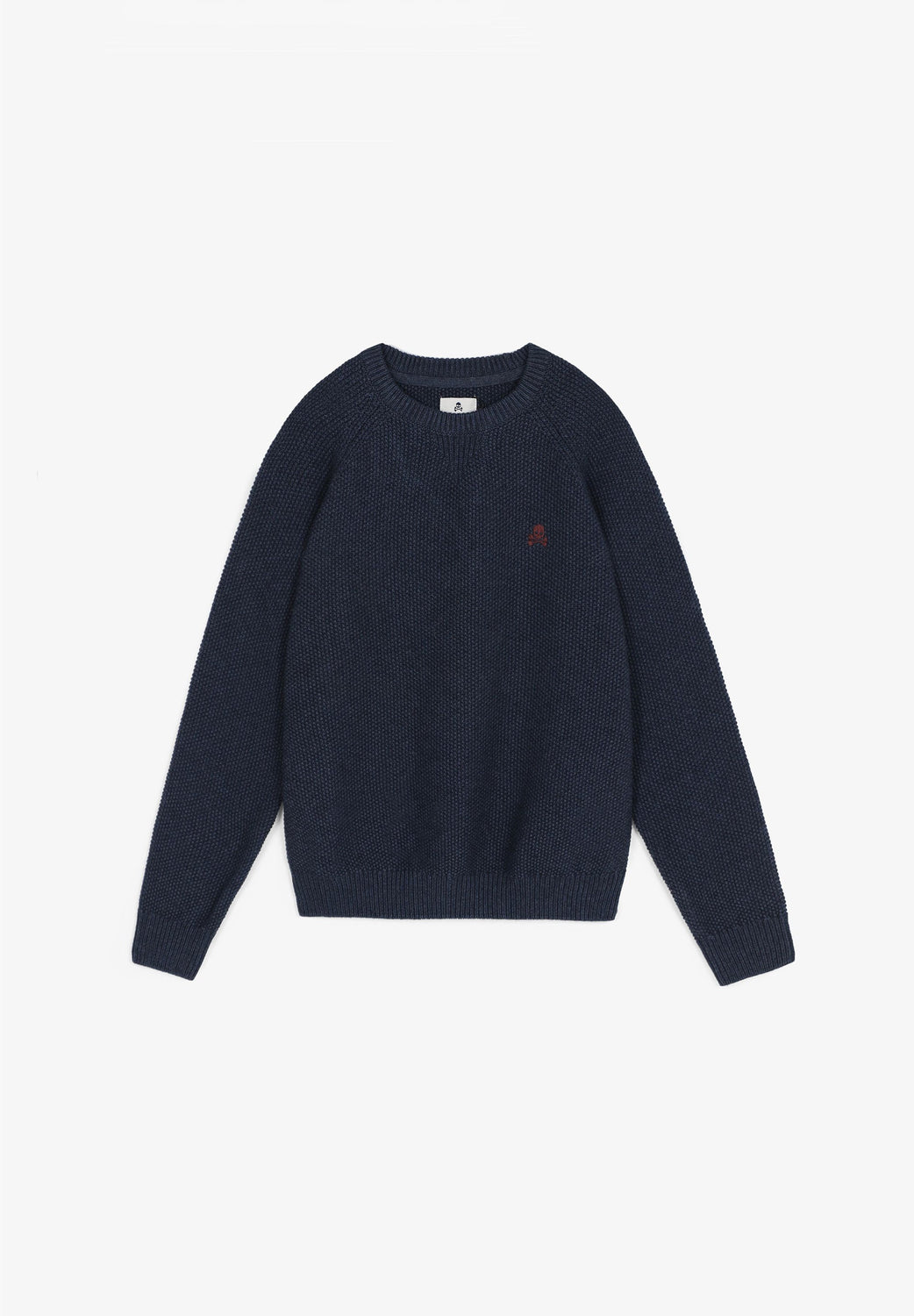 Knit sweater made of a wool and cotton blend. Regular fit, round neck and long sleeves. Contrasting skull.