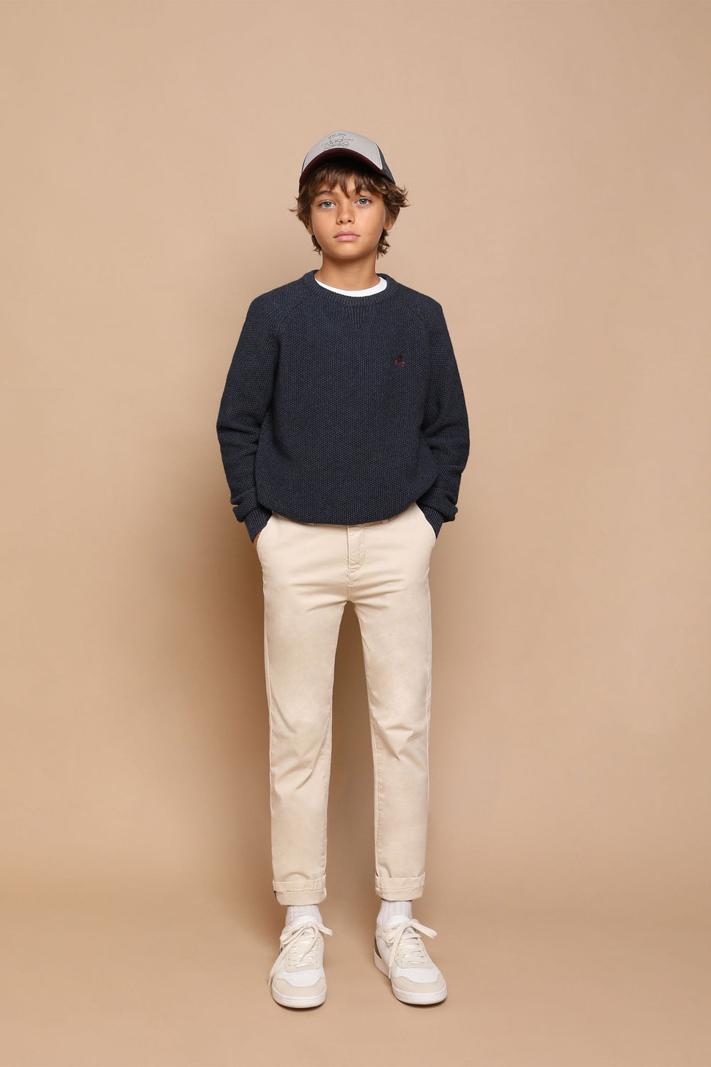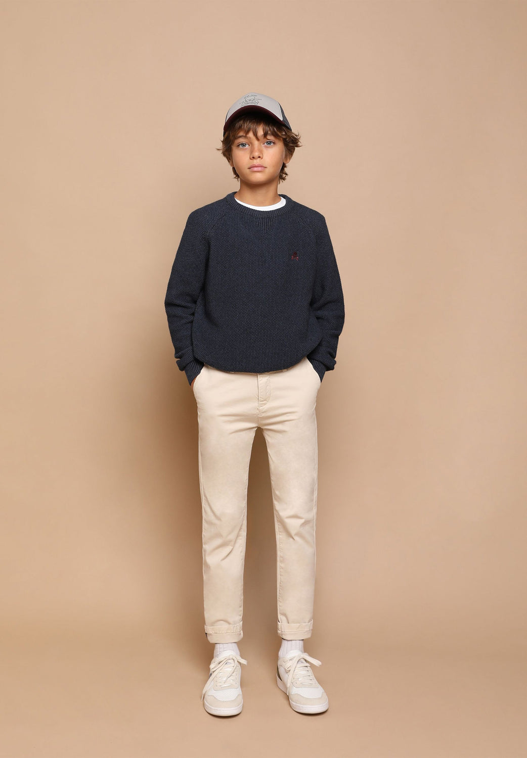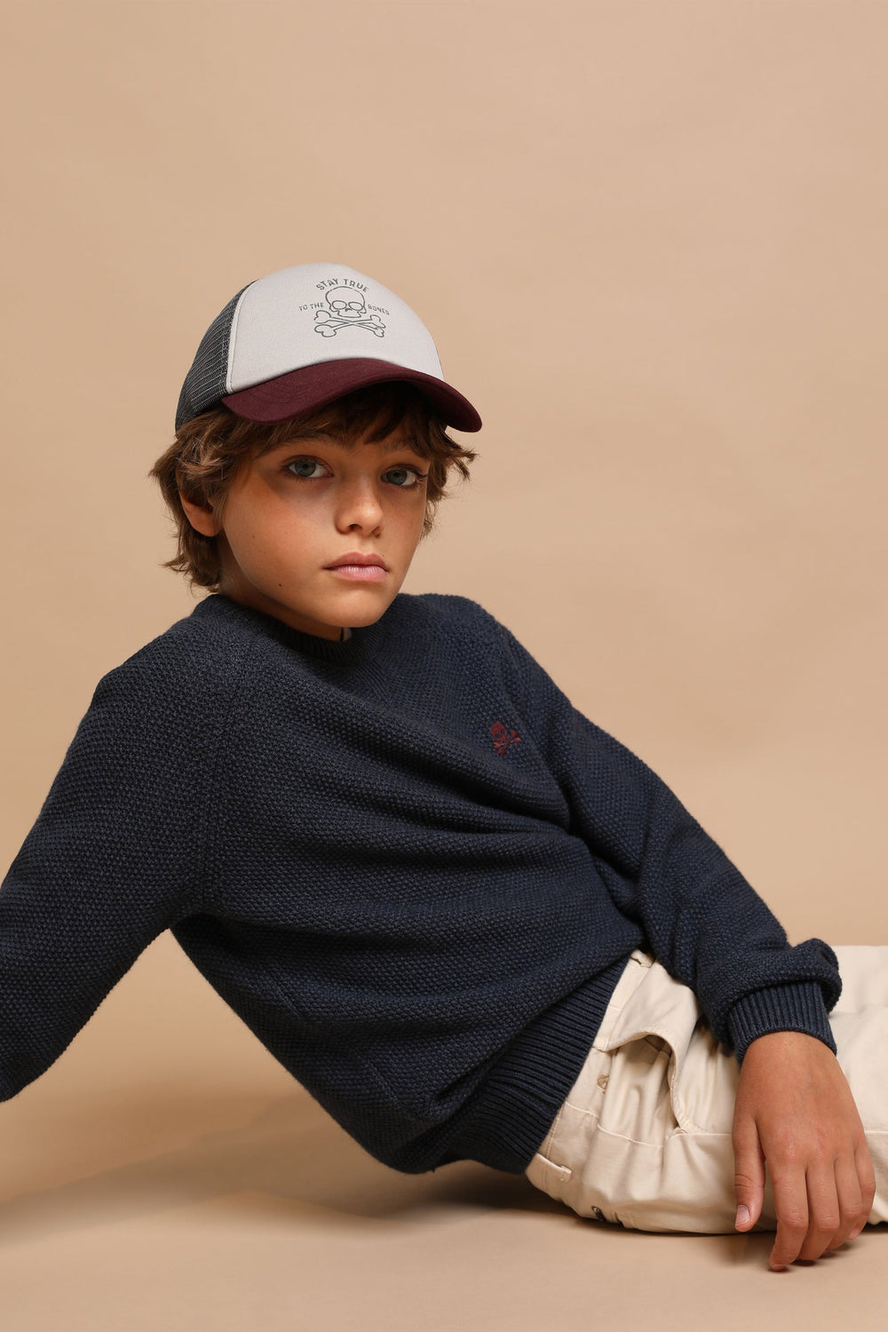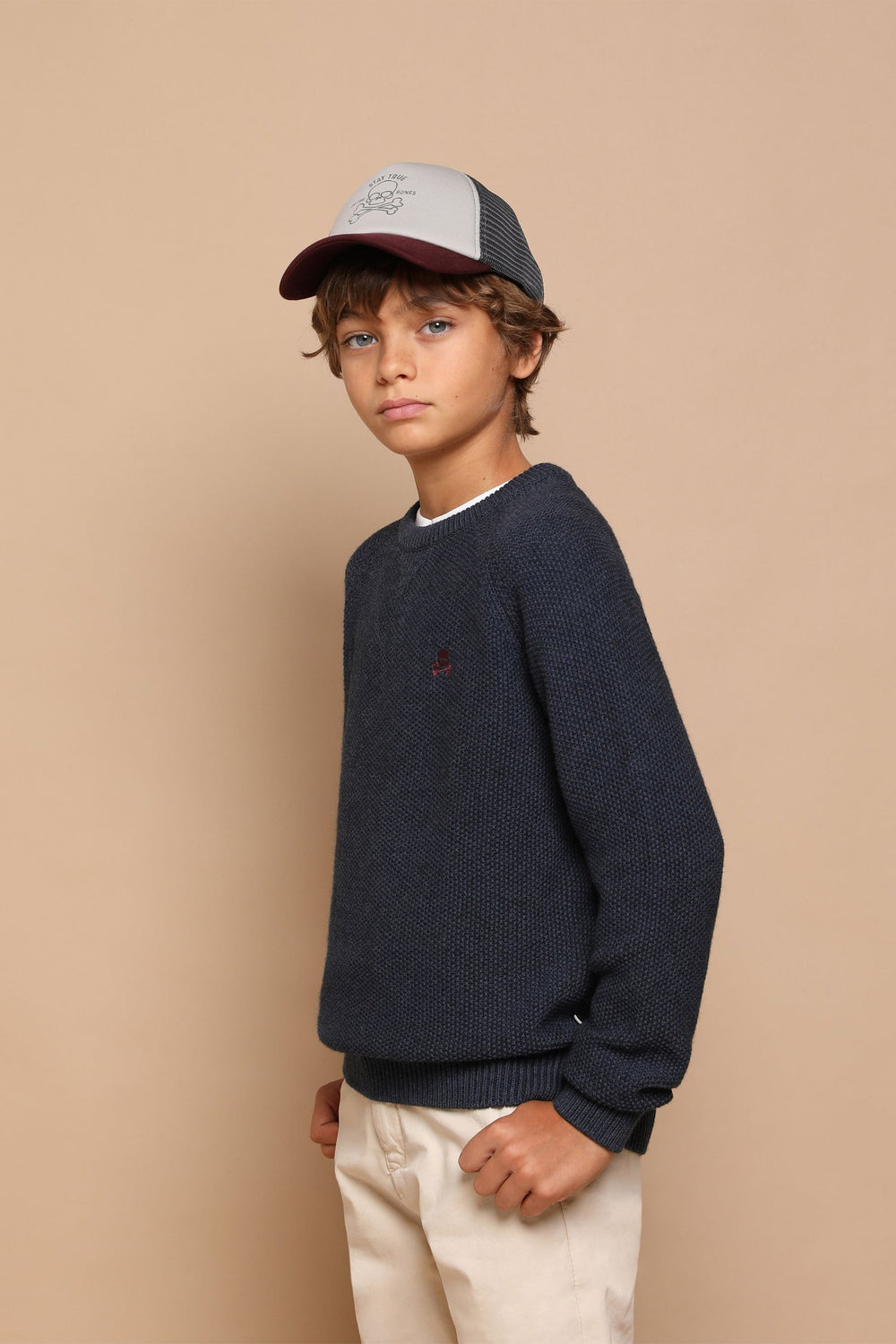 Knit sweater made of a wool and cotton blend. Regular fit, round neck and long sleeves. Contrasting skull.
