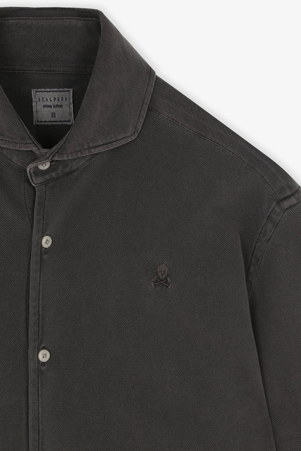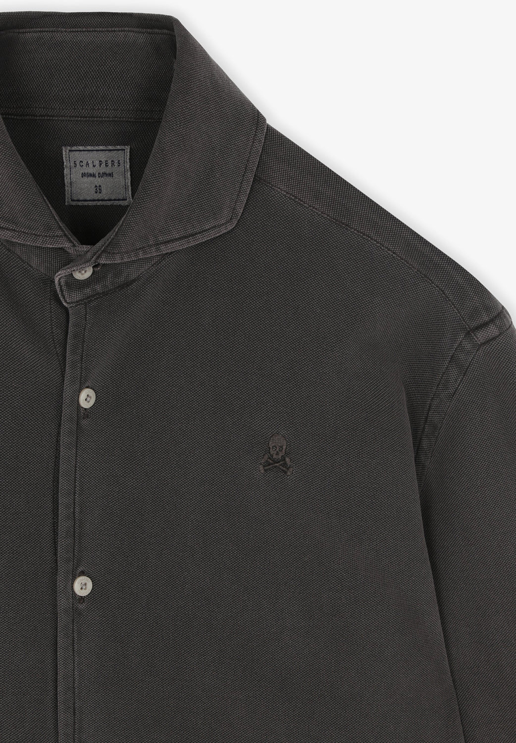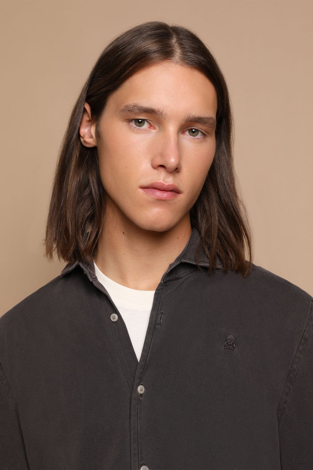 Piqué shirt made of 100% cotton organic. Regular fit, classic collar and button fastening. Long sleeves and matching embroidered skull.