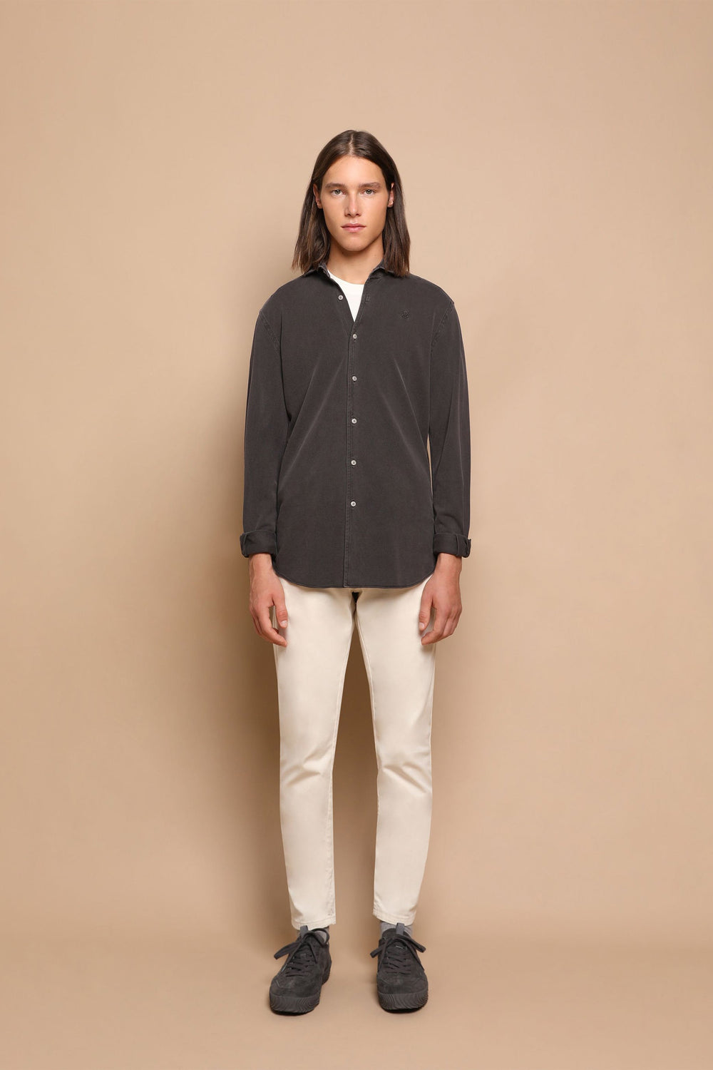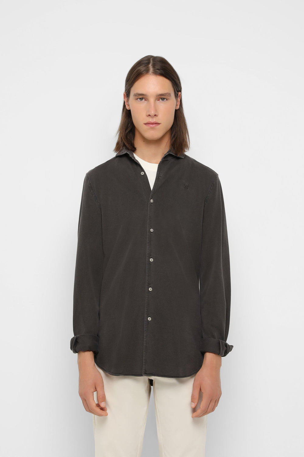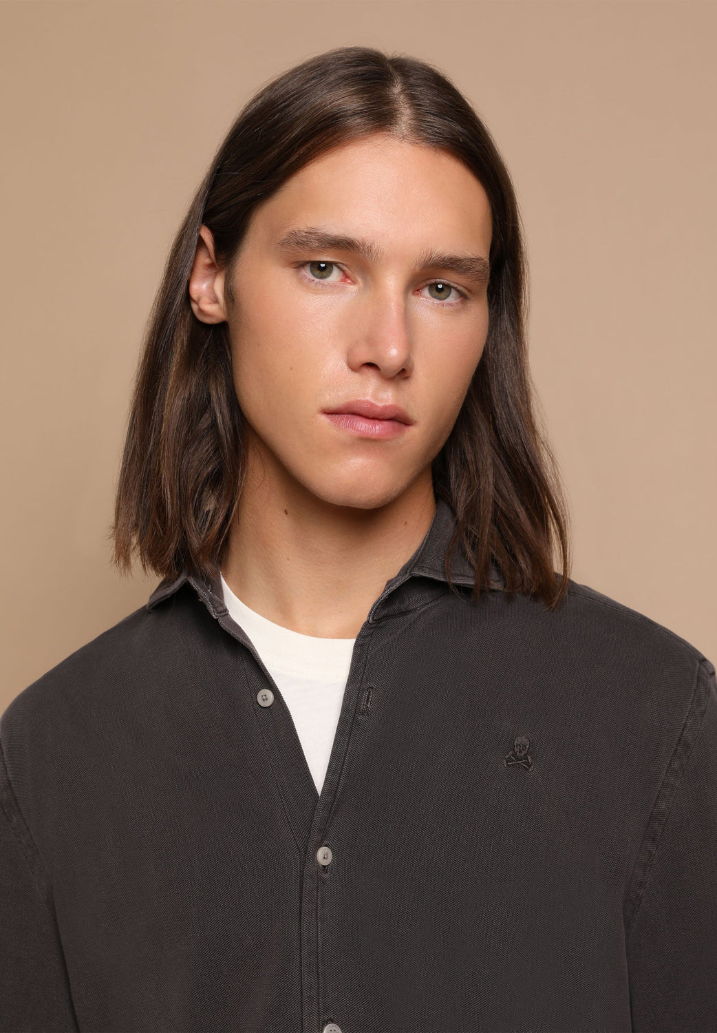 Piqué shirt made of 100% cotton organic. Regular fit, classic collar and button fastening. Long sleeves and matching embroidered skull.