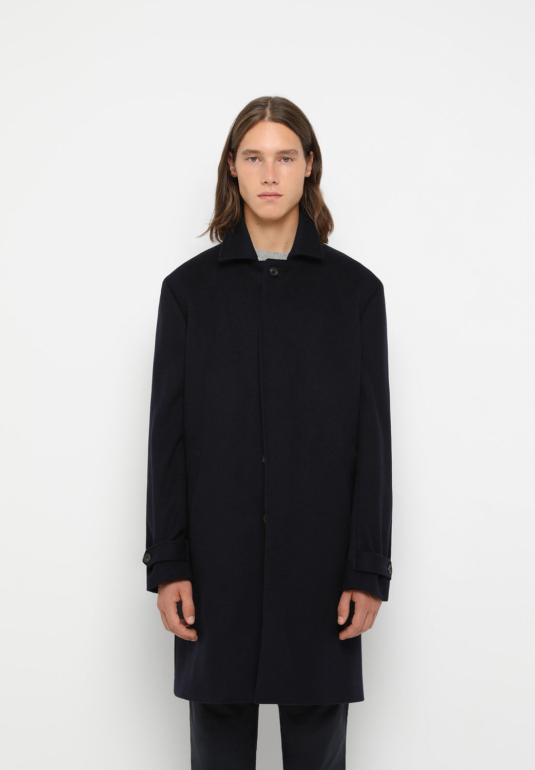 Classic coat made of a wool and cashmere blend. Regular fit, button fastening, lapel collar. Long sleeves with buttoned cuffs. Side pockets.