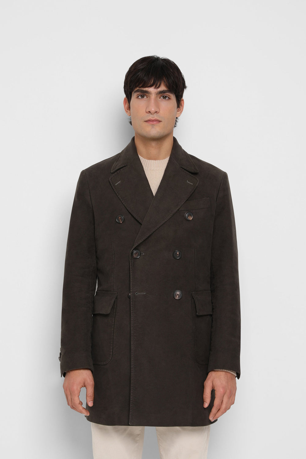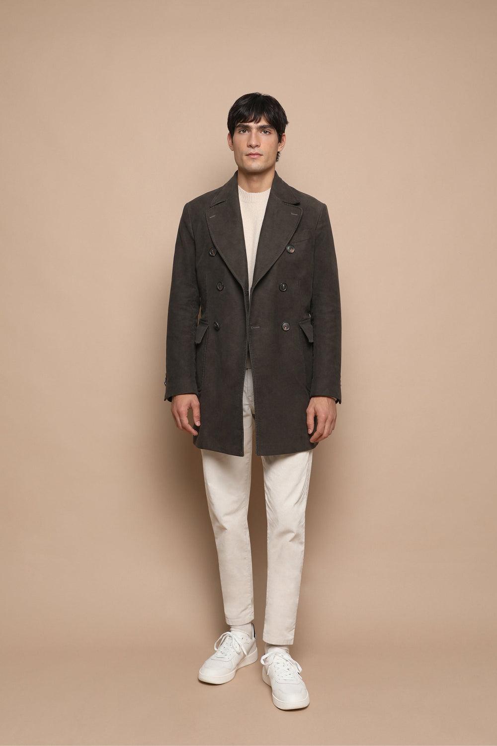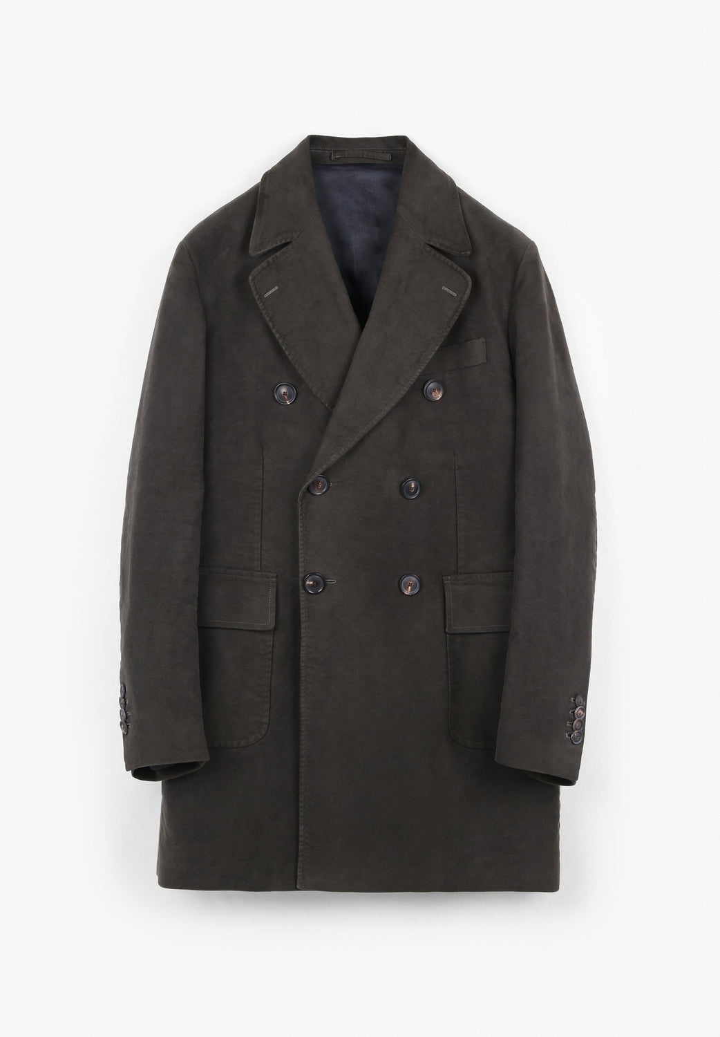 Three-quarter length coat made from a wool blend. Regular fit, notched lapel collar and crossed button fastening. Pockets with lapels.