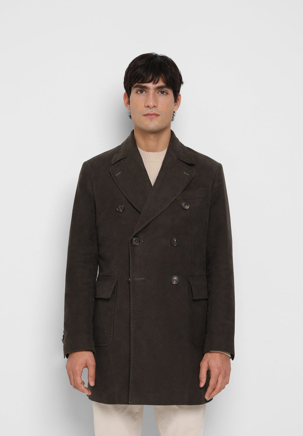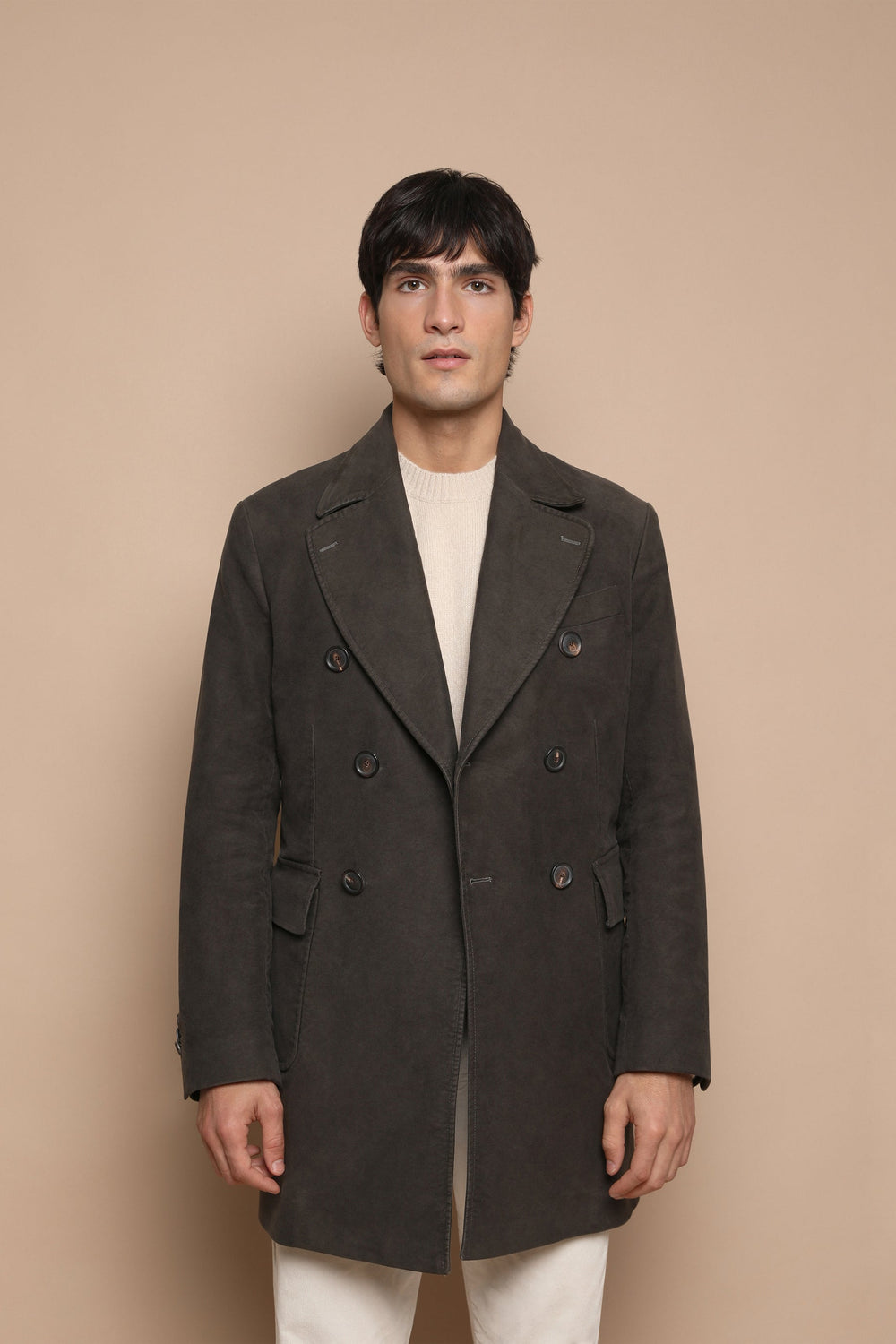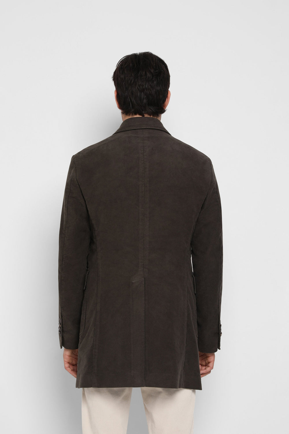 Three-quarter length coat made from a wool blend. Regular fit, notched lapel collar and crossed button fastening. Pockets with lapels.