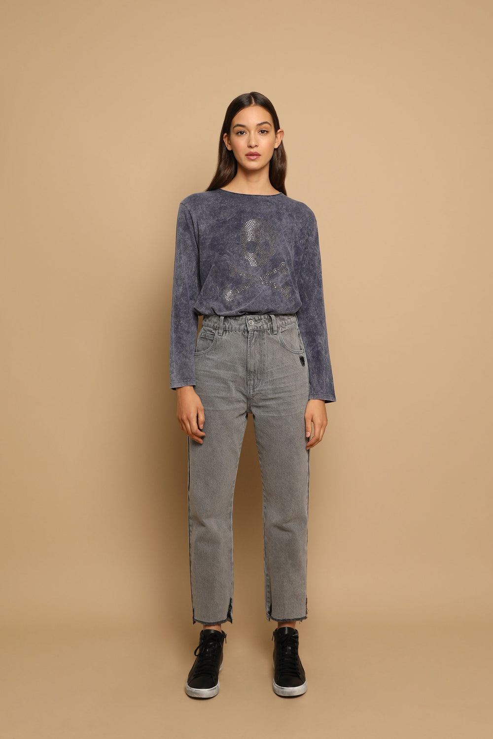 STRAIGHT JEANS WITH FRAYED EDGE