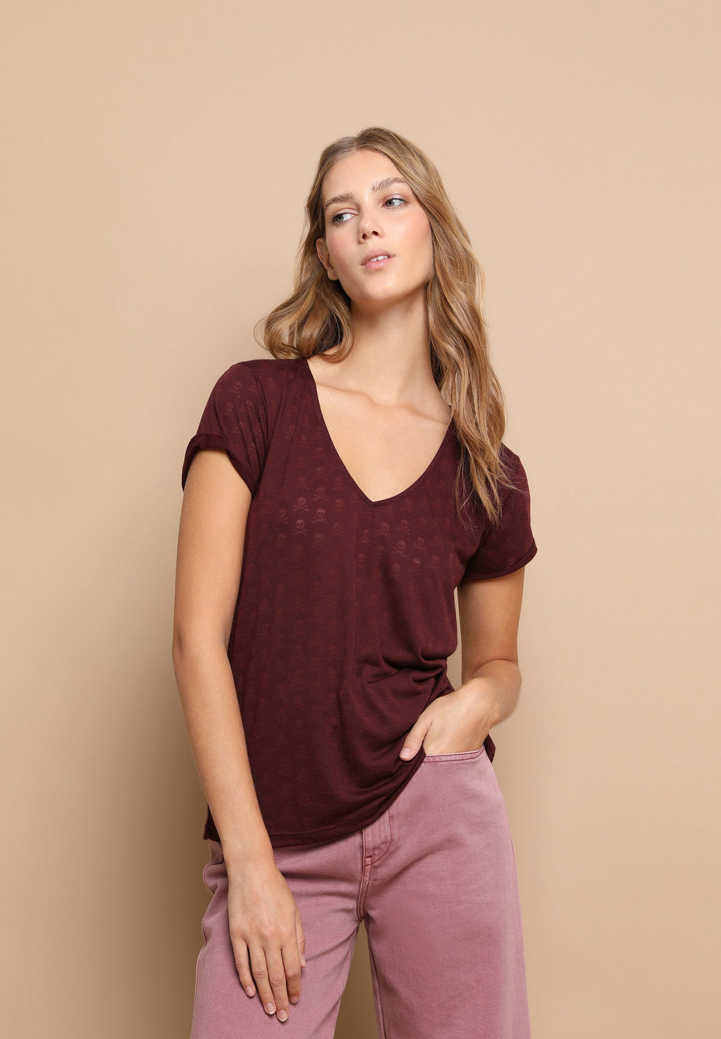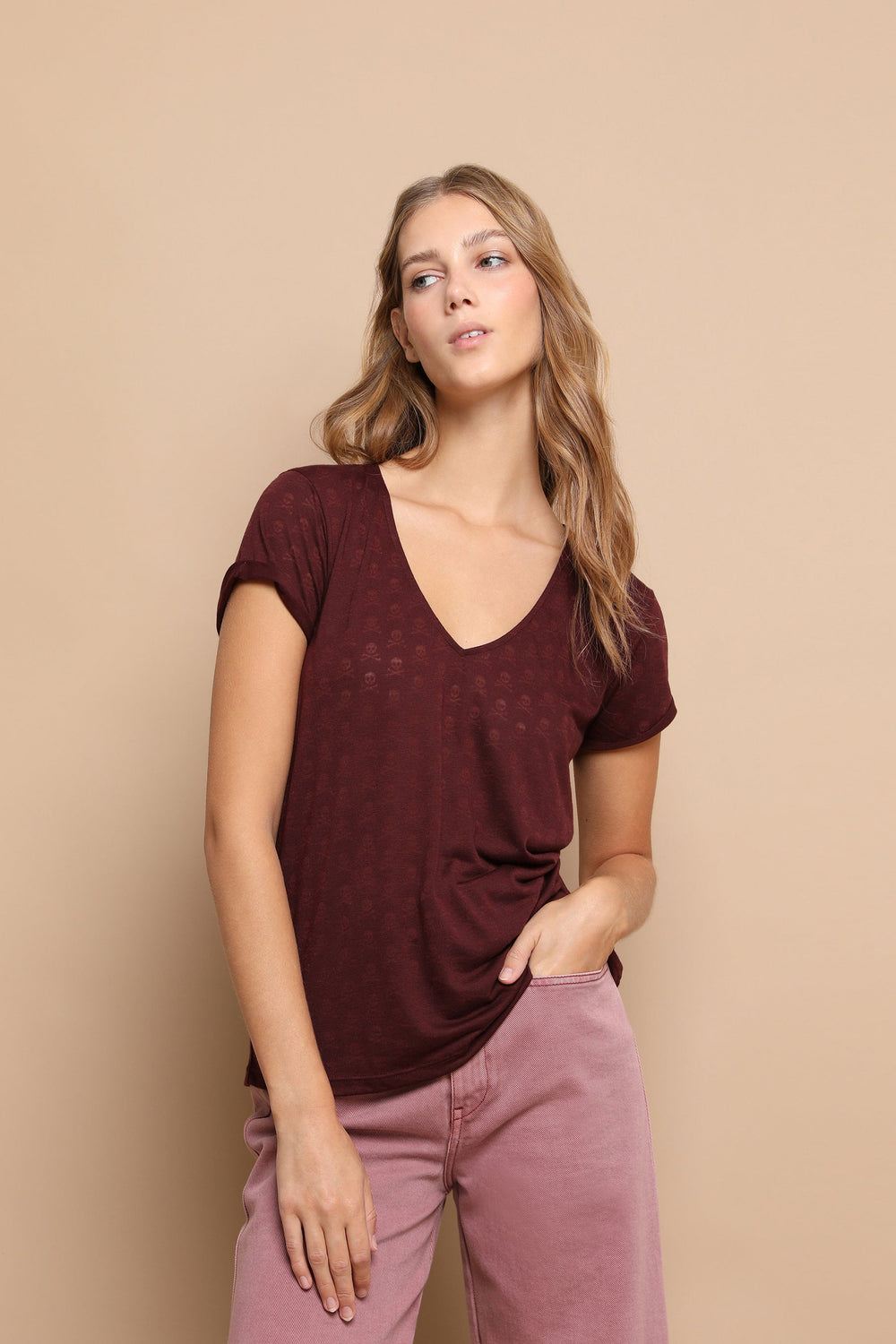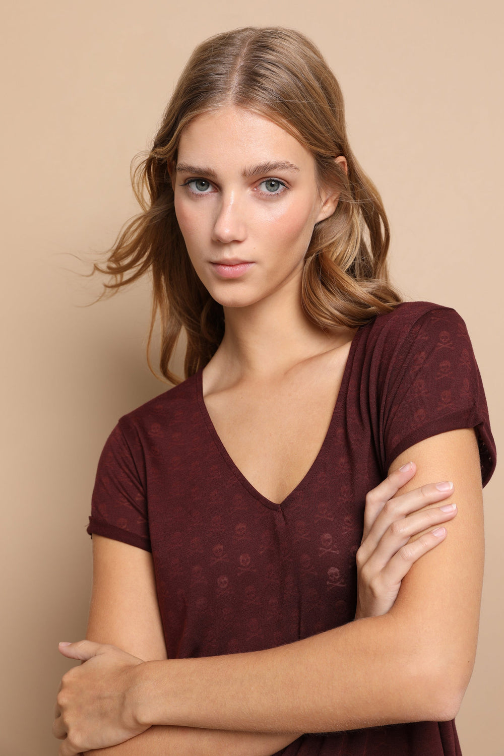T-shirt with all-over skull print. Regular fit, V-neck and short sleeves.