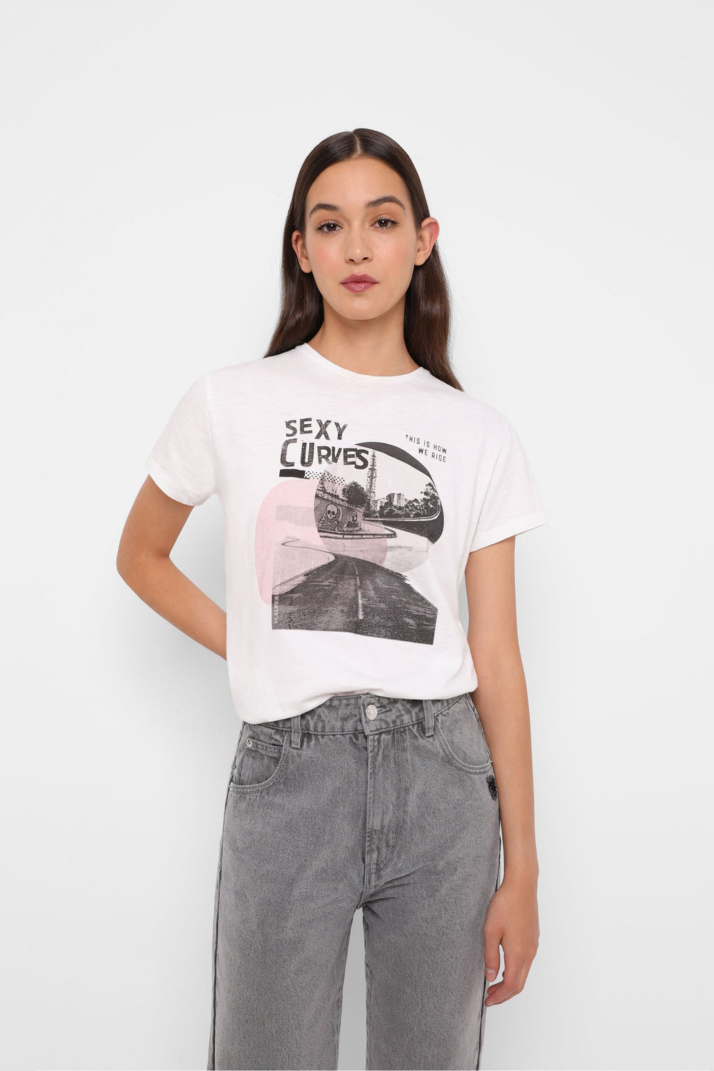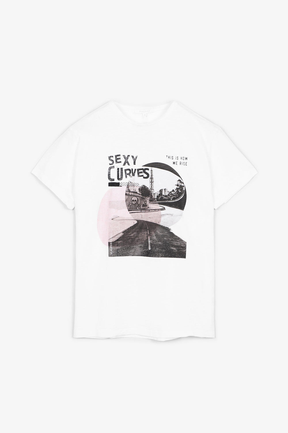 T-shirt made of 100% cotton with collage print. Regular fit.