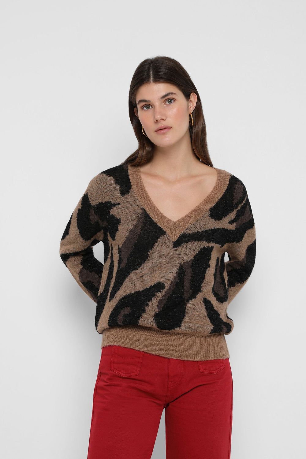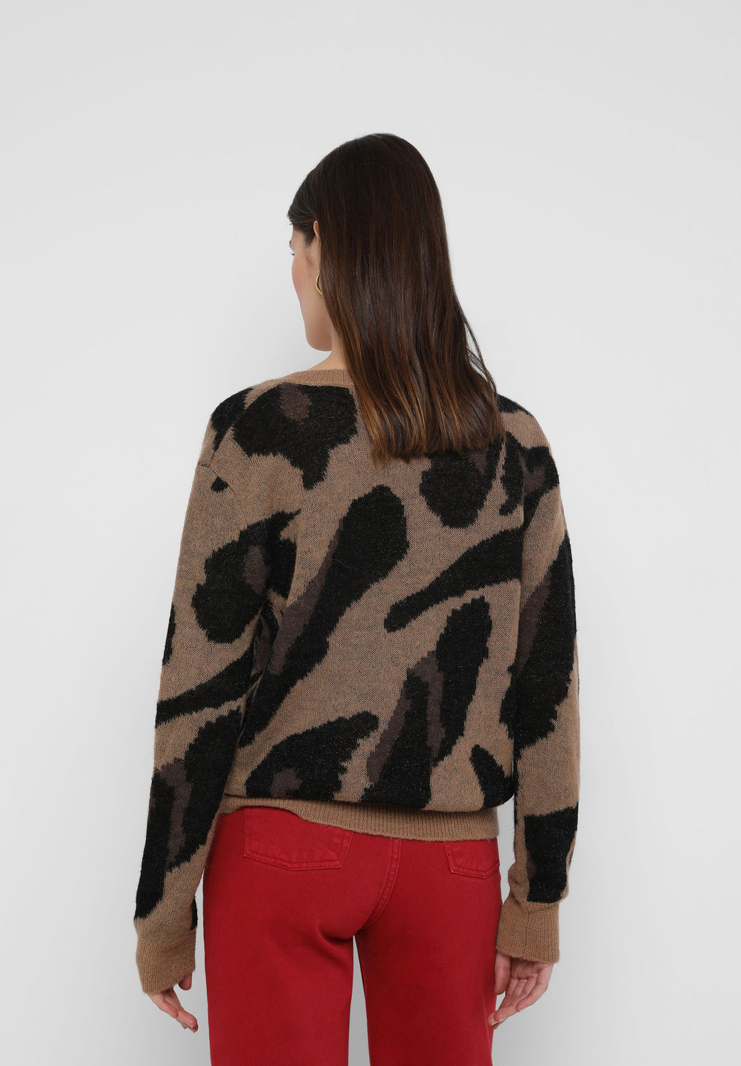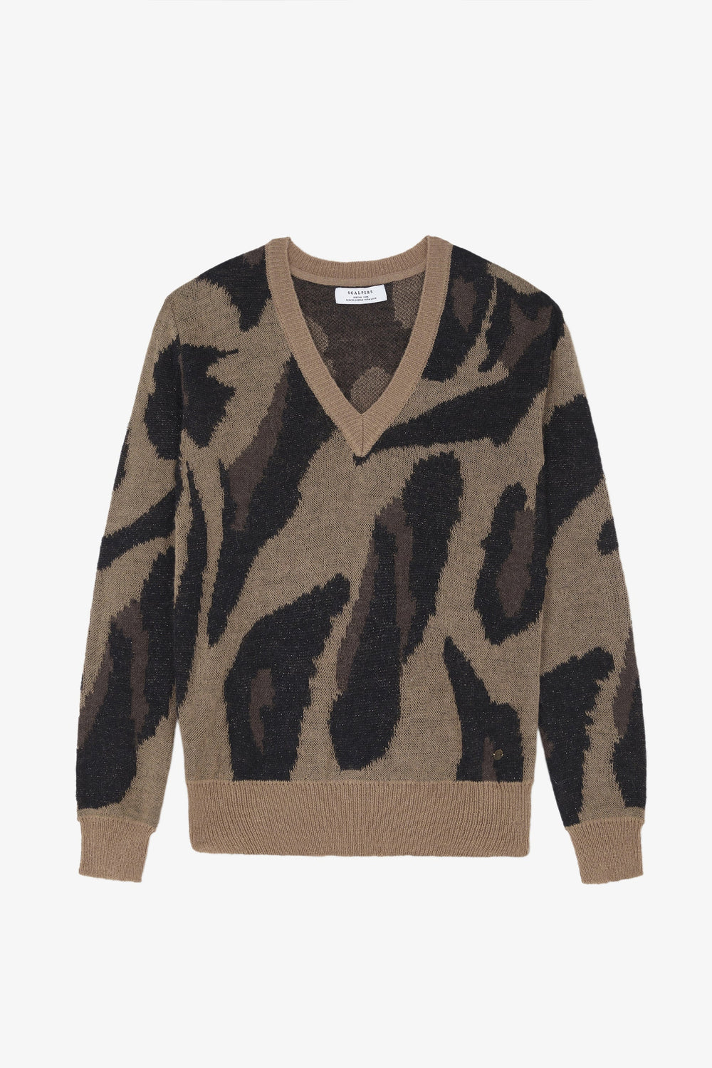 Animal print sweater made of a merino wool and alpaca blend. Regular fit, V-neck and long sleeves.