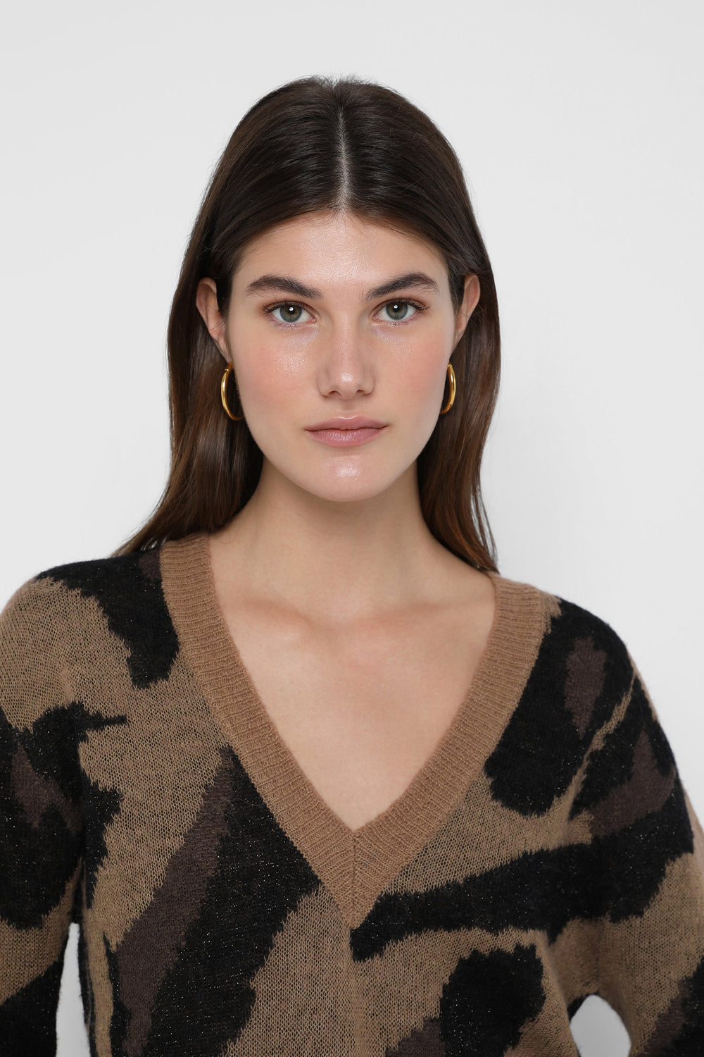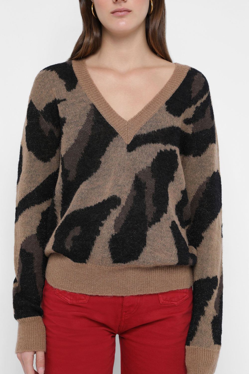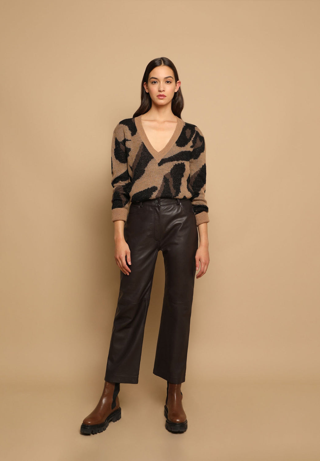 Animal print sweater made of a merino wool and alpaca blend. Regular fit, V-neck and long sleeves.
