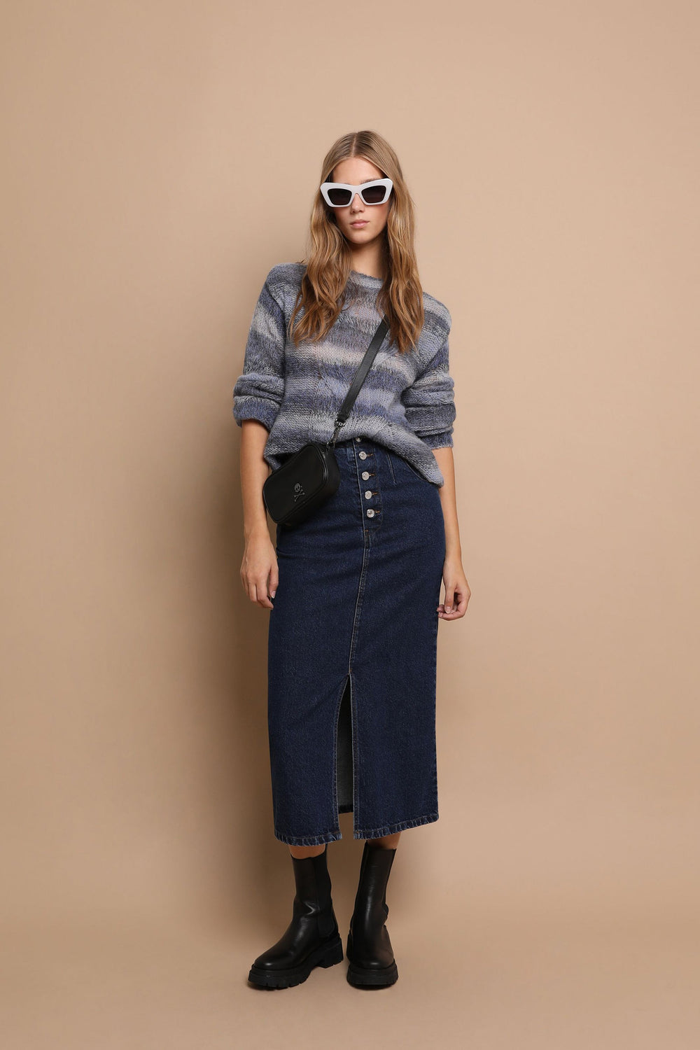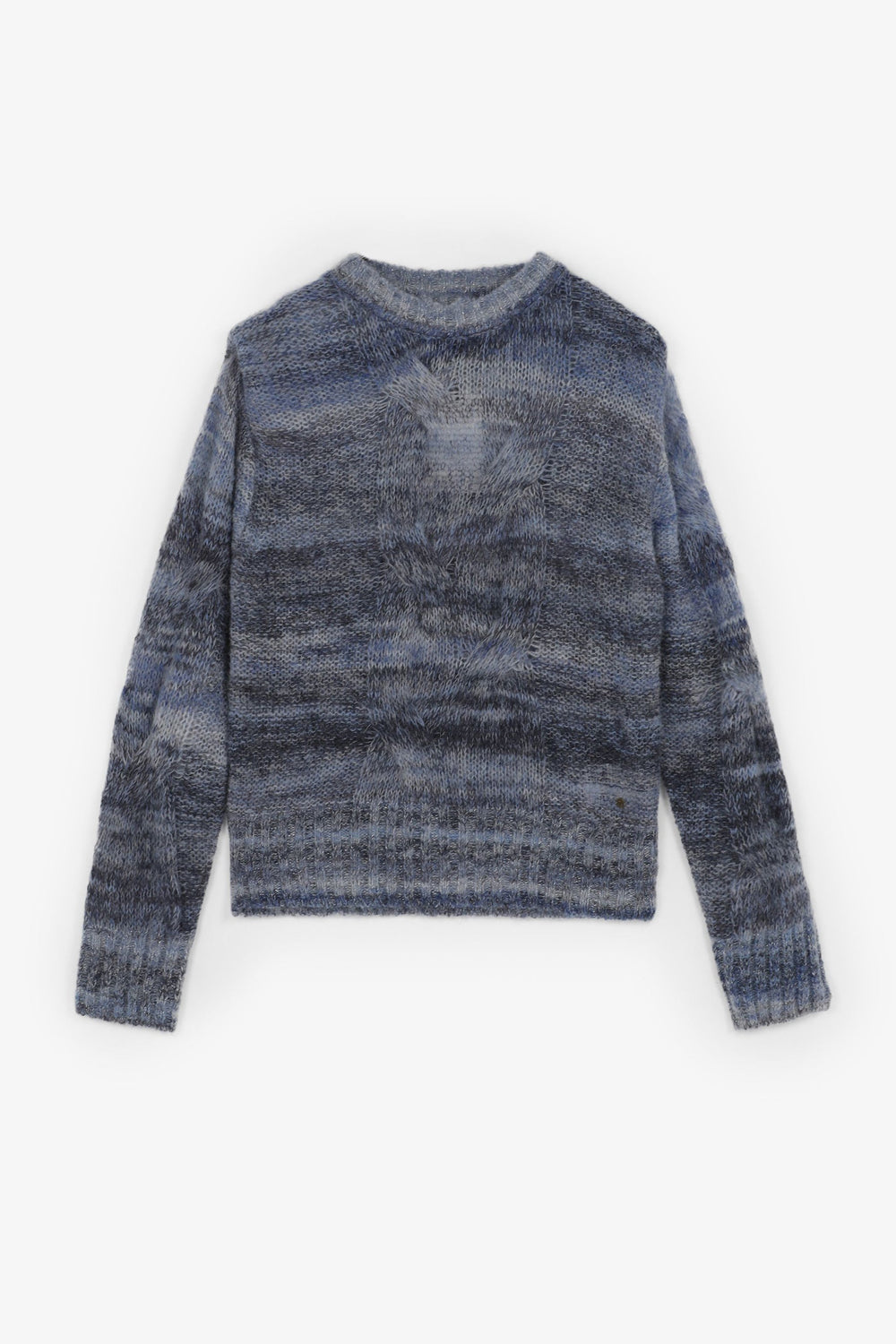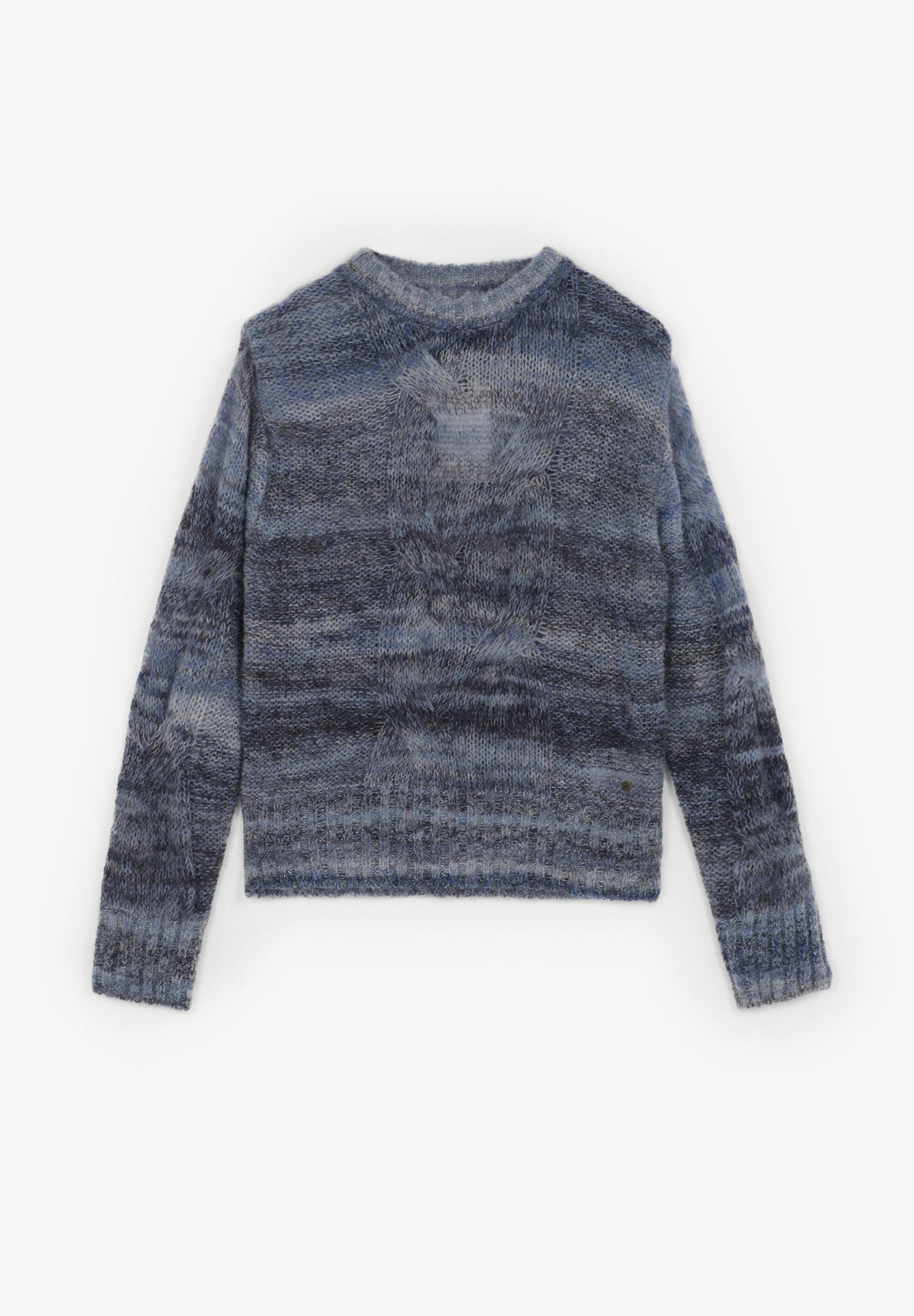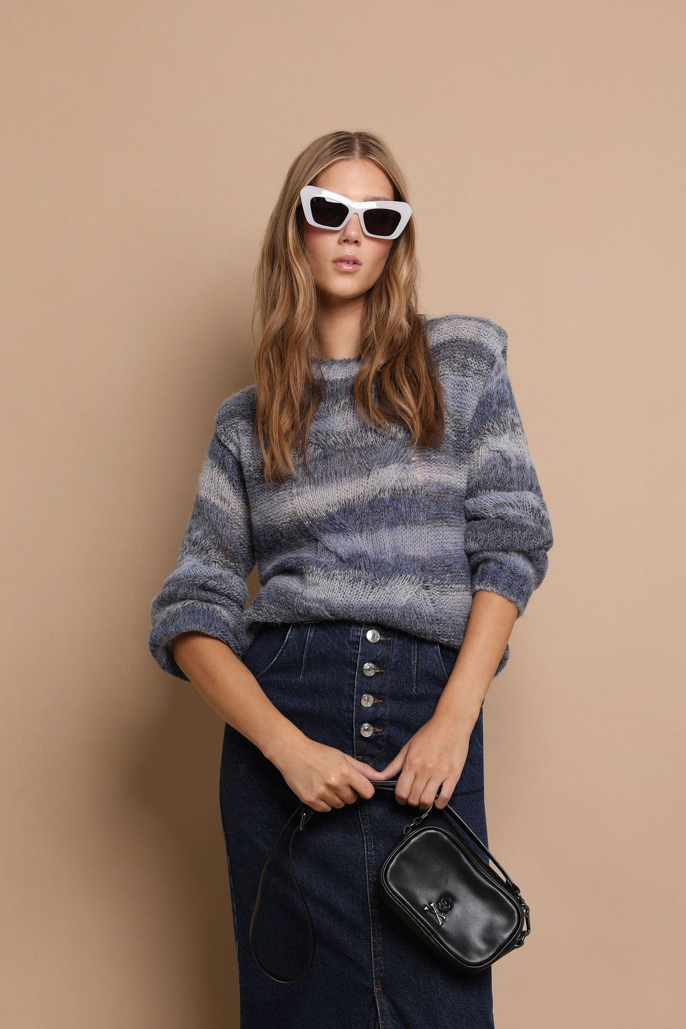 Sweater with detail on the shoulders made of wool and alpaca blend. Regular fit, round neck, shoulder pads and long cuffed sleeves.