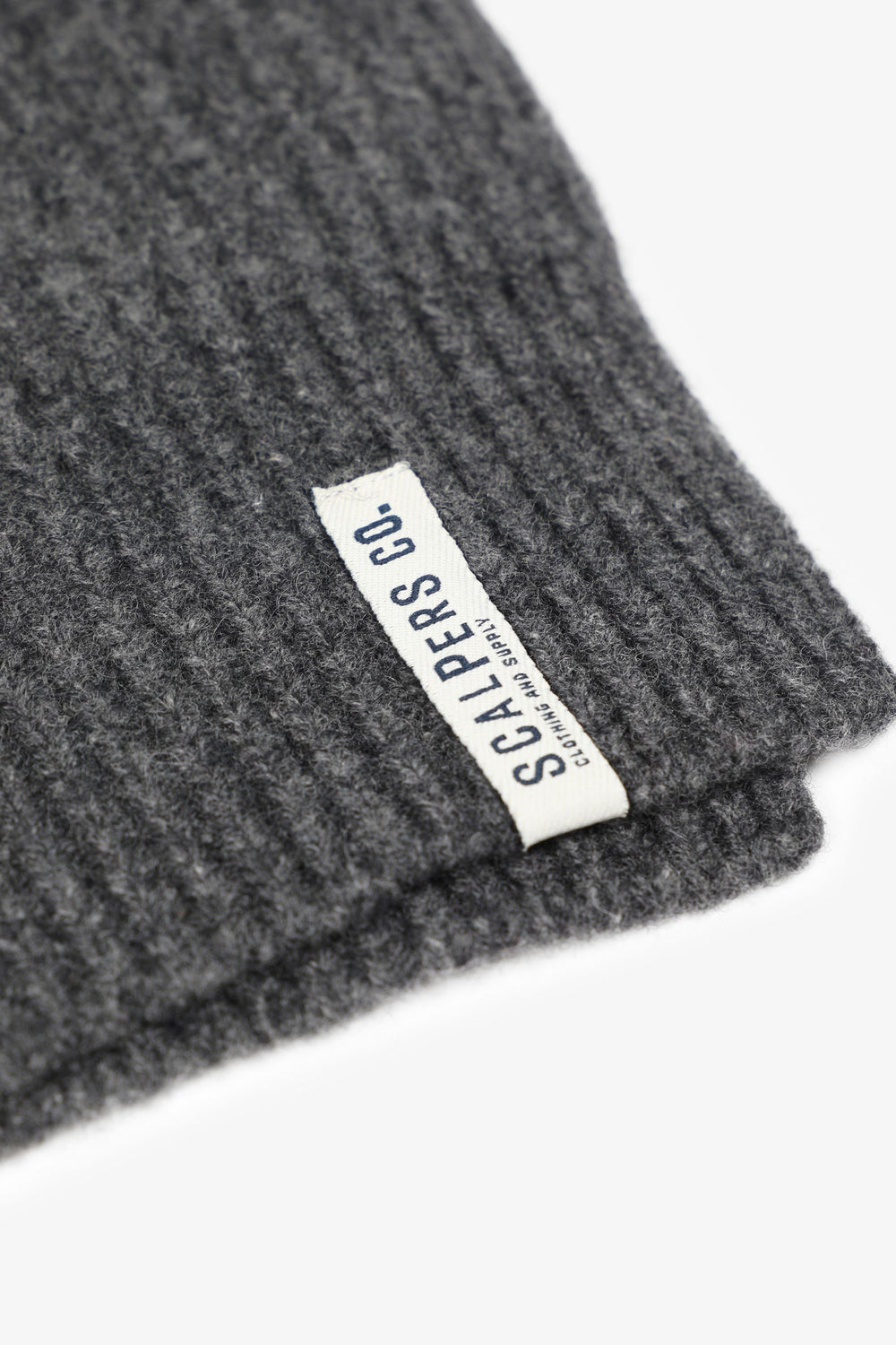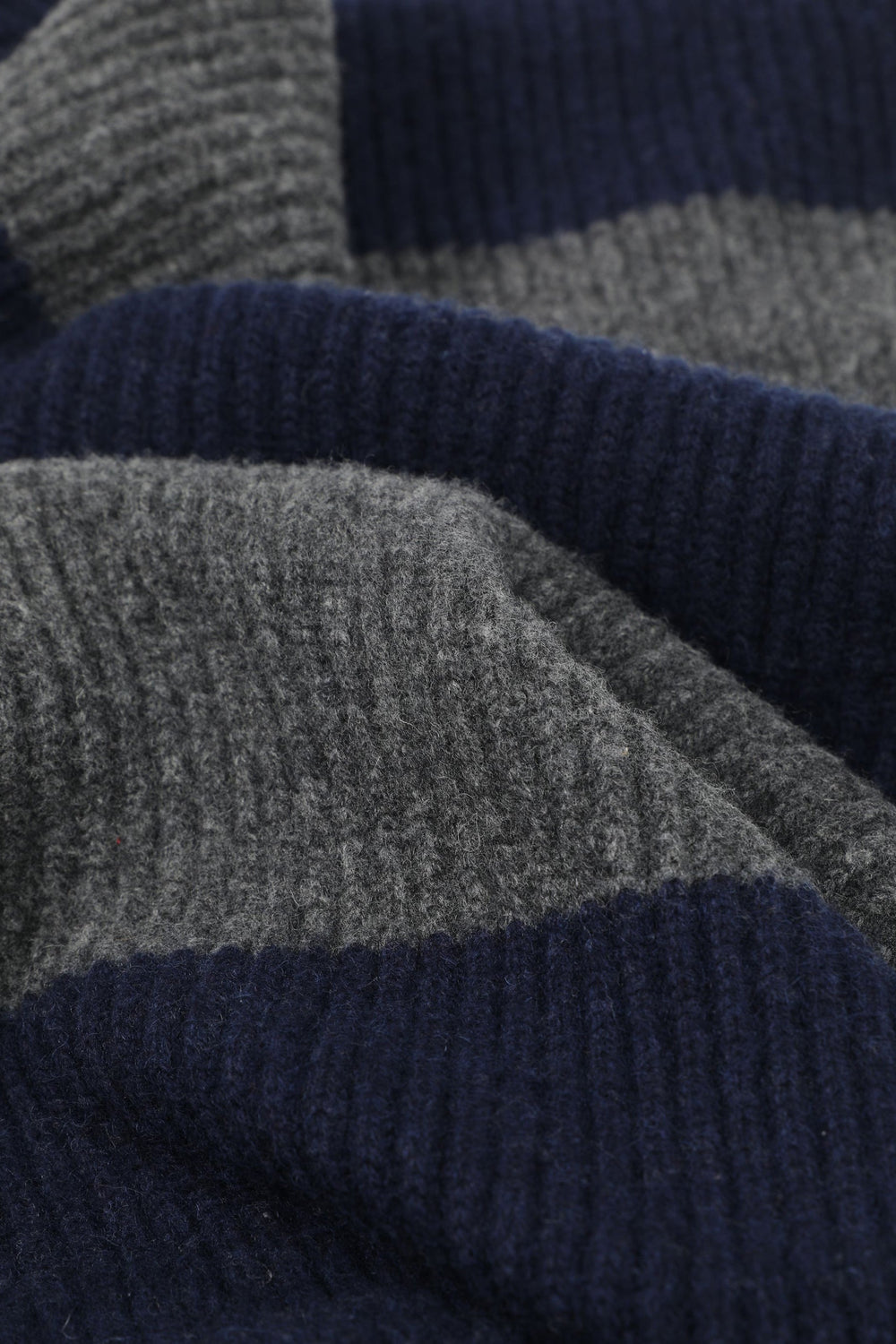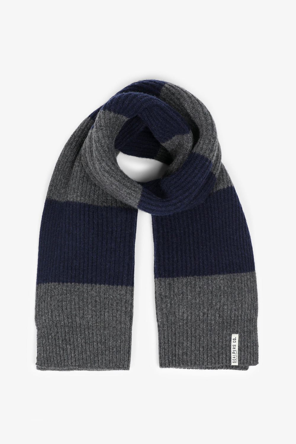 Striped knit scarf in wool blend. Label detail. Width: 40 cm / Height: 150 cm.