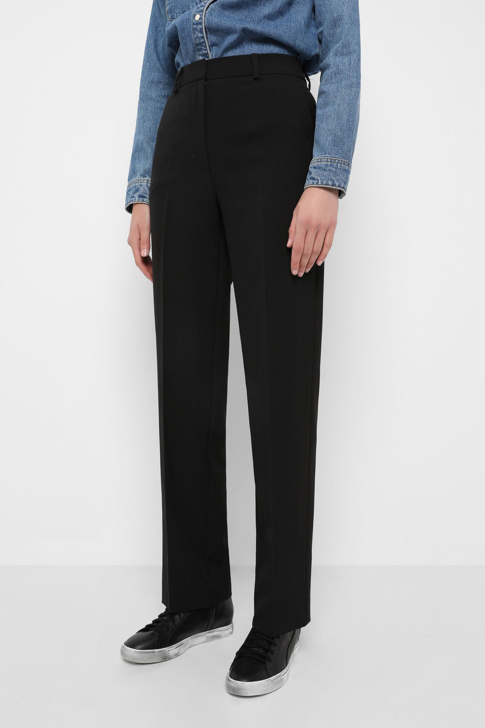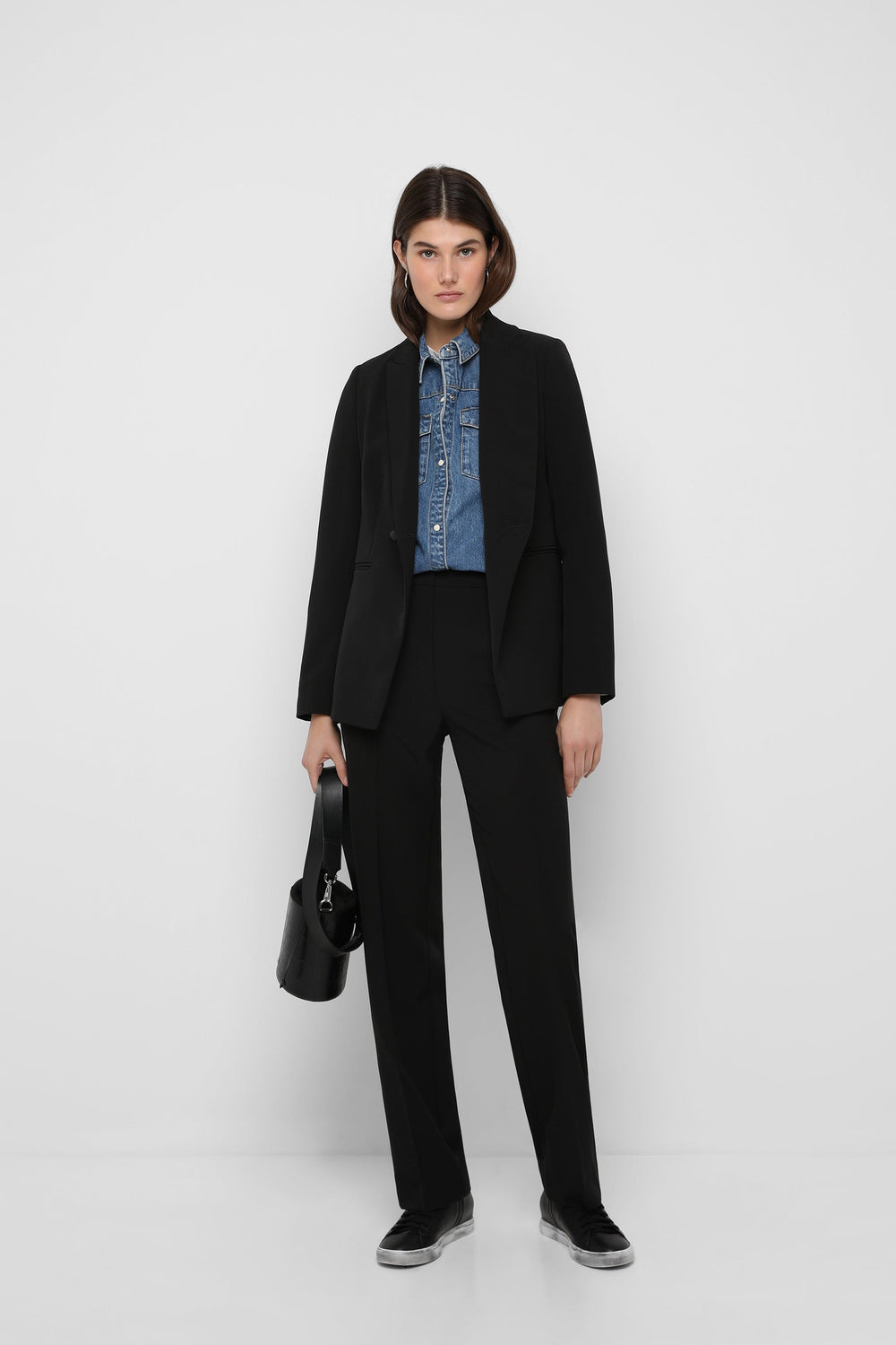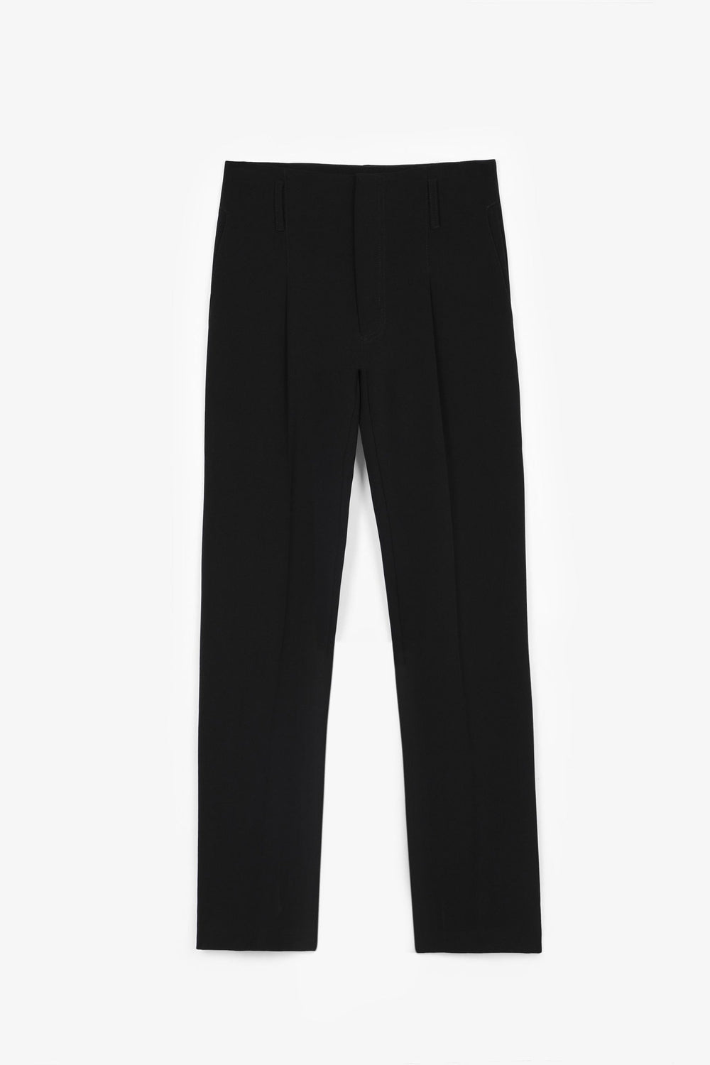 Straight-fit high-waist trousers. Zip and snap button fastening.