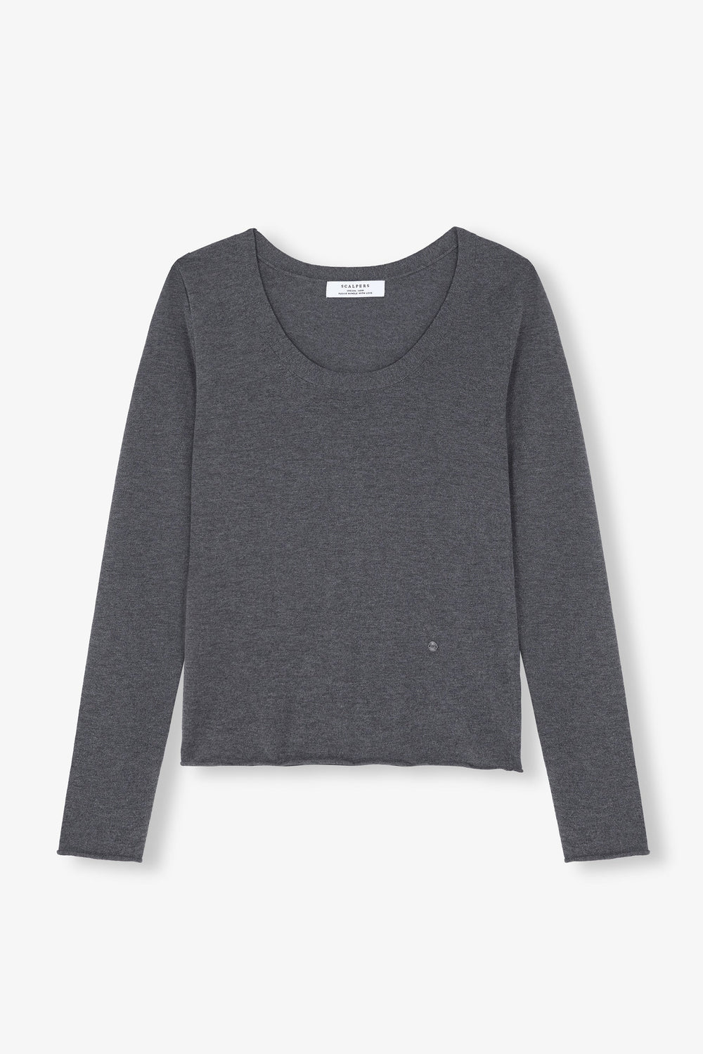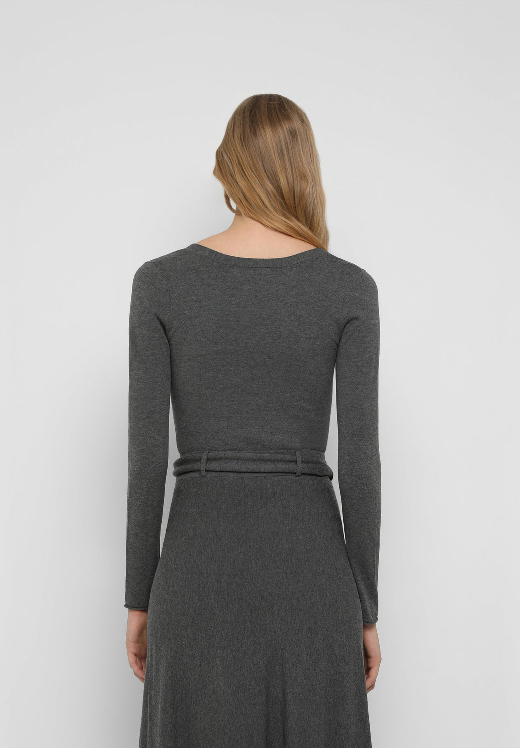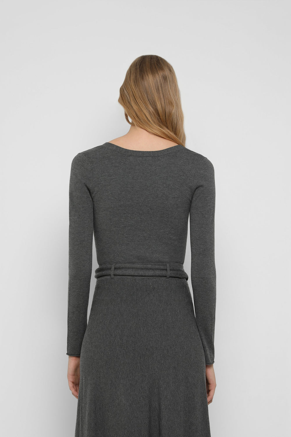 Double placement print knitted sweater. Slim fit. Round neck on one side and neckline on the other. Long sleeves. The jumper can be turned inside out and worn using both necklines.