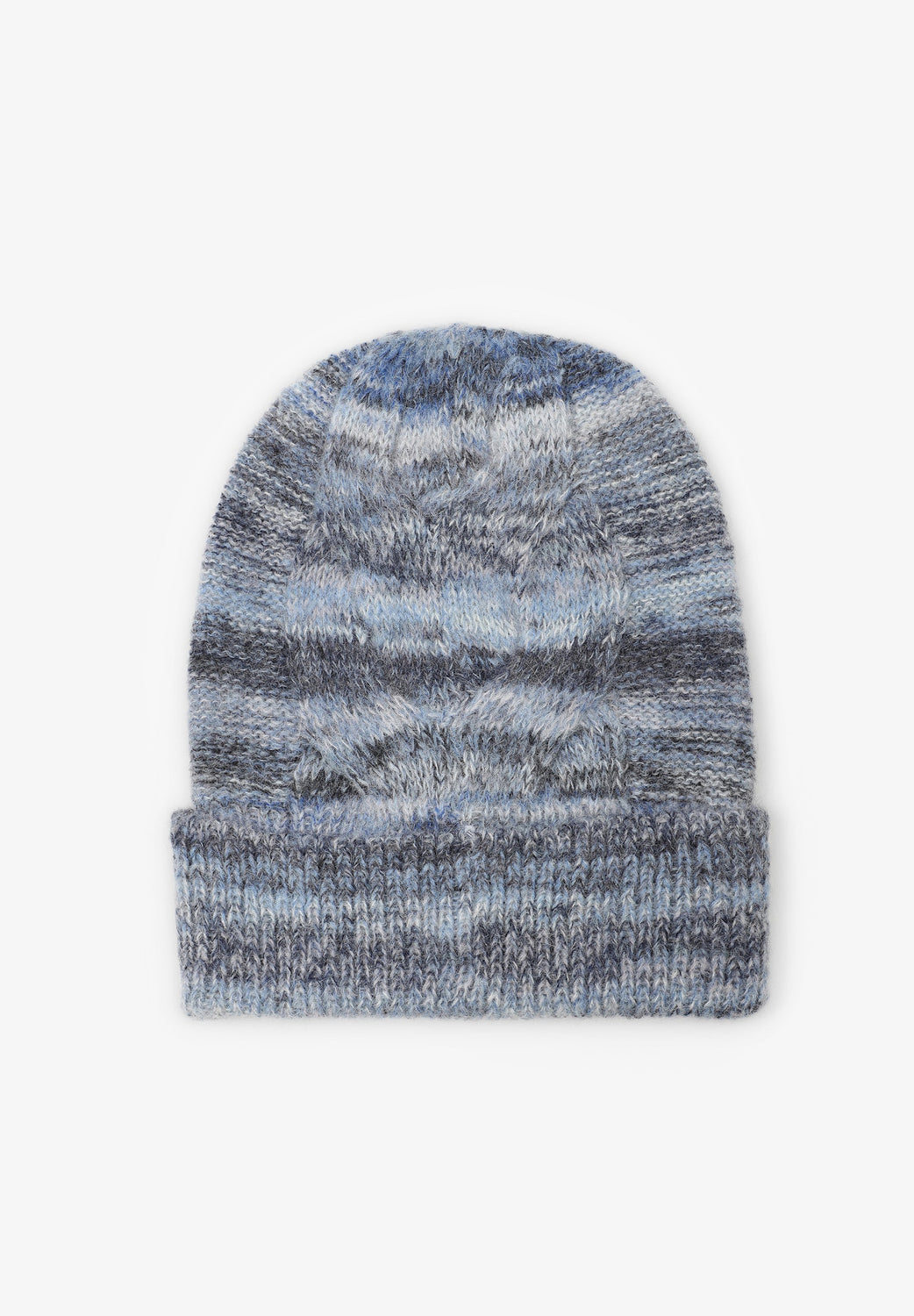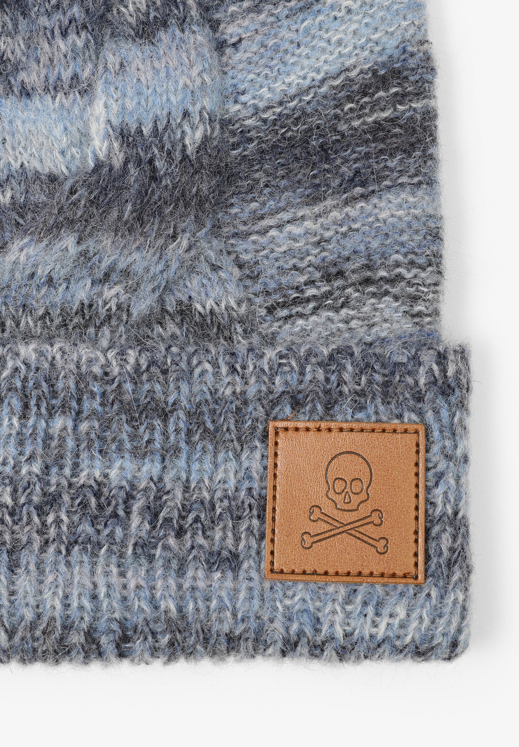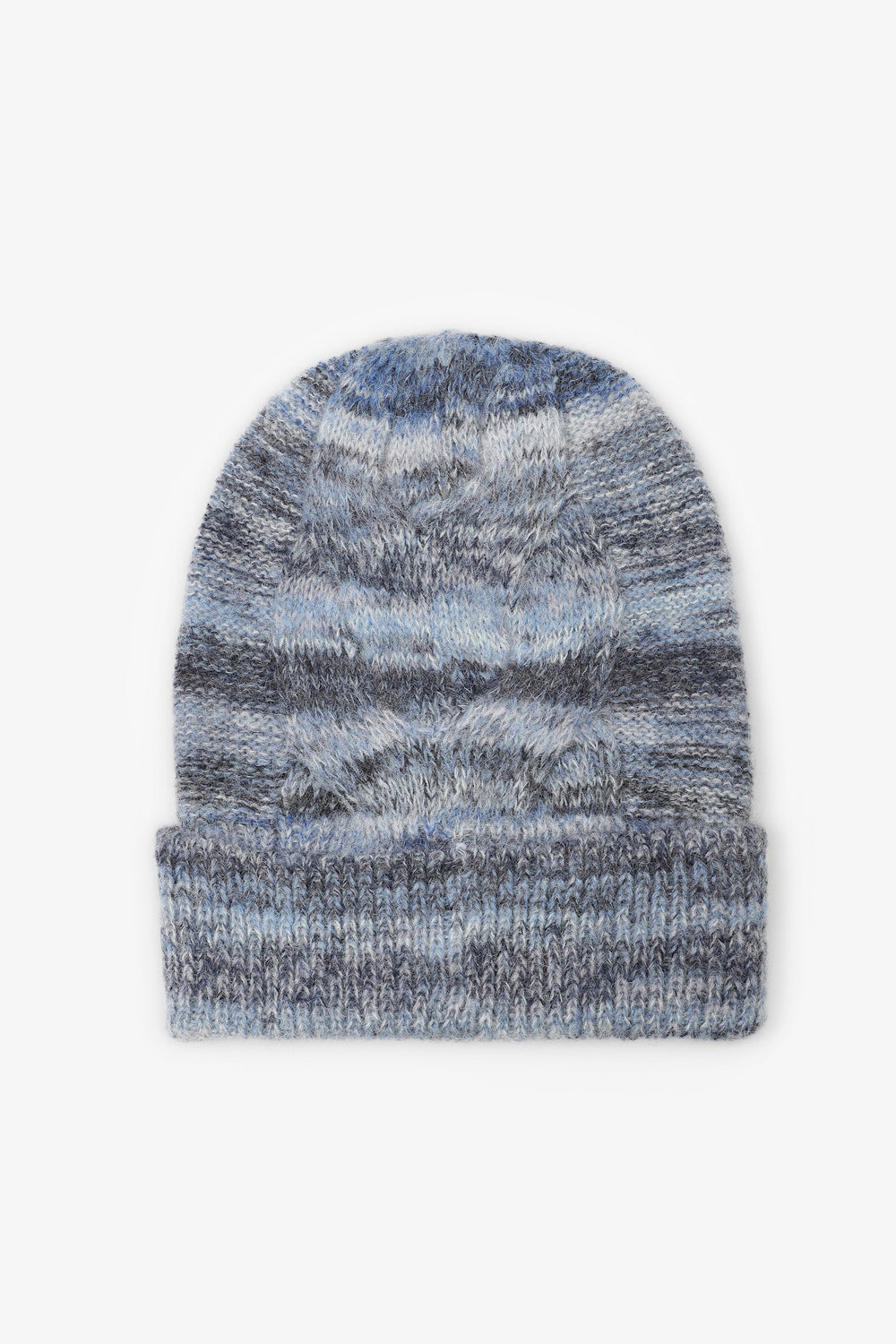 Striped knit hat in wool blend. Label detail. Height: 21 cm / Width: 20 cm.
