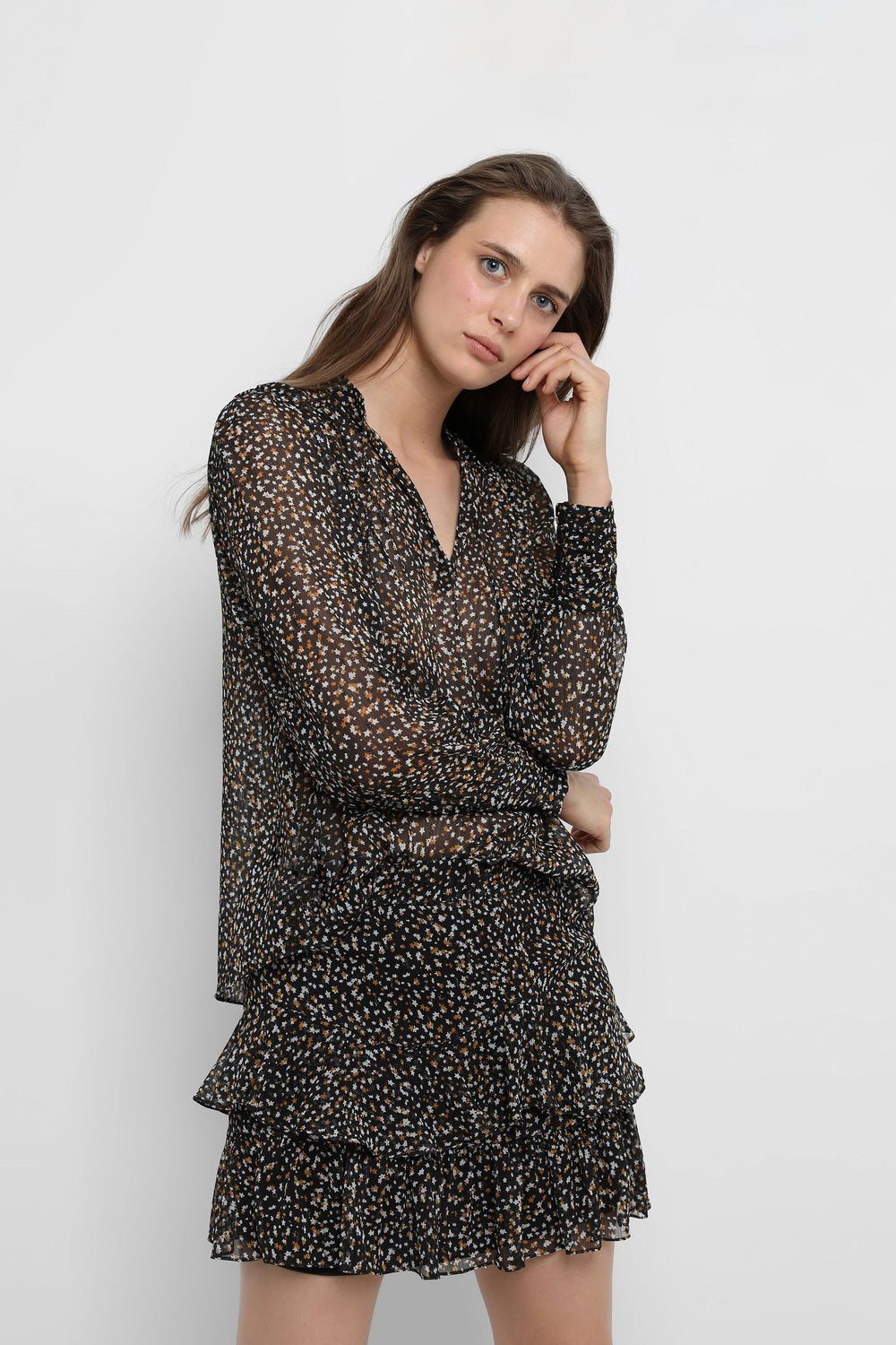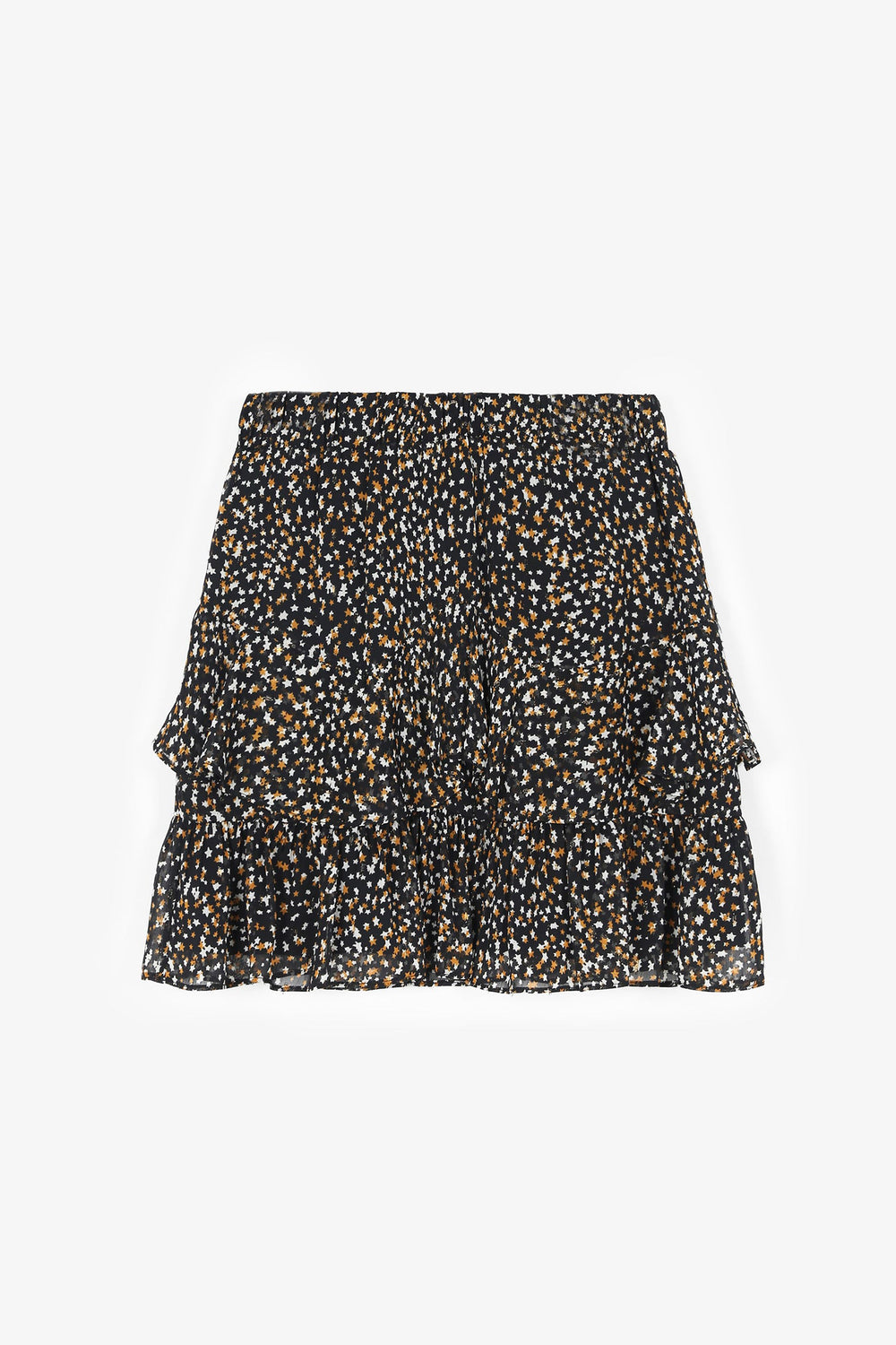 Mini skirt with star print. Slim fit, zip fastening and ruffle.