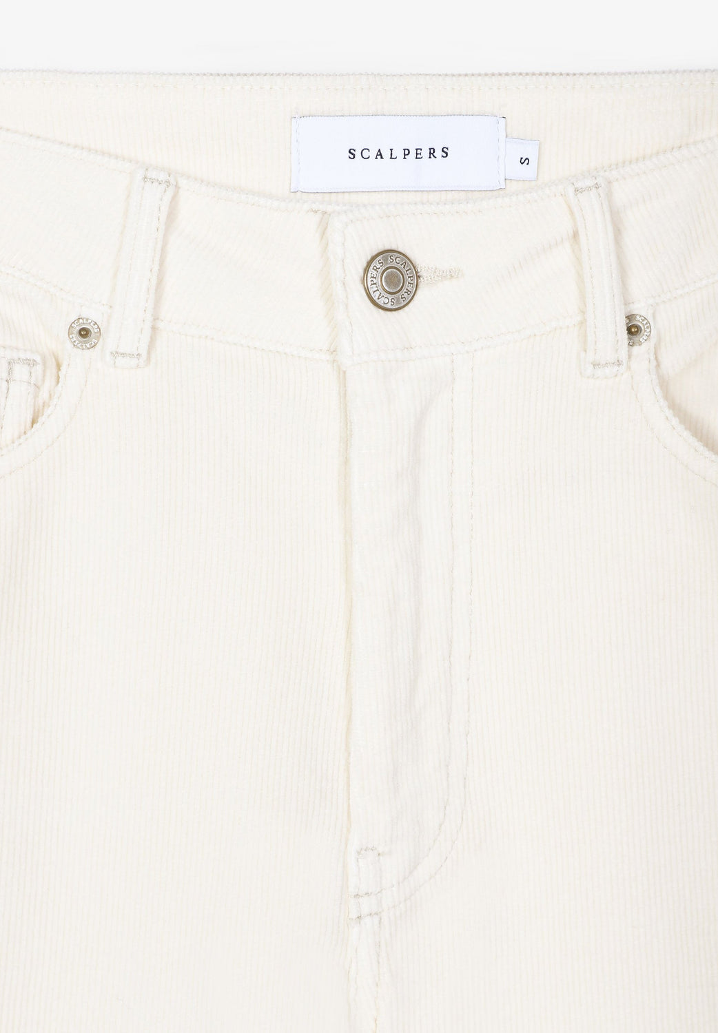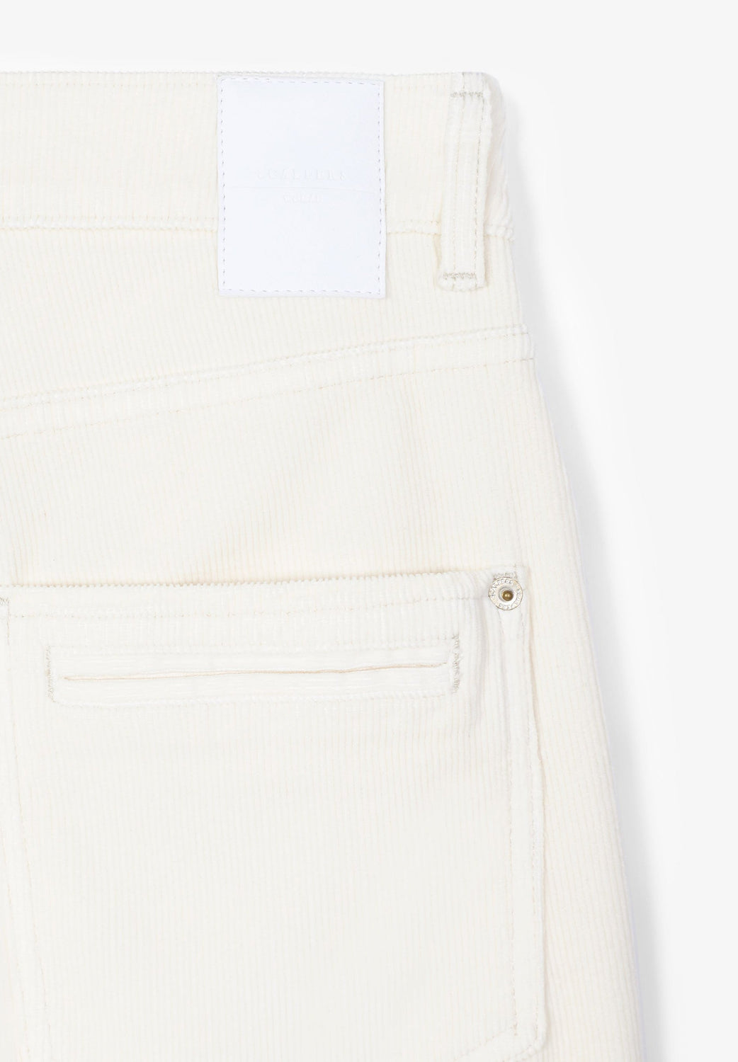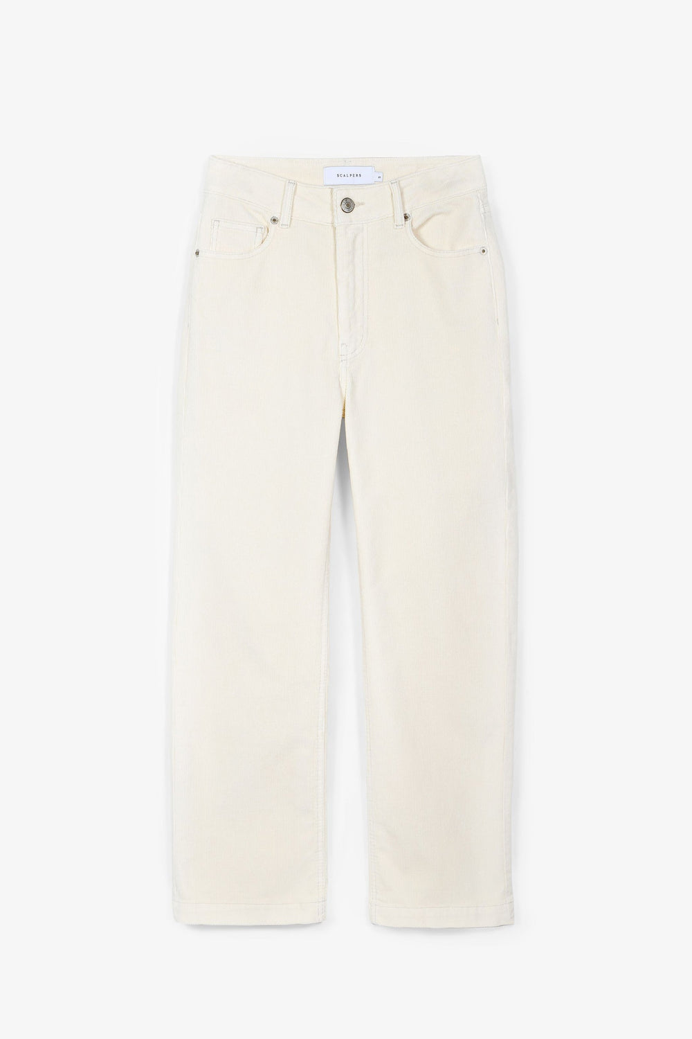 Corduroy trousers made of slightly stretch cotton fabric. Regular fit with high waist, zip and button fastening and side and back pockets. Belt loops at waist.