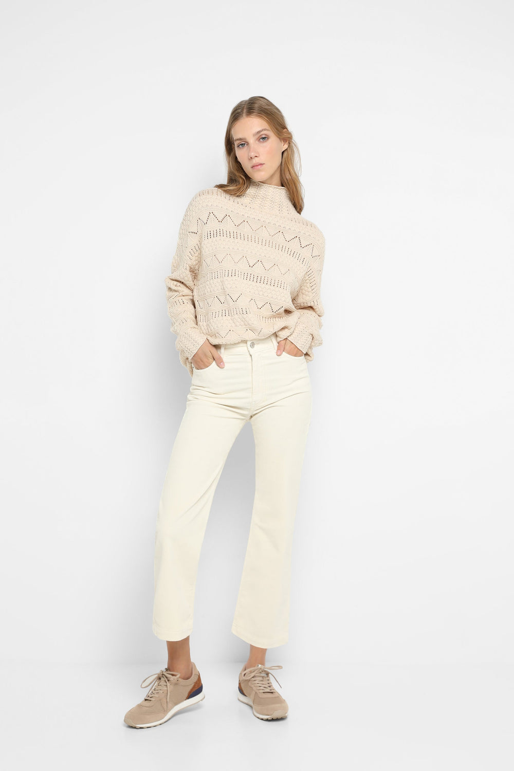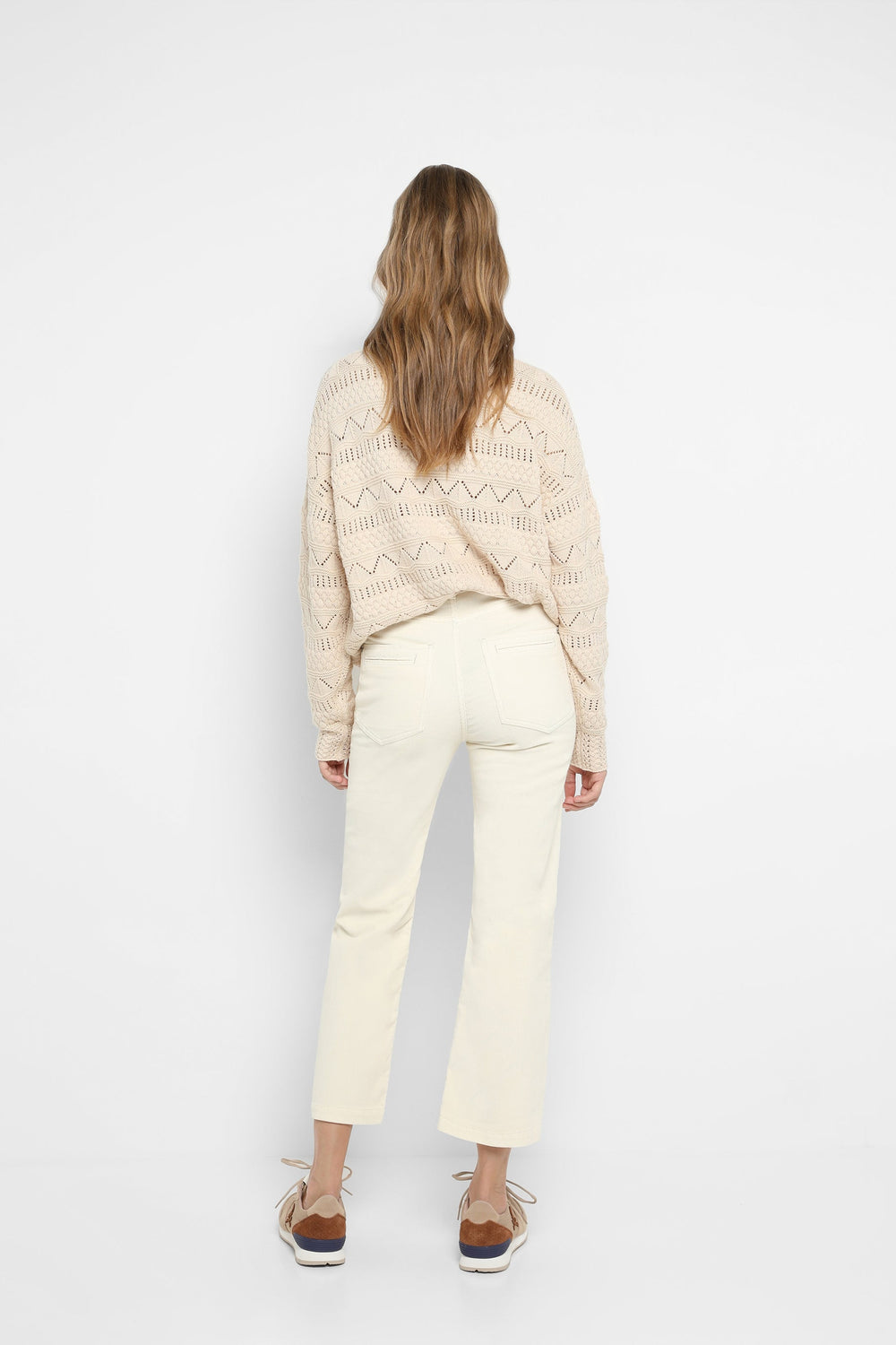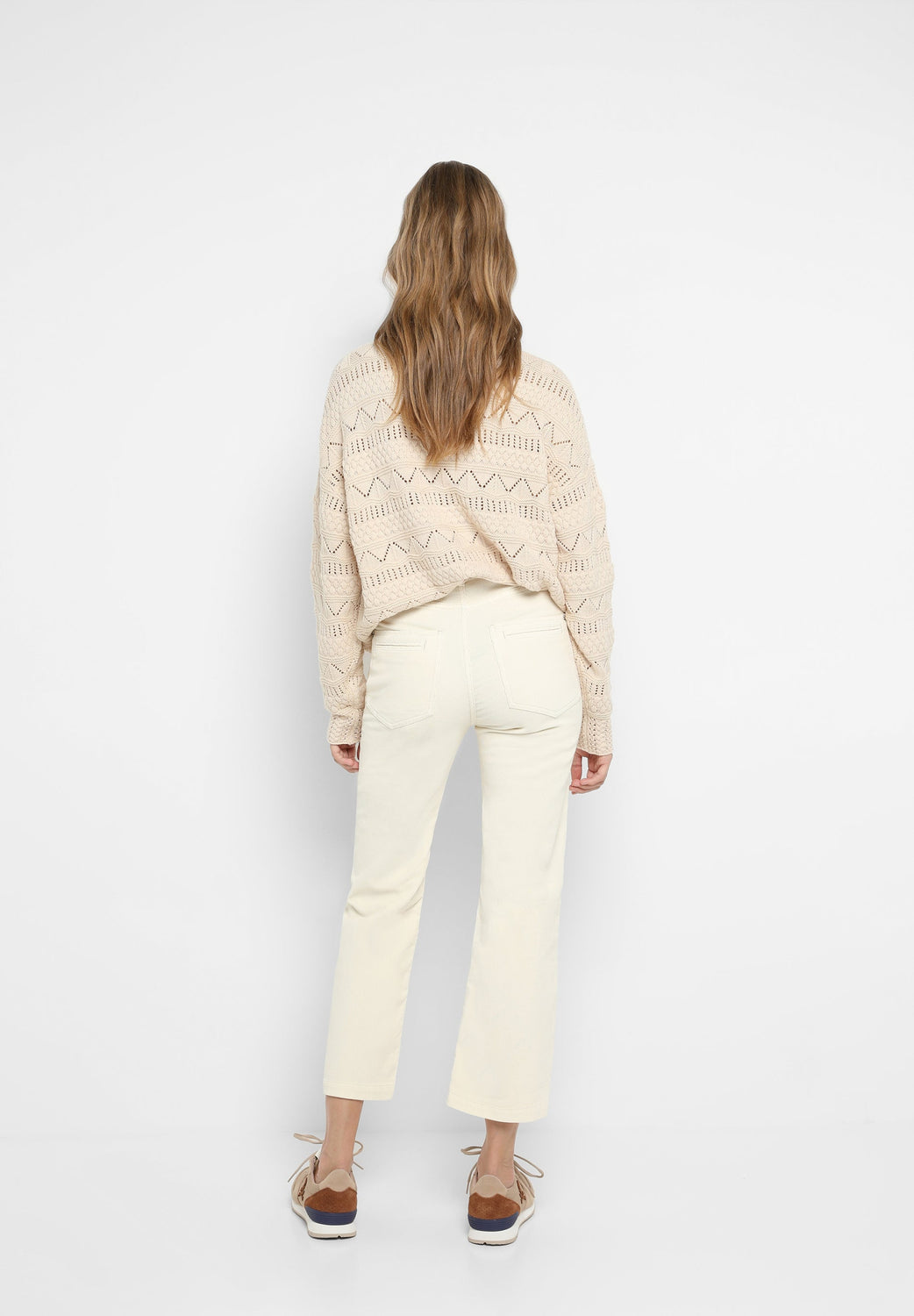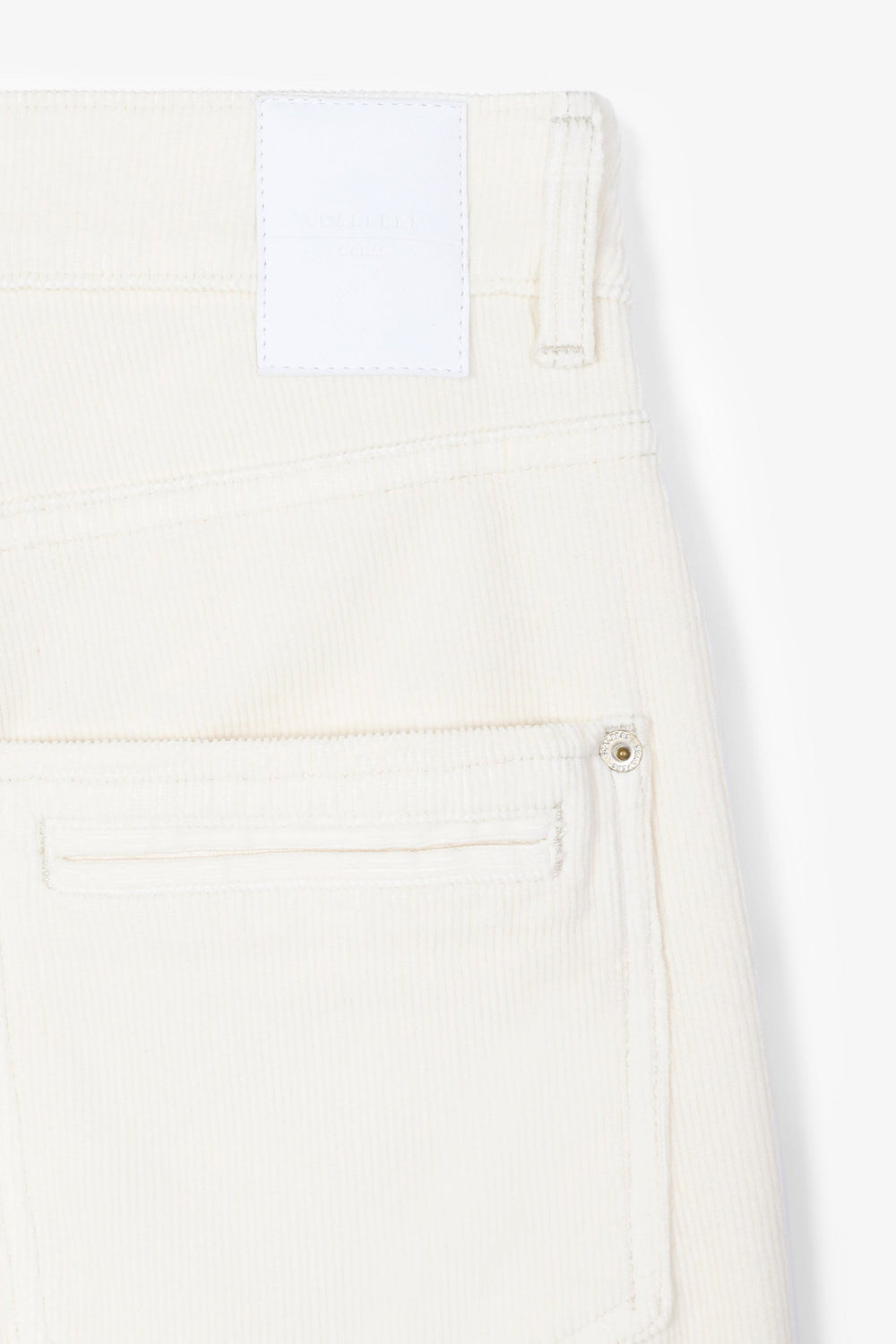 Corduroy trousers made of slightly stretch cotton fabric. Regular fit with high waist, zip and button fastening and side and back pockets. Belt loops at waist.