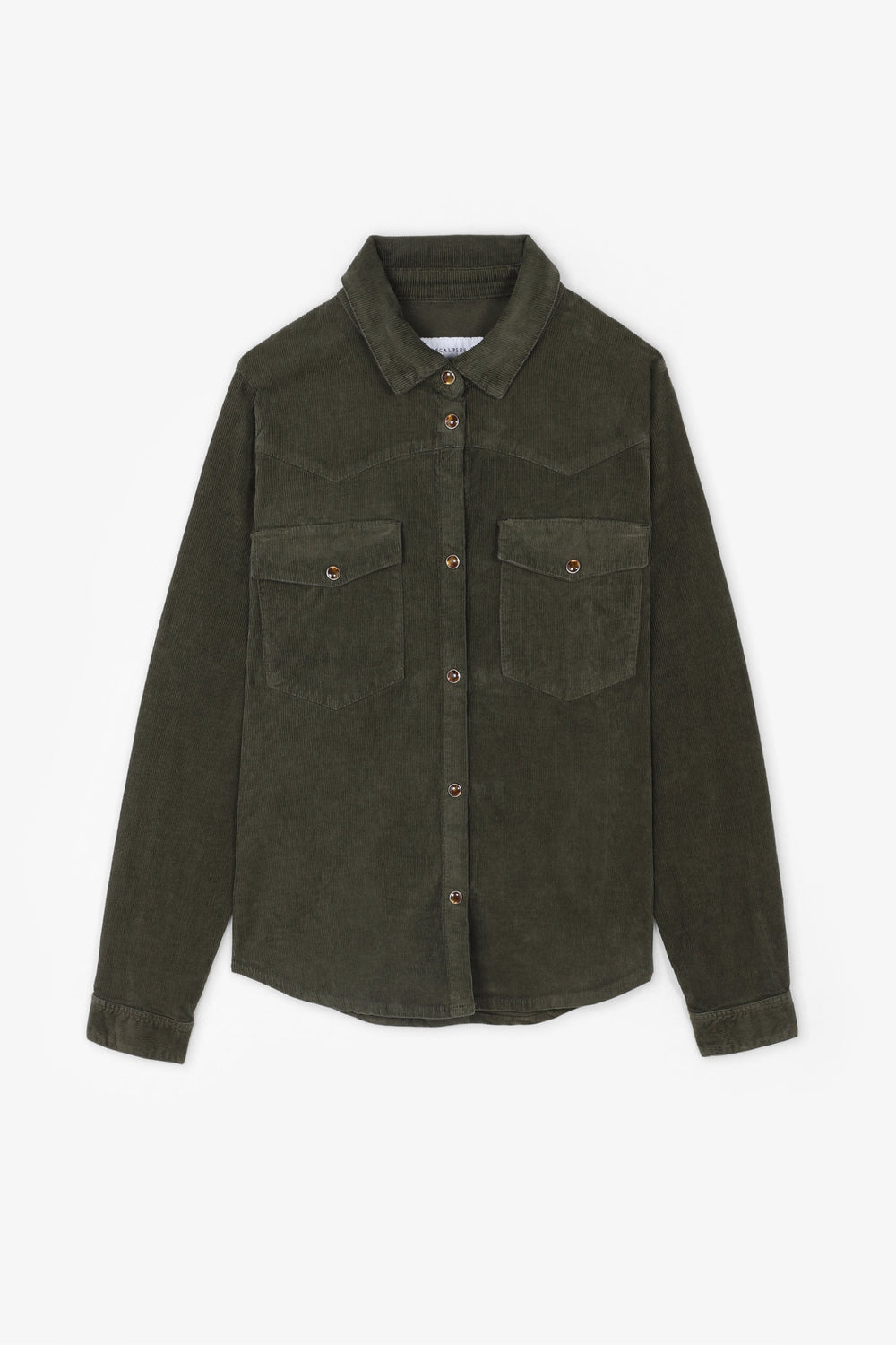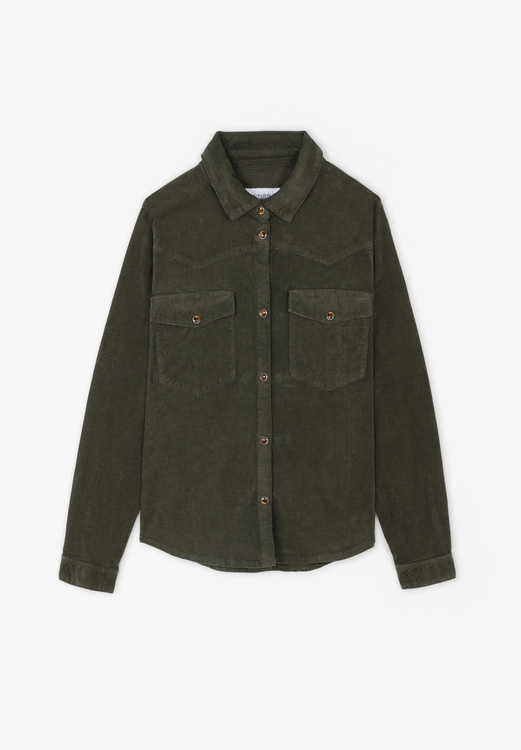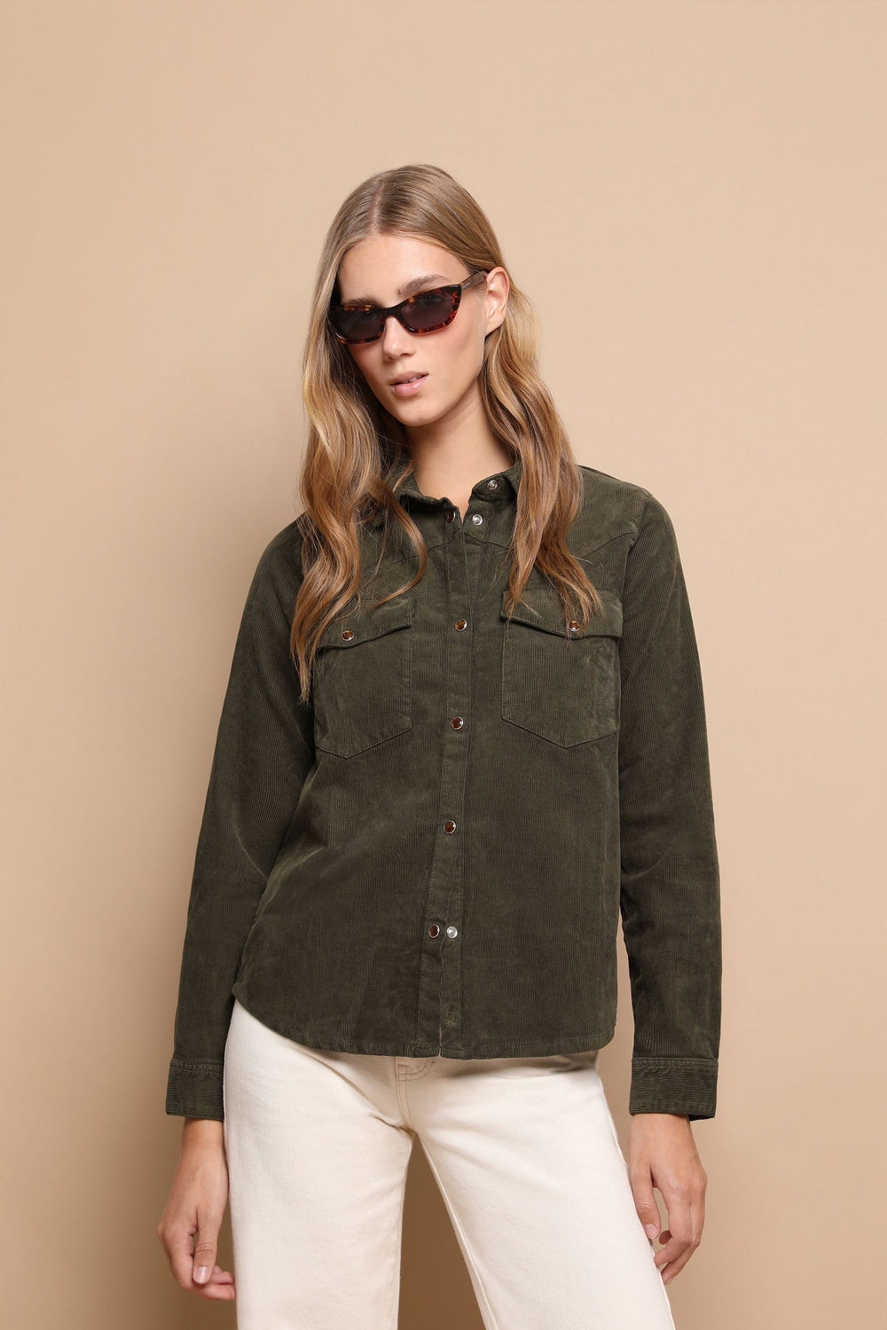 Corduroy shirt made of slightly stretch cotton fabric. Regular fit, classic collar and snap-button fastening. Long sleeves and flap pockets.