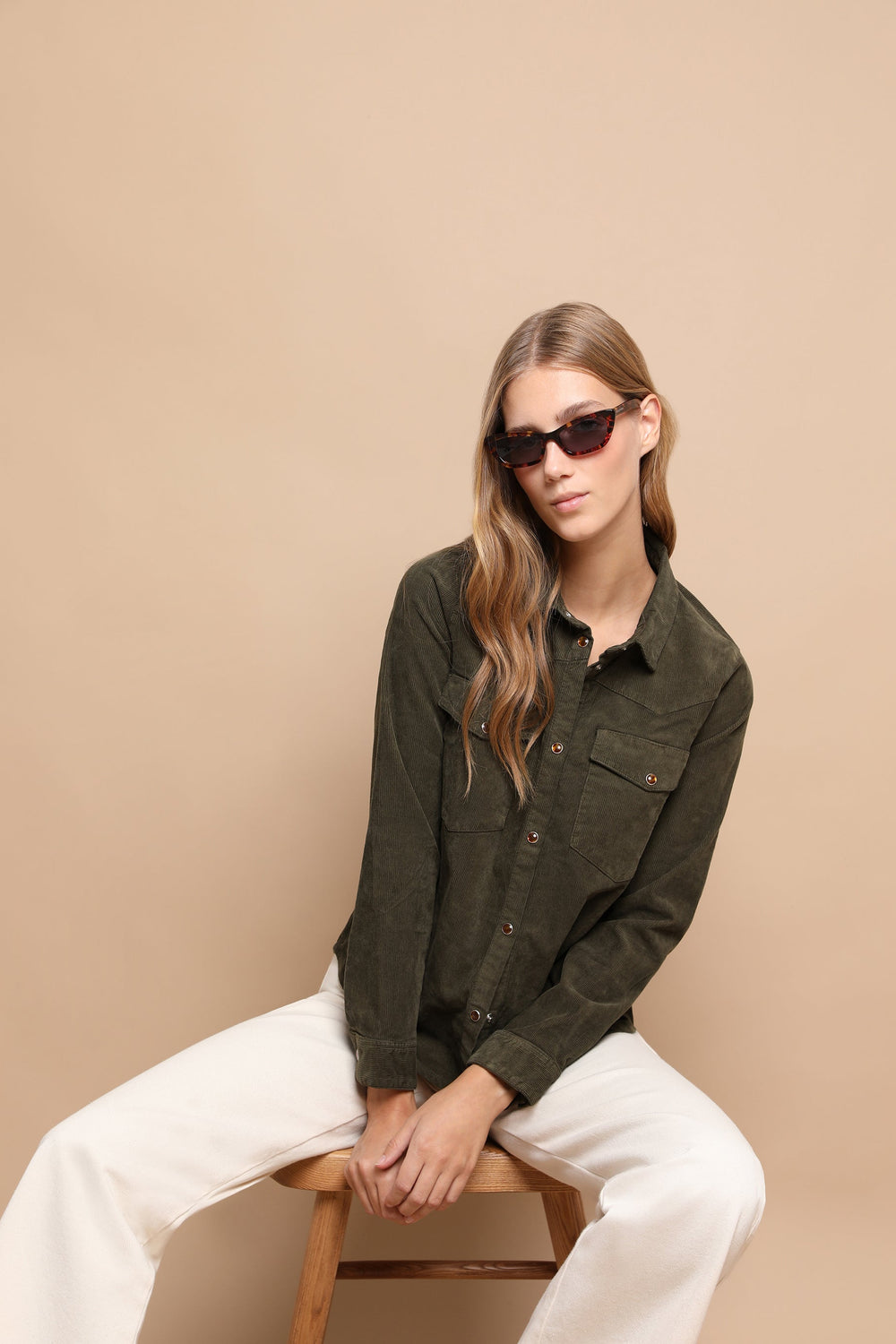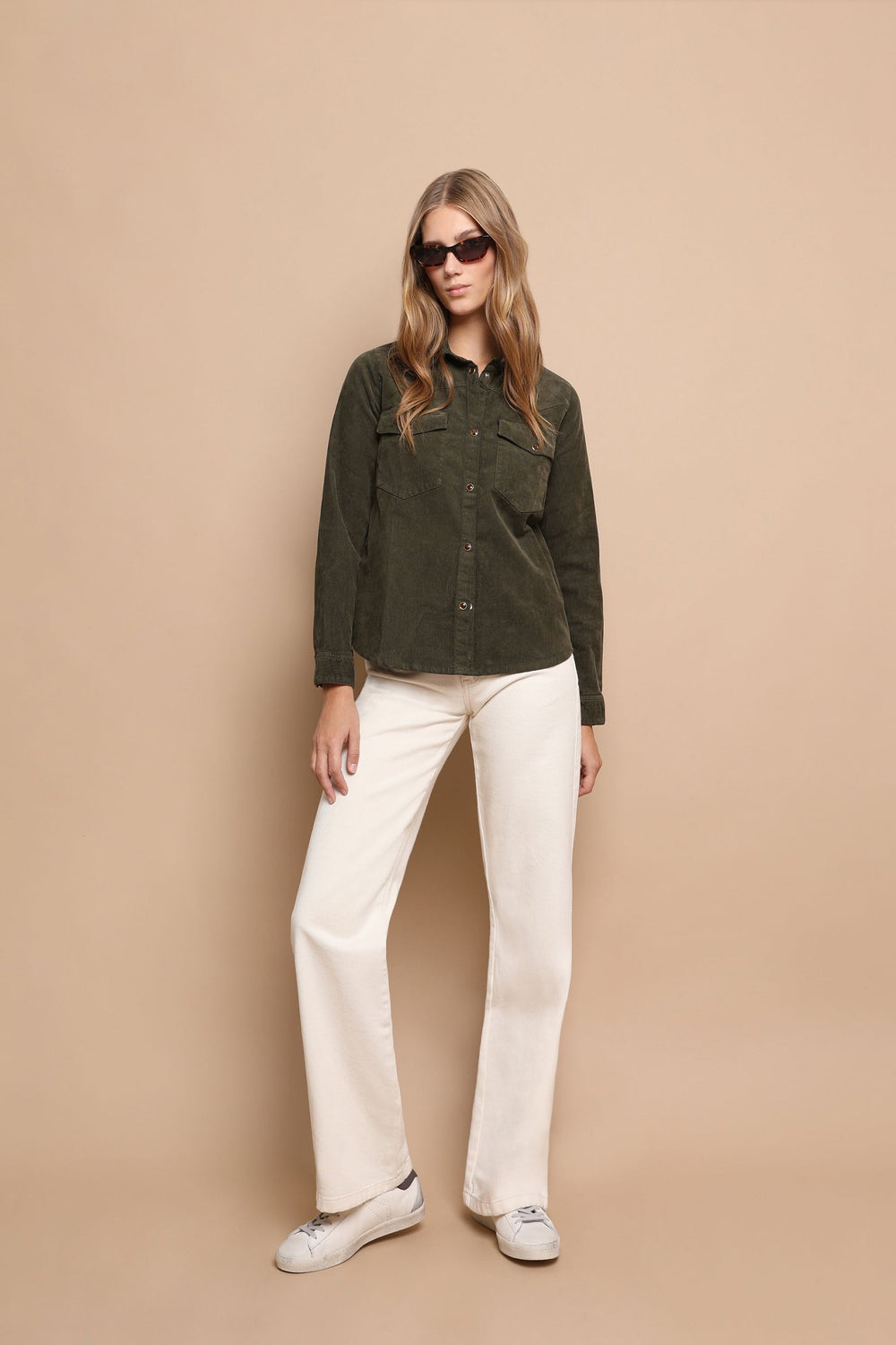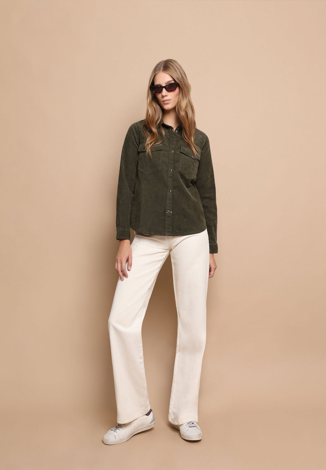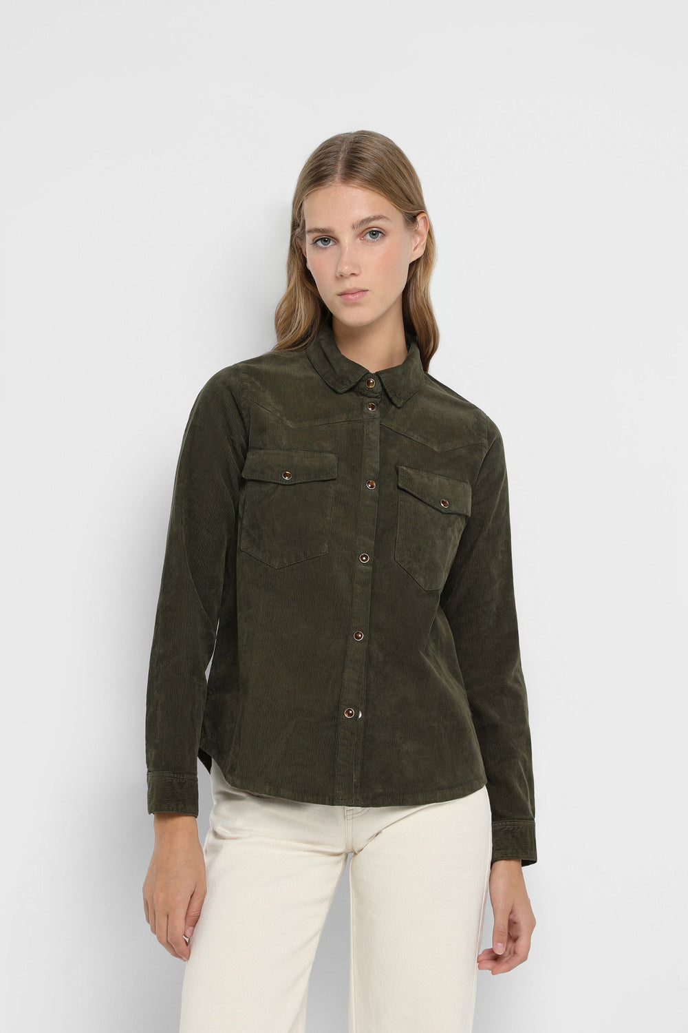 Corduroy shirt made of slightly stretch cotton fabric. Regular fit, classic collar and snap-button fastening. Long sleeves and flap pockets.