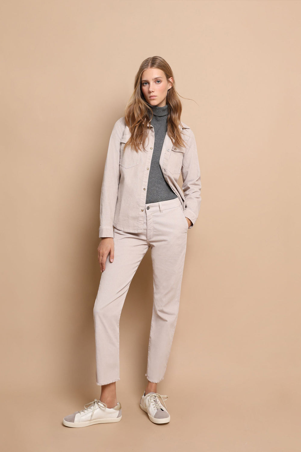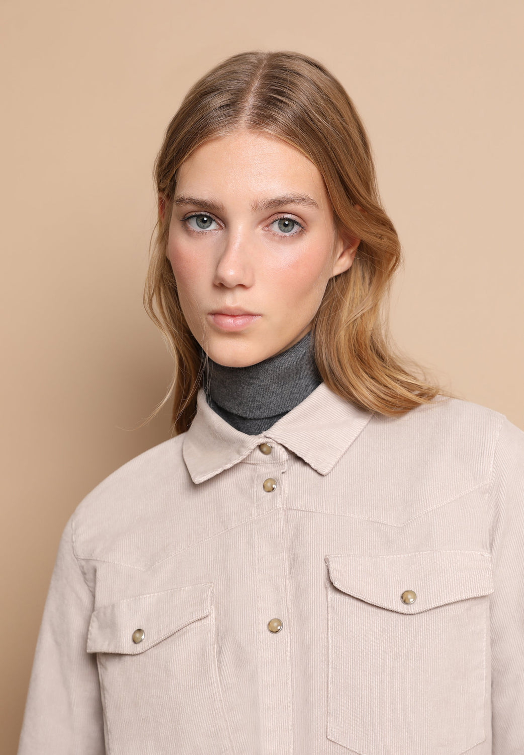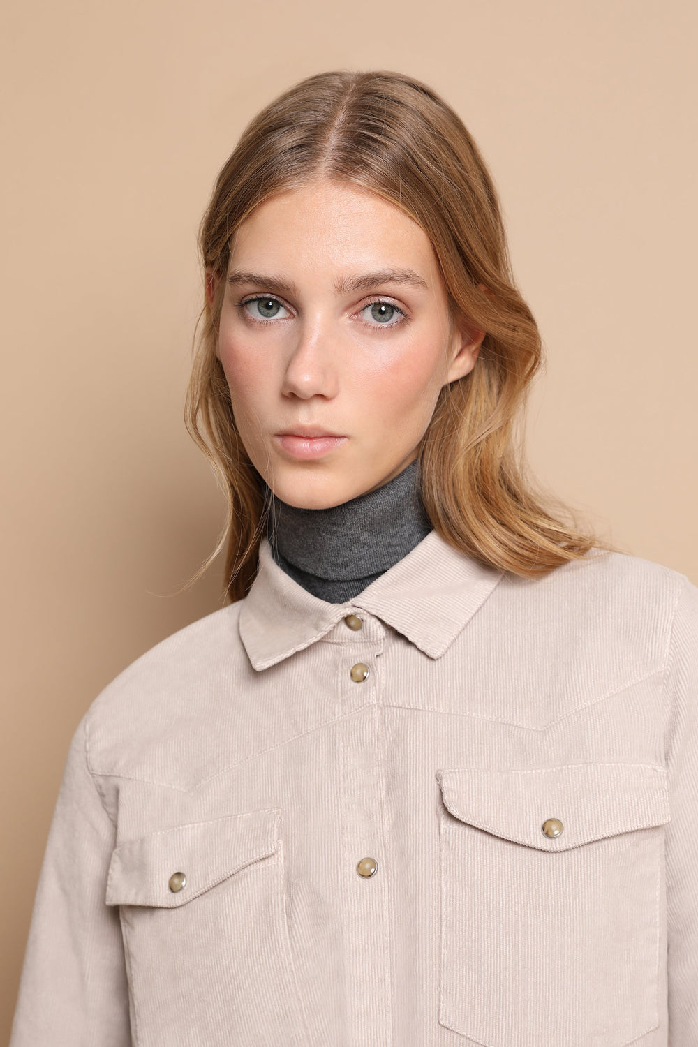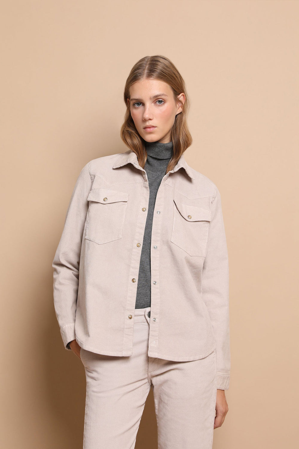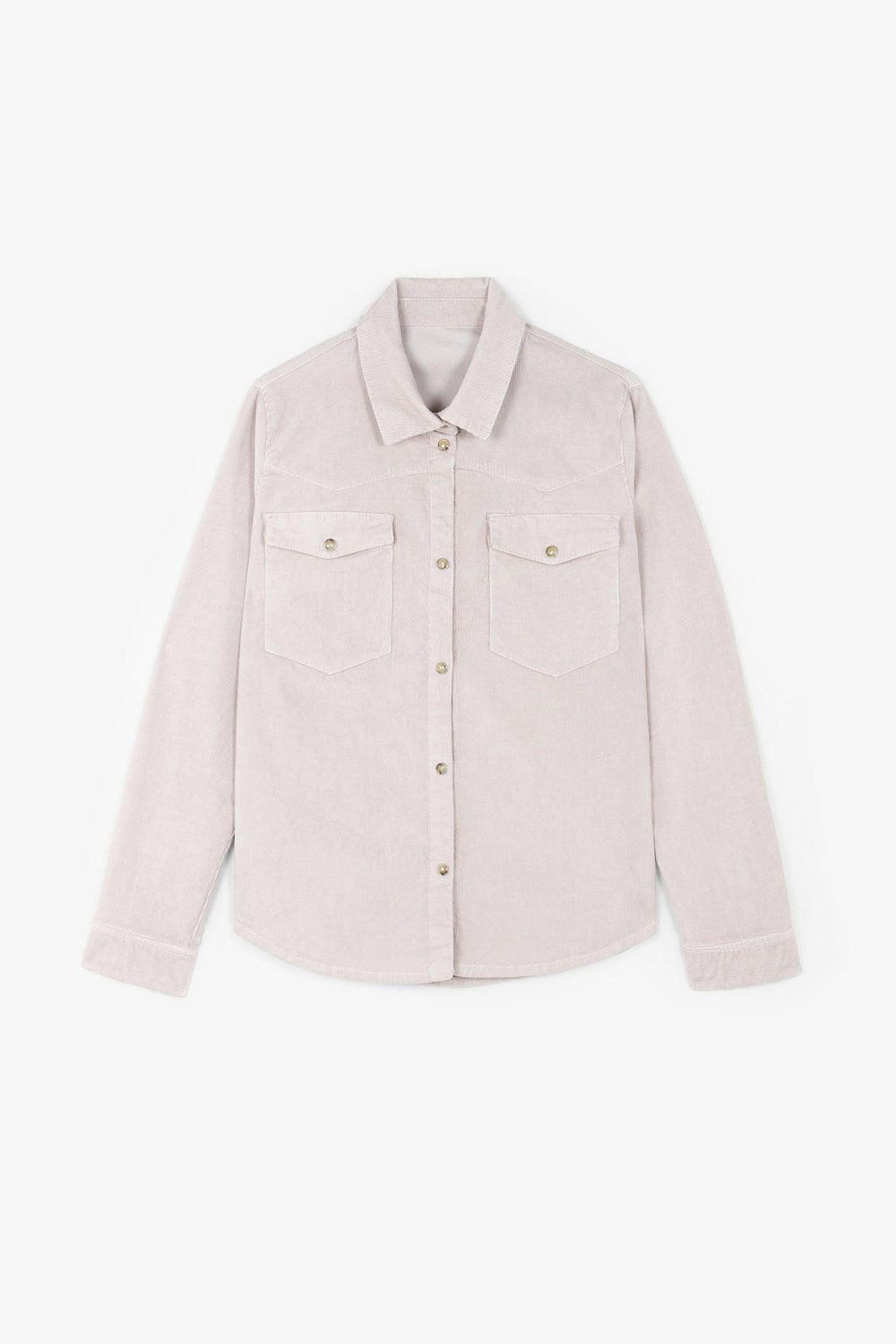 Corduroy shirt made of slightly stretch cotton fabric. Regular fit, classic collar and snap-button fastening. Long sleeves and flap pockets.