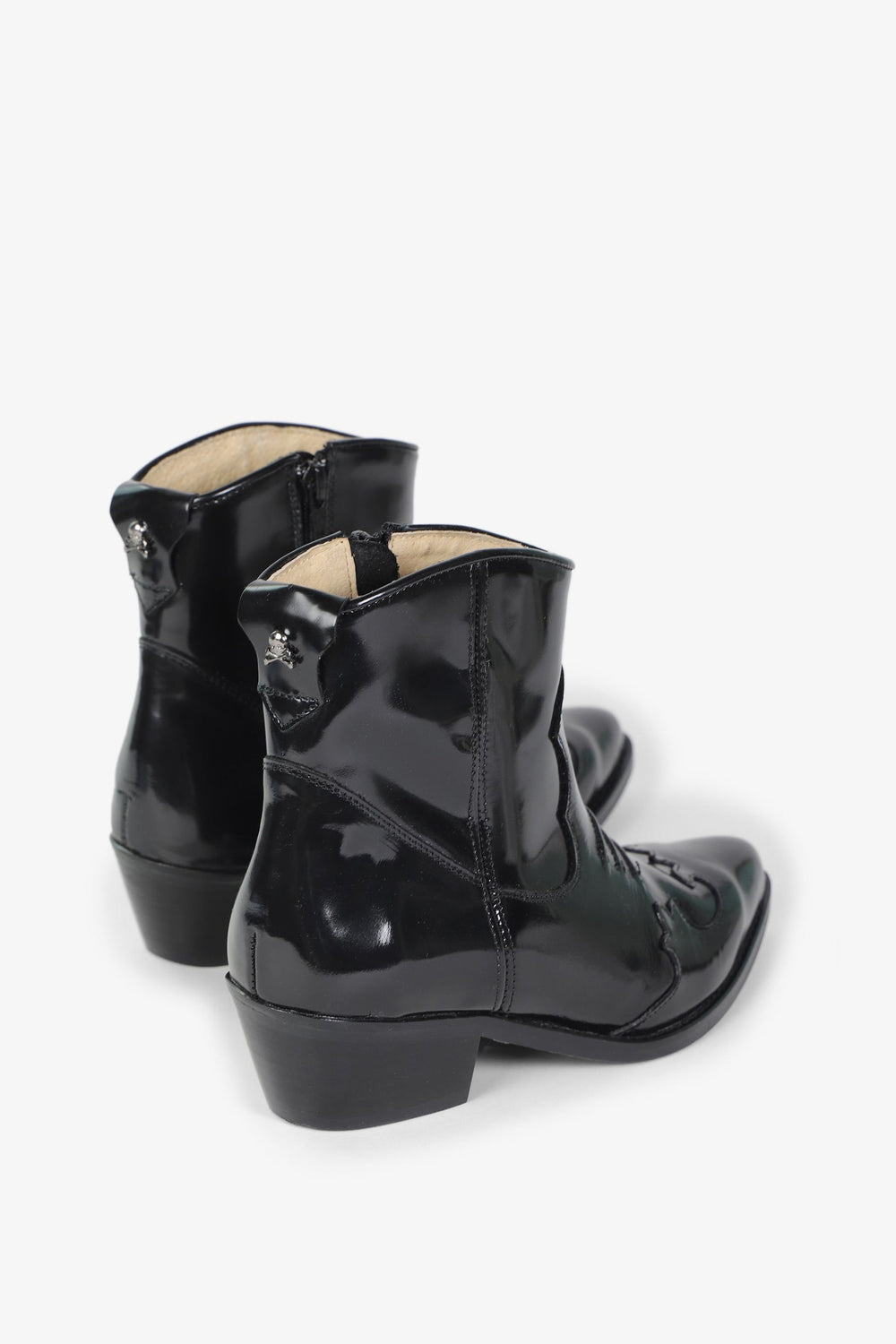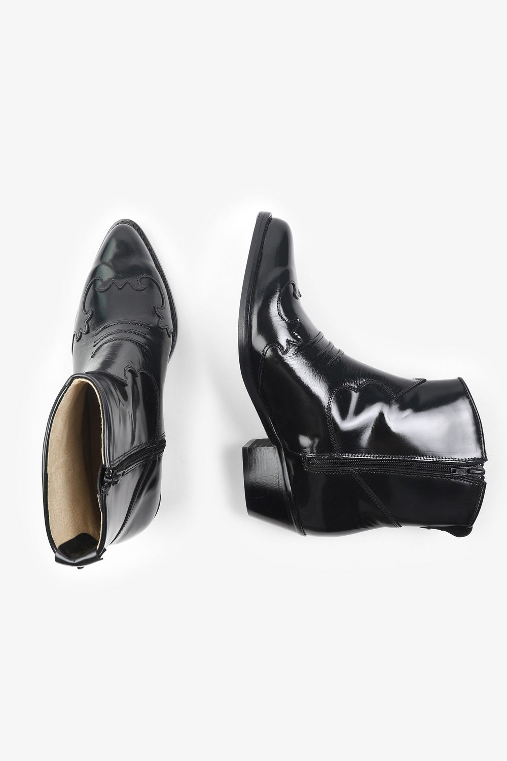 100% leather cowboy ankle boots. Low top and side zip fastening.