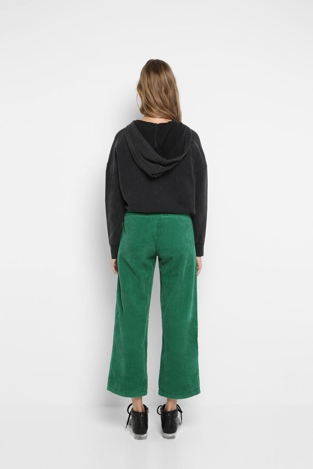 Corduroy trousers made from 100% cotton. Flared cut, high waist and side zip and snap button fastening.