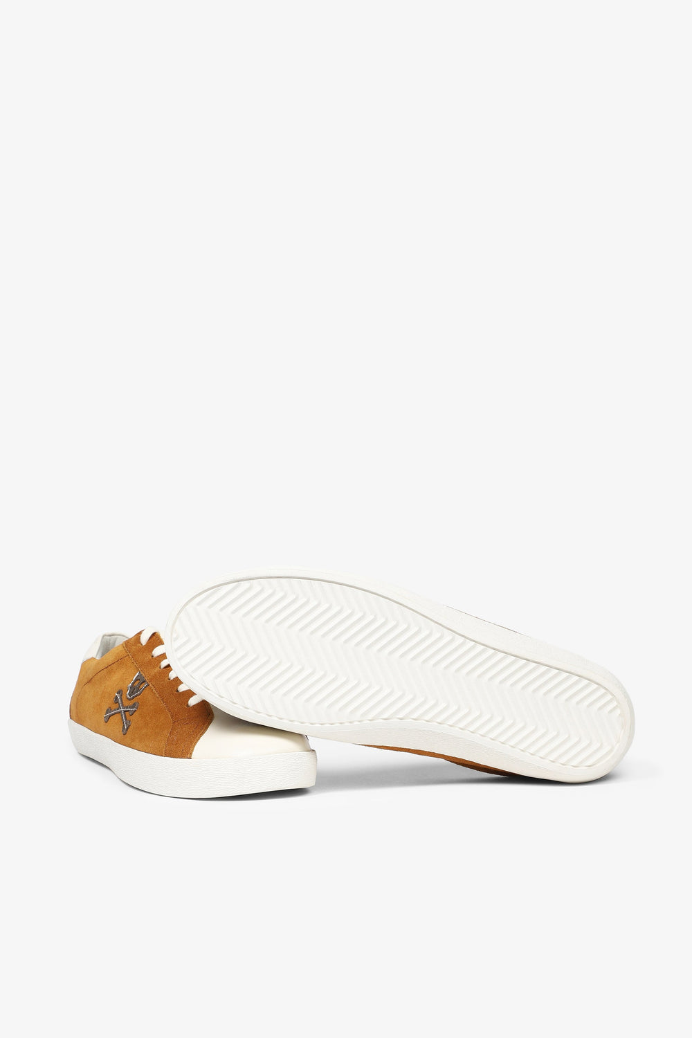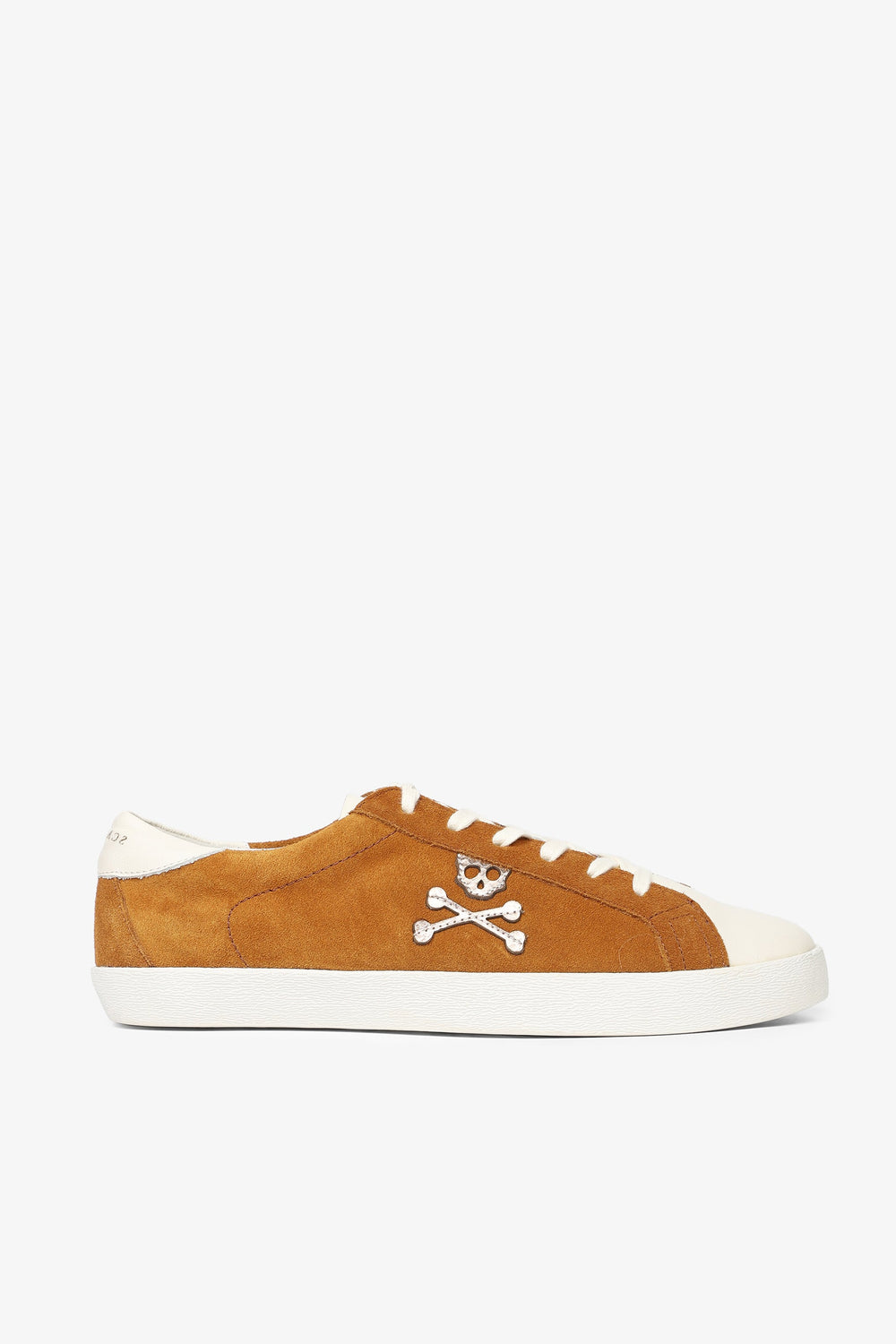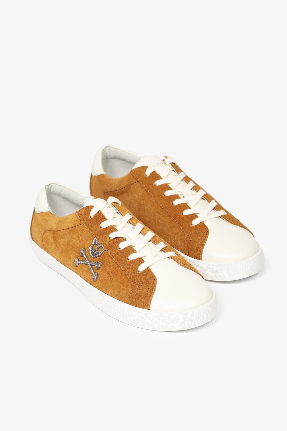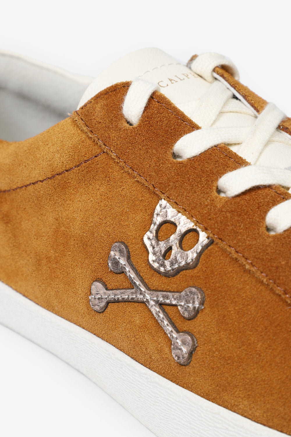 Low top 100% leather sneakers with suede finish. Lace-up fastening, rubber sole and side skull logo detail.