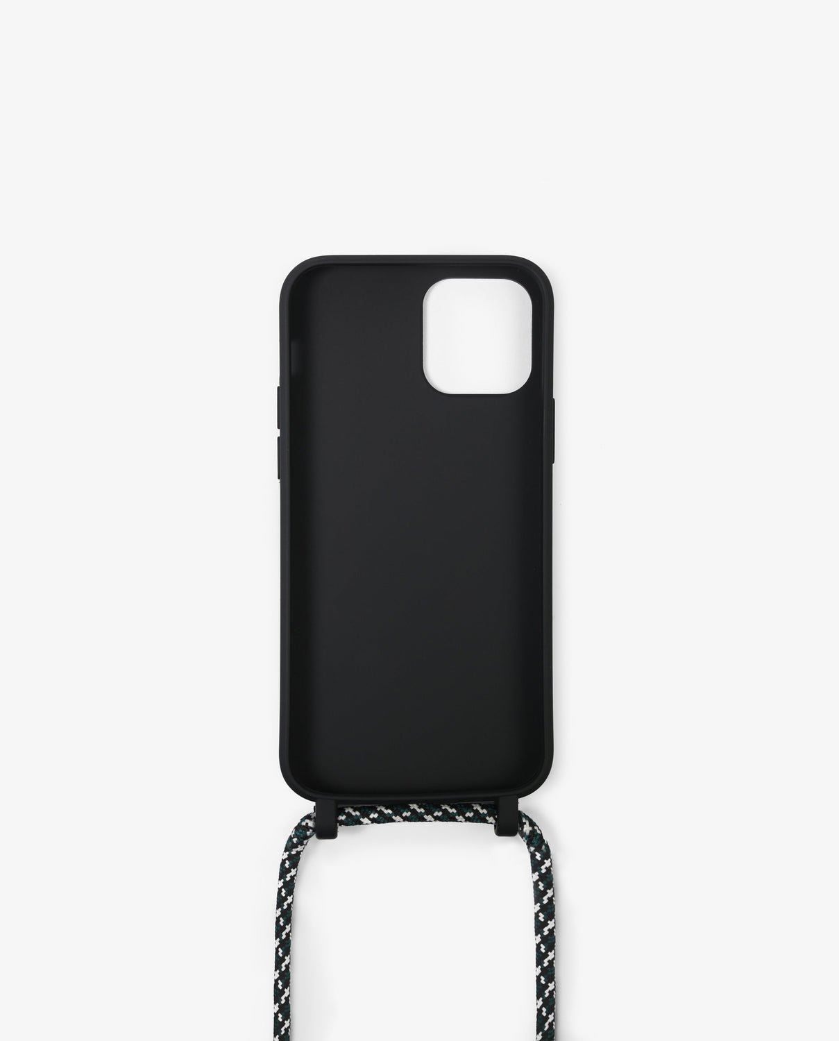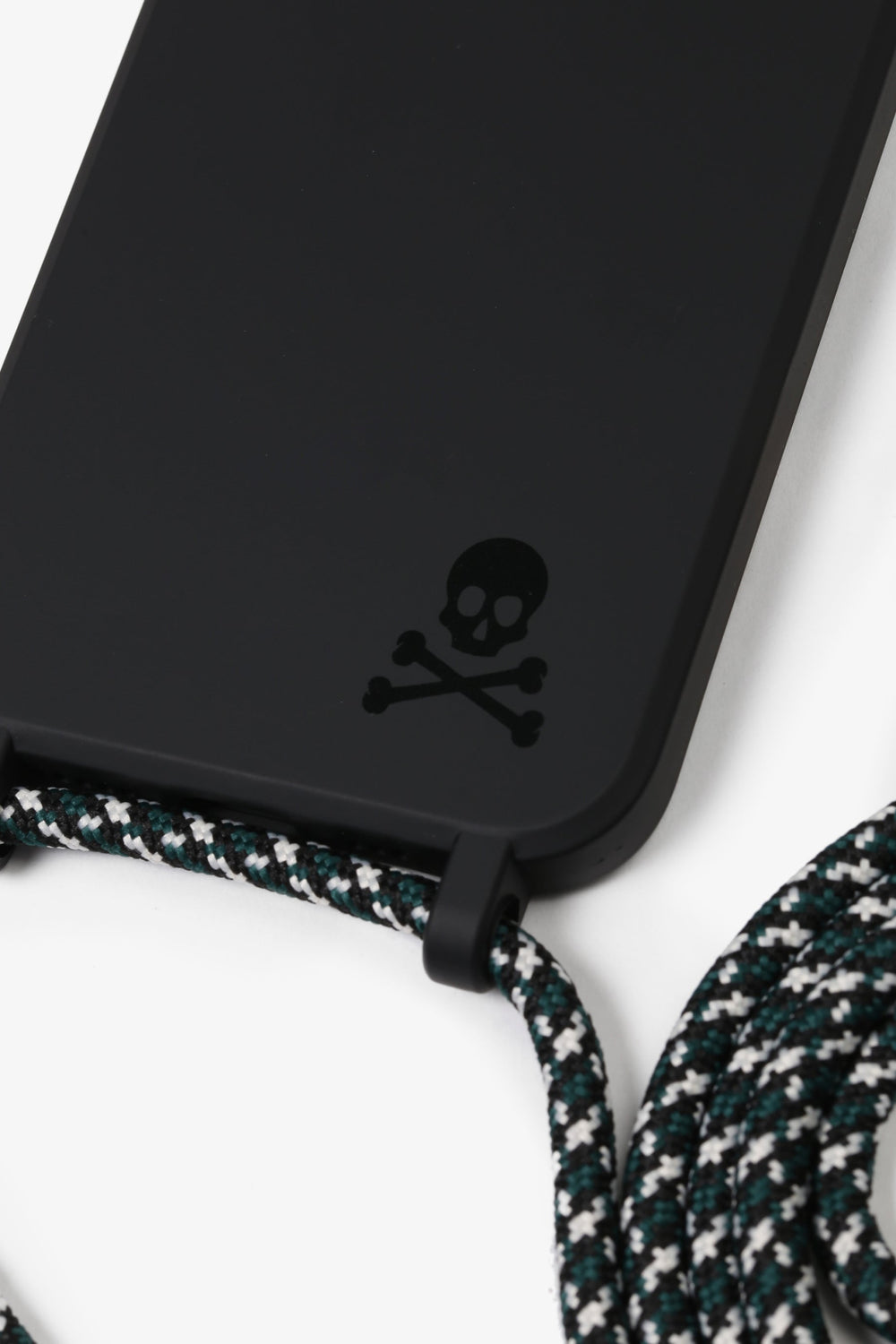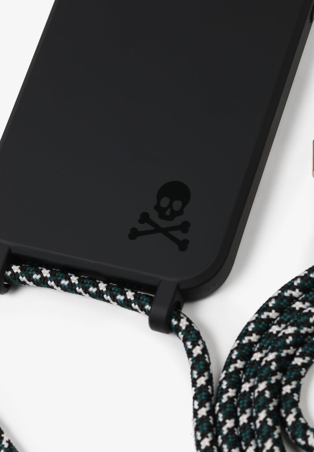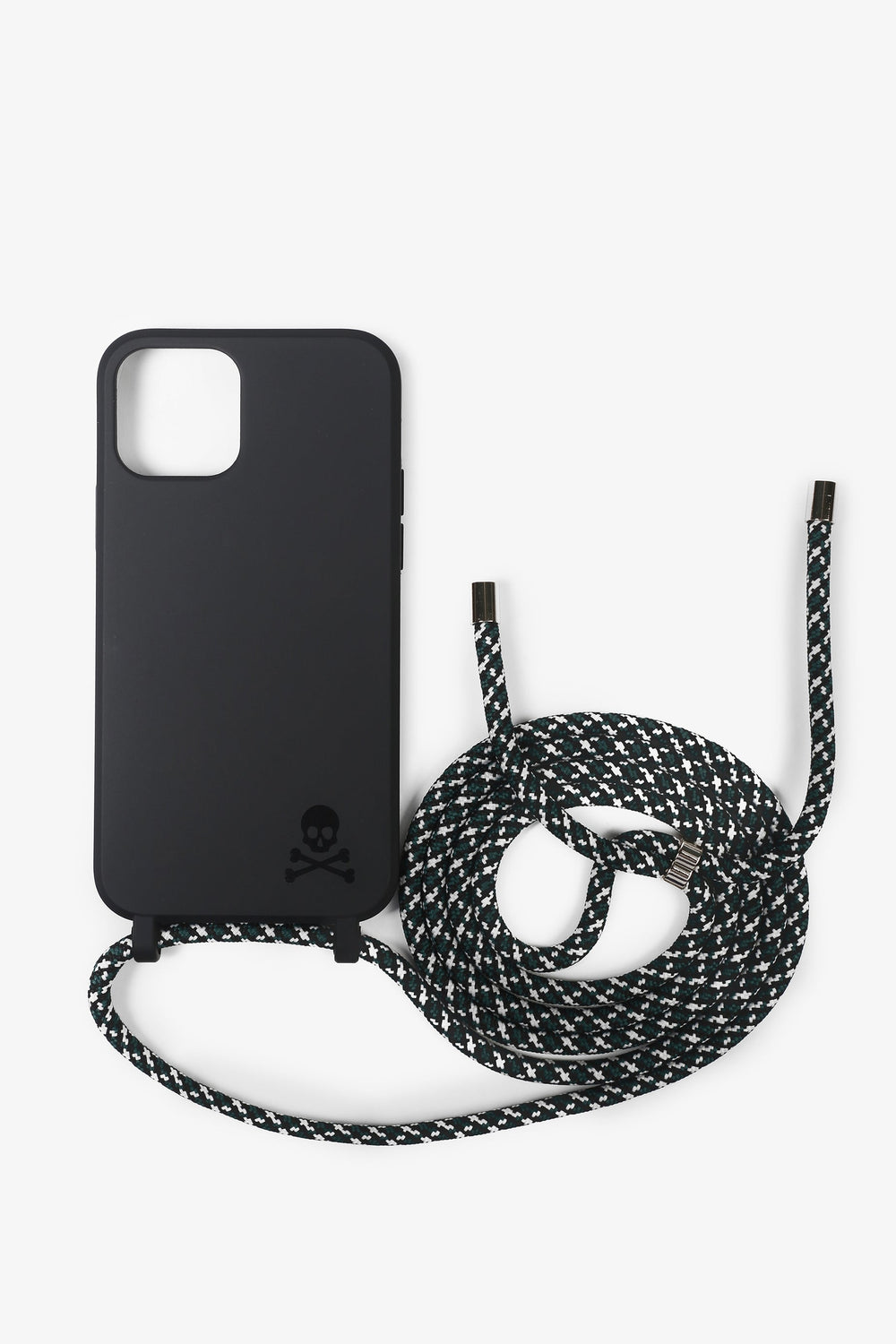 Silicone iPhone 11 Pro case with string for hanging. Skull detail.