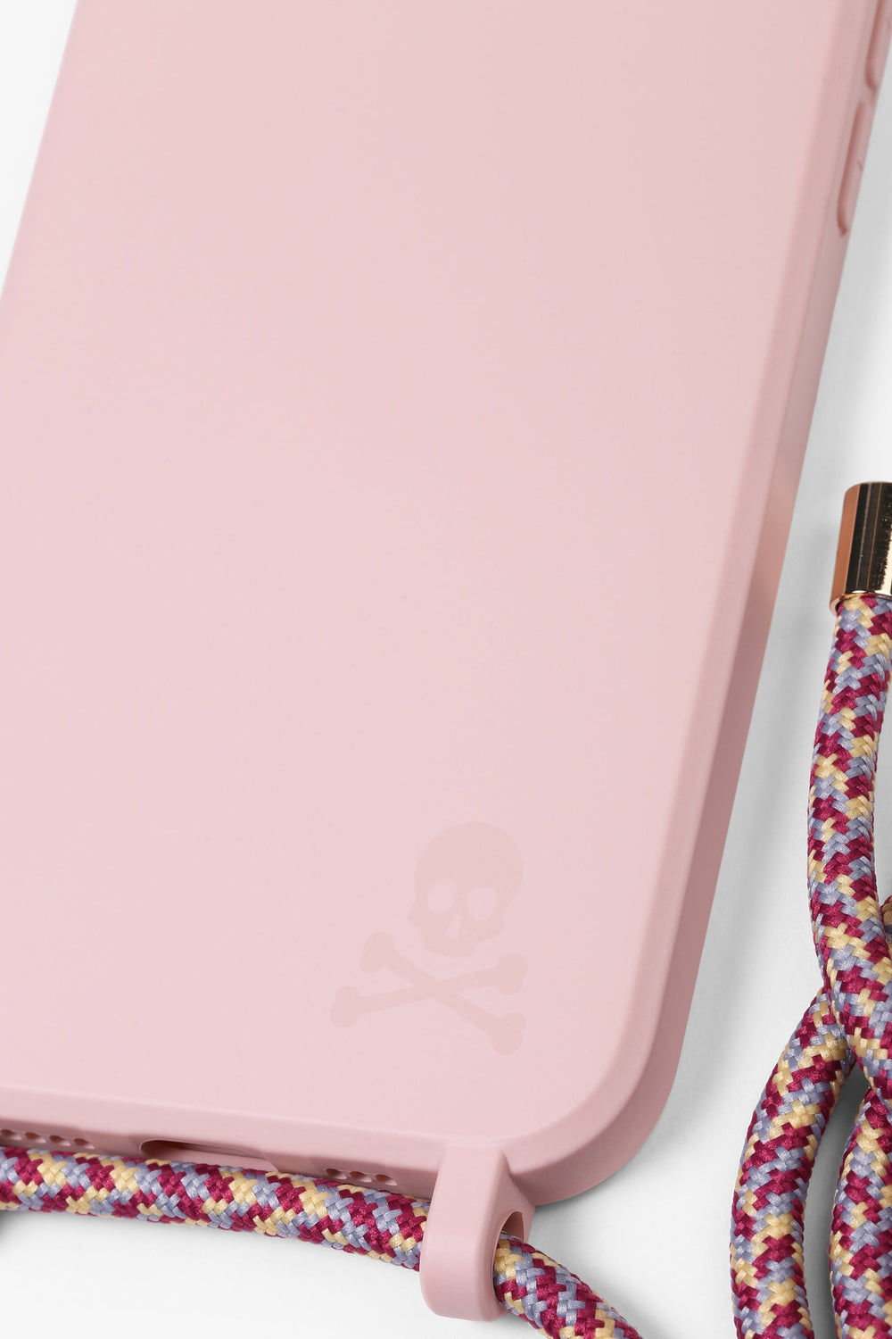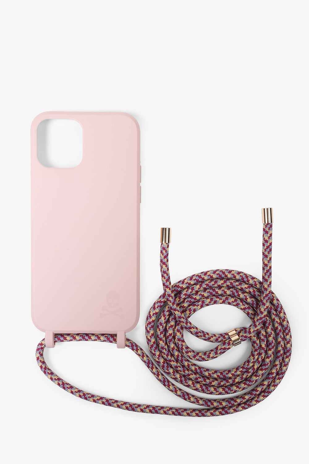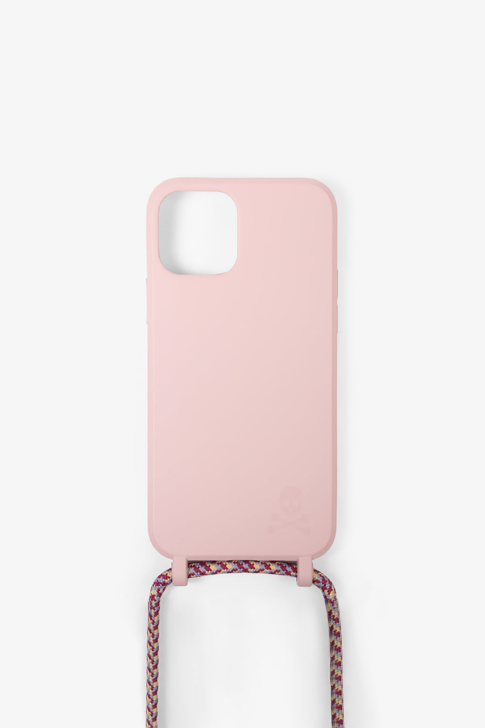 Silicone iPhone 11 Pro case with string for hanging. Skull detail.