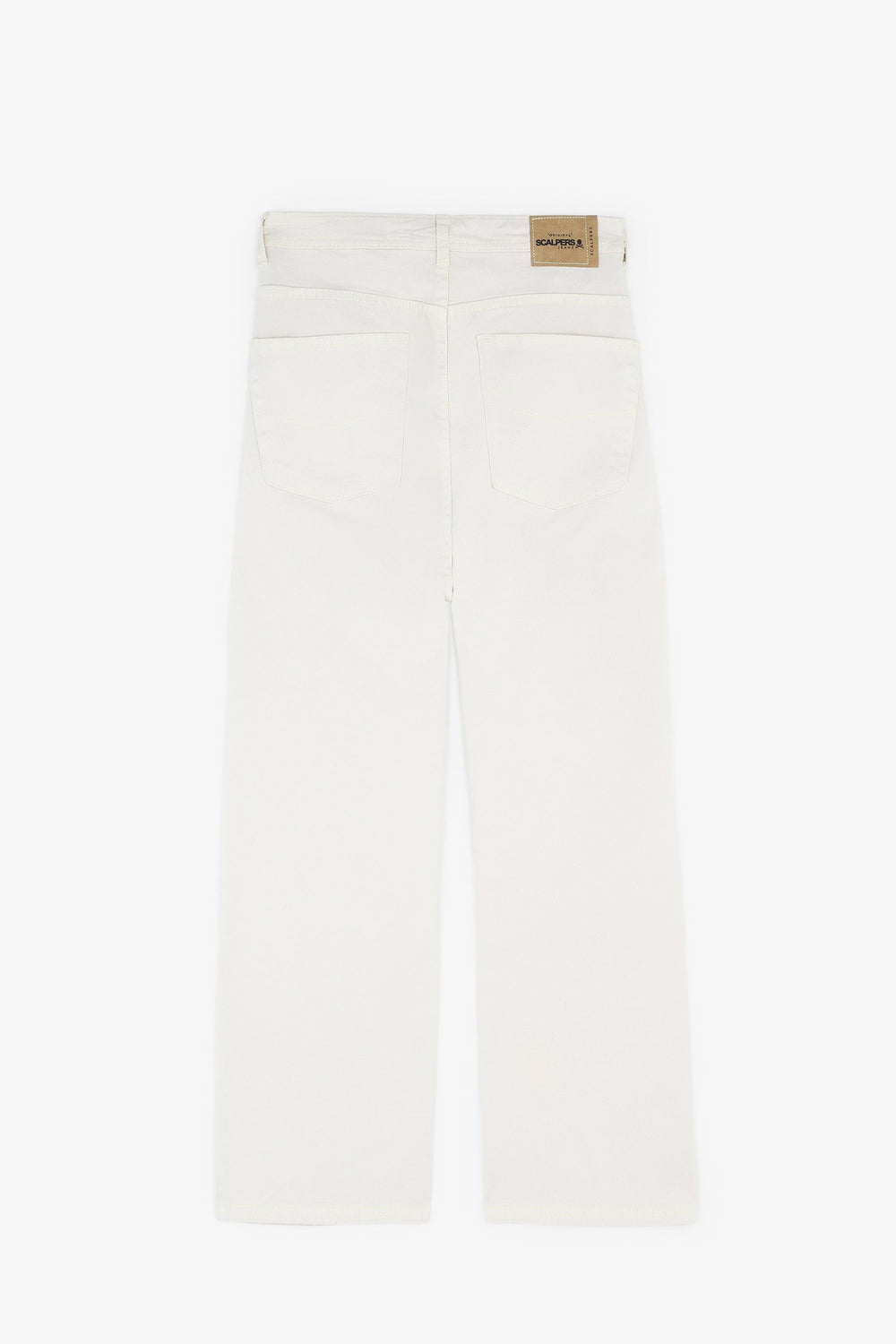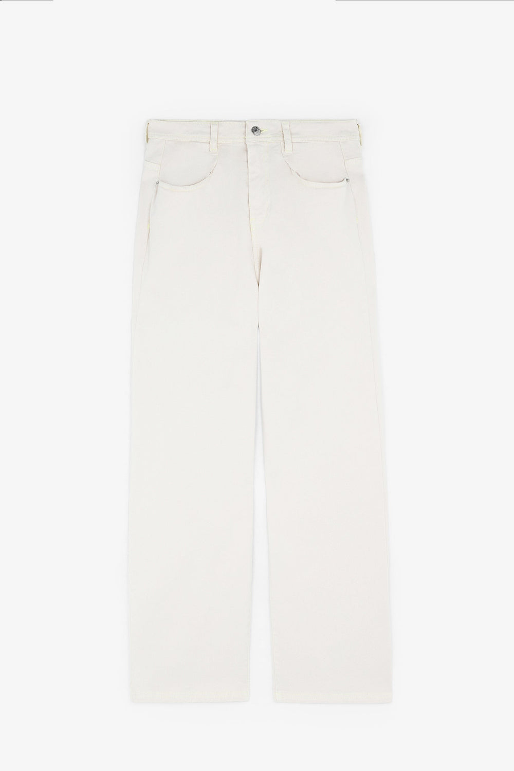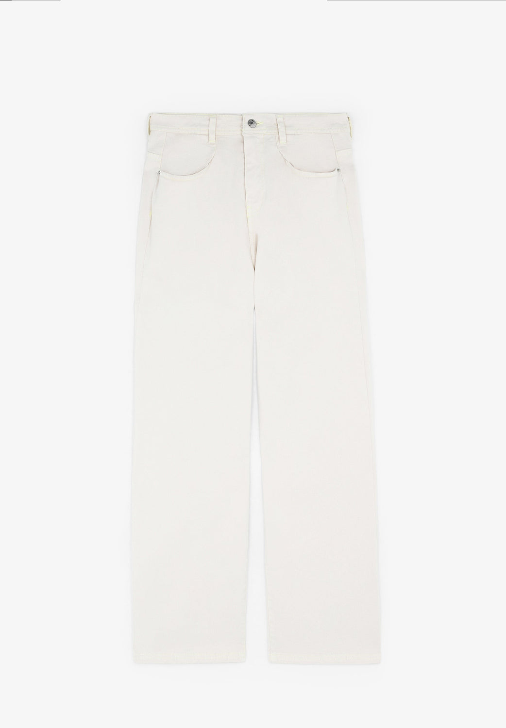 Denim trousers. Made of a cotton blend High waist Button and zip fastening Back pockets Belt loops