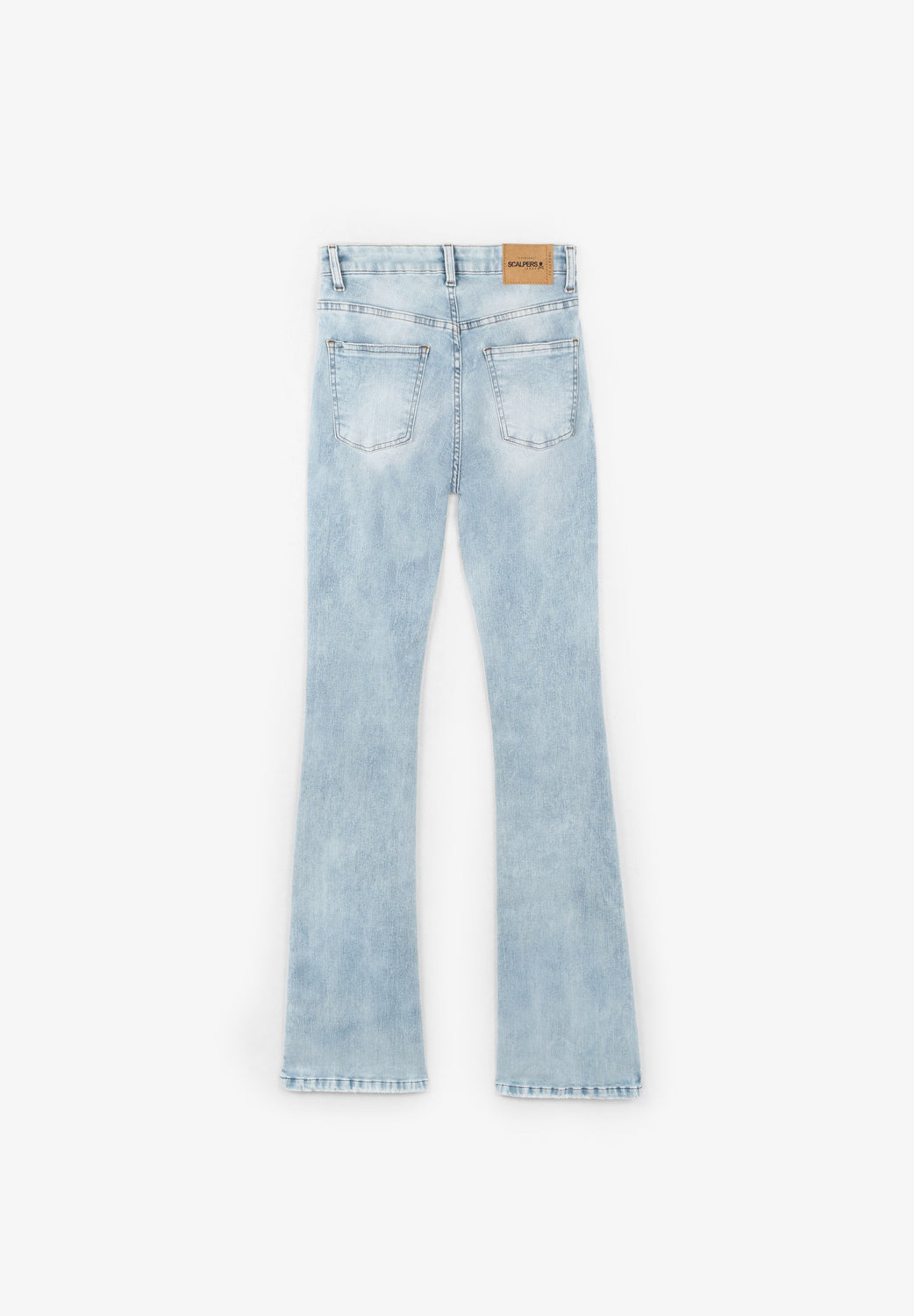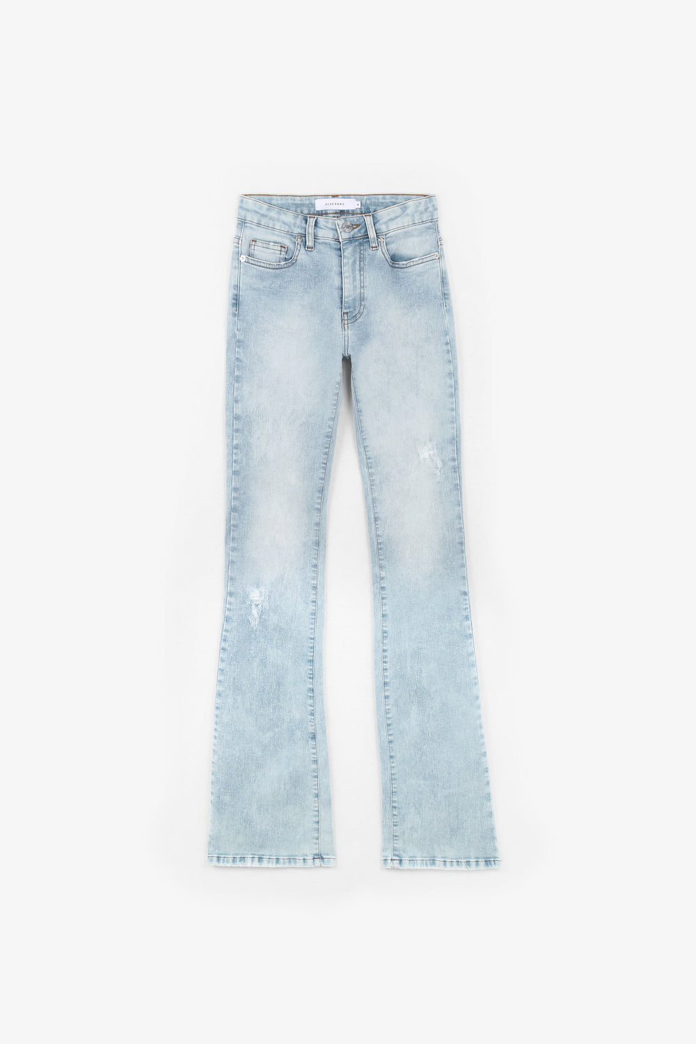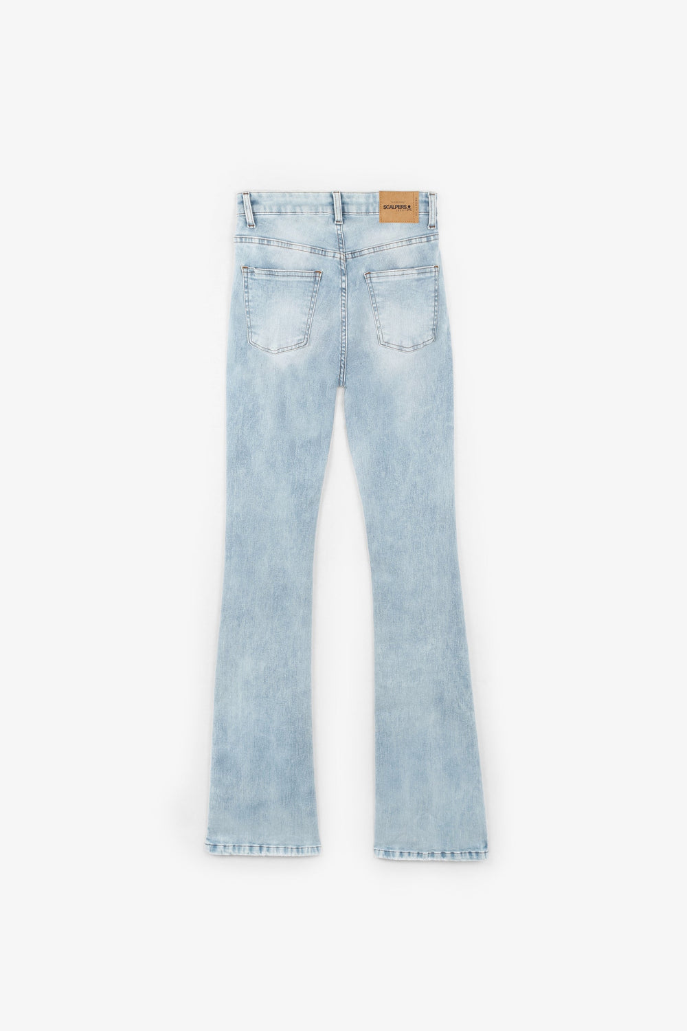 Denim jeans made from slight stretchy organic cotton. Regular fit bootcut, zip and button fastening. Belt loops and front and back pockets.