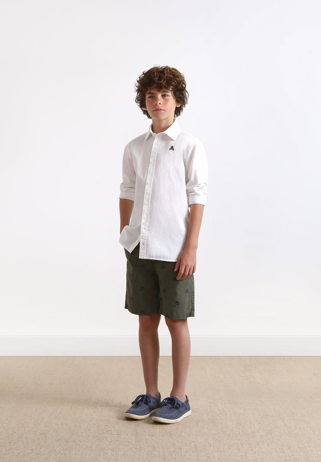 Camisa clásica con calavera bordada a contraste.