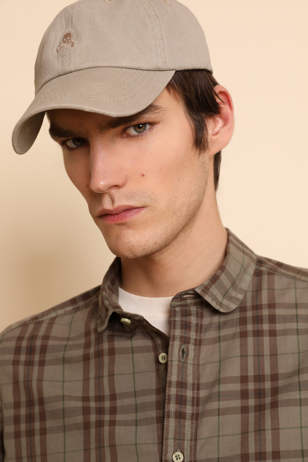 Tartan check shirt made of 100% cotton. Regular fit, rounded collar and button fastening. Long sleeves with buttoned cuffs and embroidered skull detail on the placket.